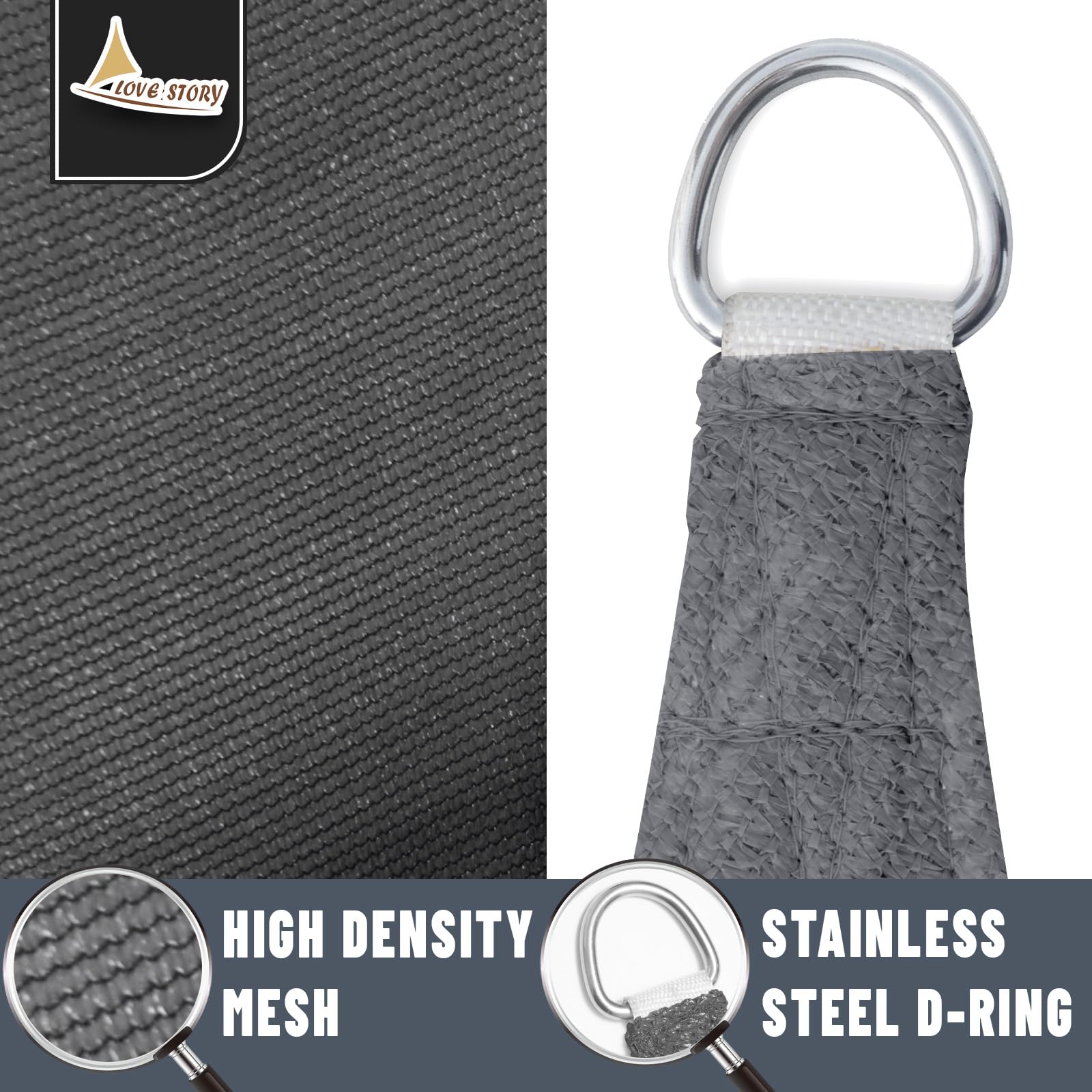 Love Story Sonnensegel, rechteckig, 50 x 60 cm, Dunkelgrau, UV-Schutz, Markise für Aussenbereich, Terrasse, Garten, Hinterhof