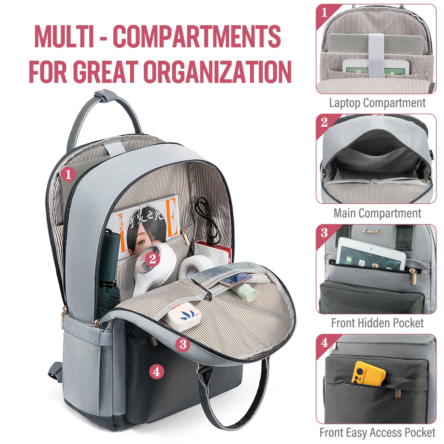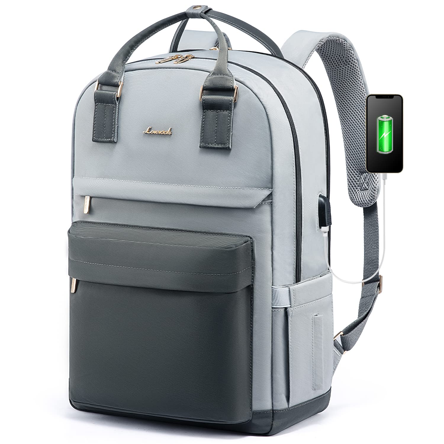 Lovevook Schultasche für Mädchen, wasserdicht, für Damen, klein, mit 17 Fächern für Laptop und USB-Ladeanschluss, Diebstahlschutz, für Schule, Universität, Reisen, Arbeit, Büro, Grau