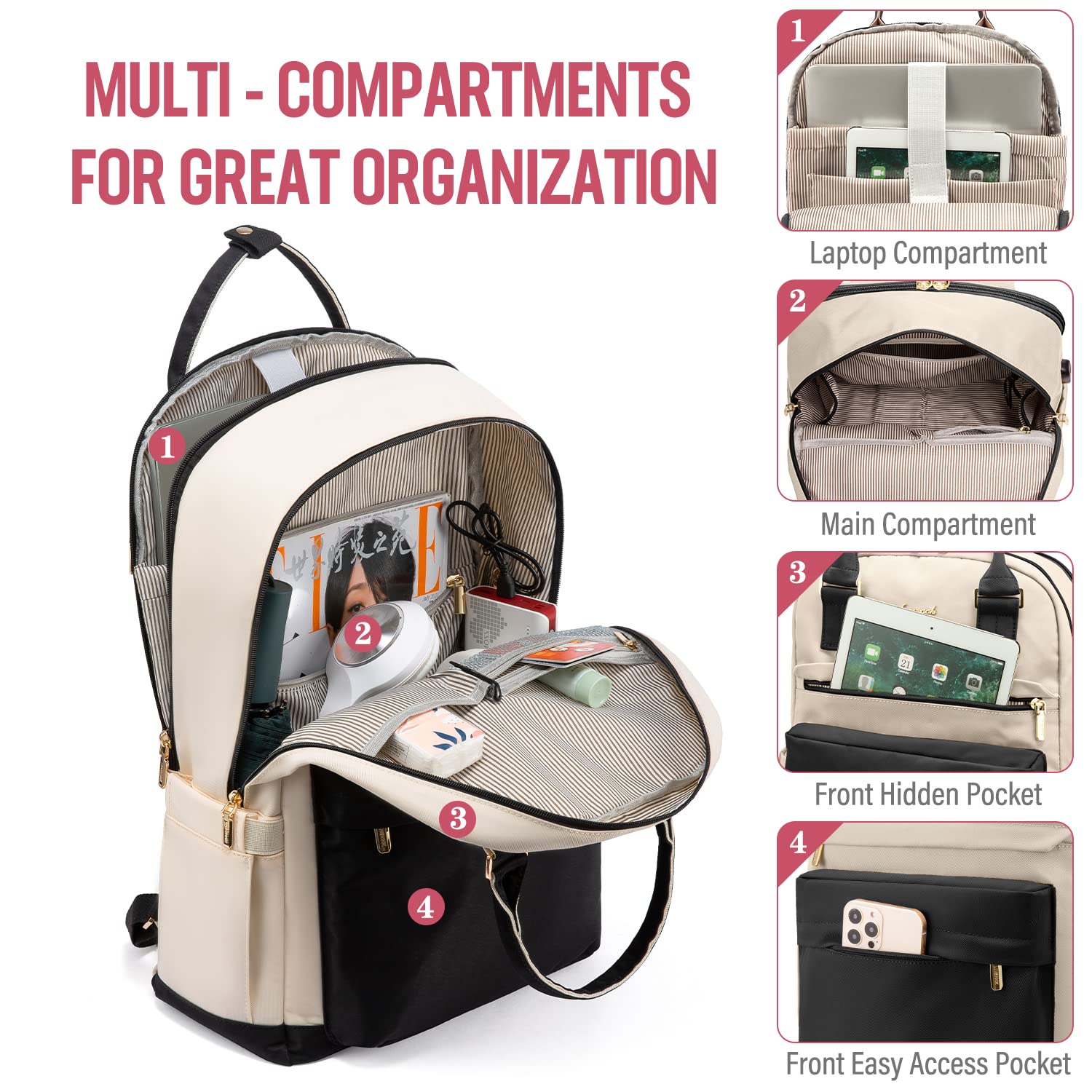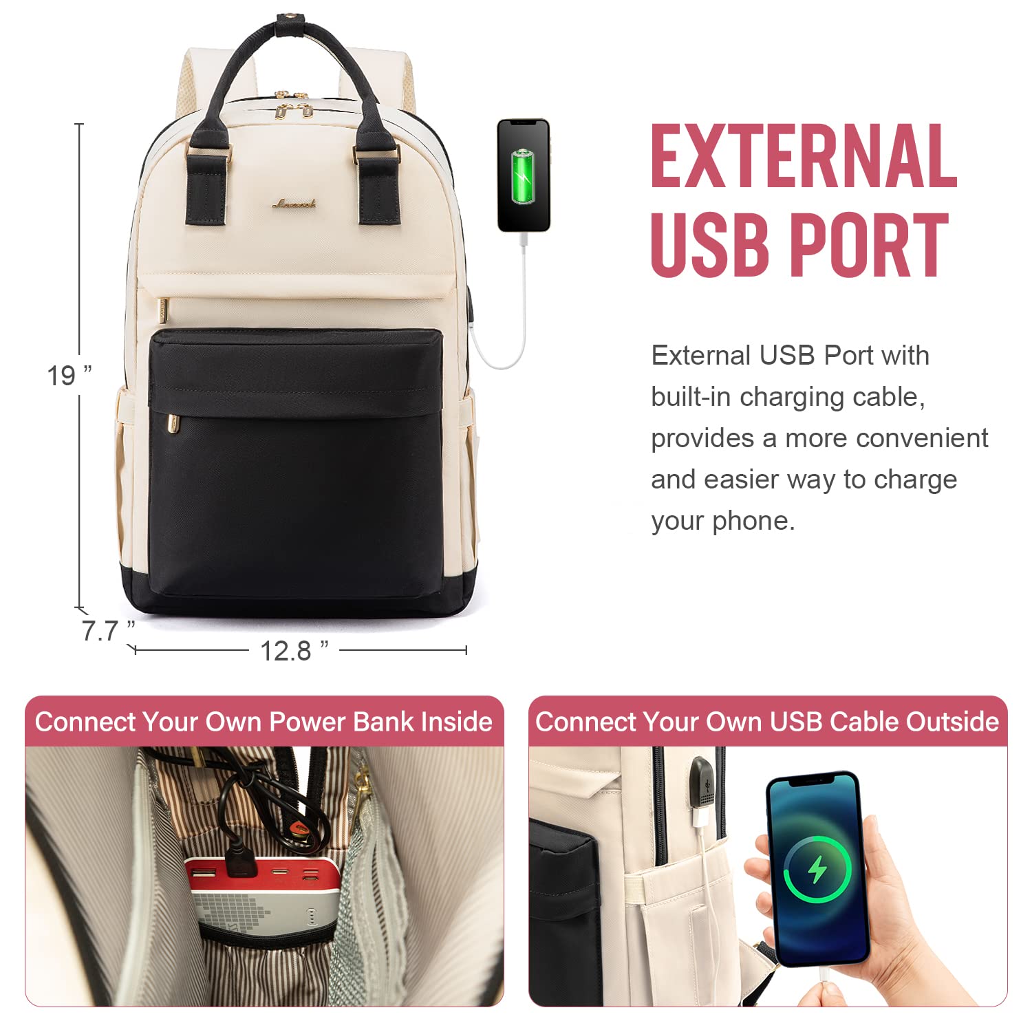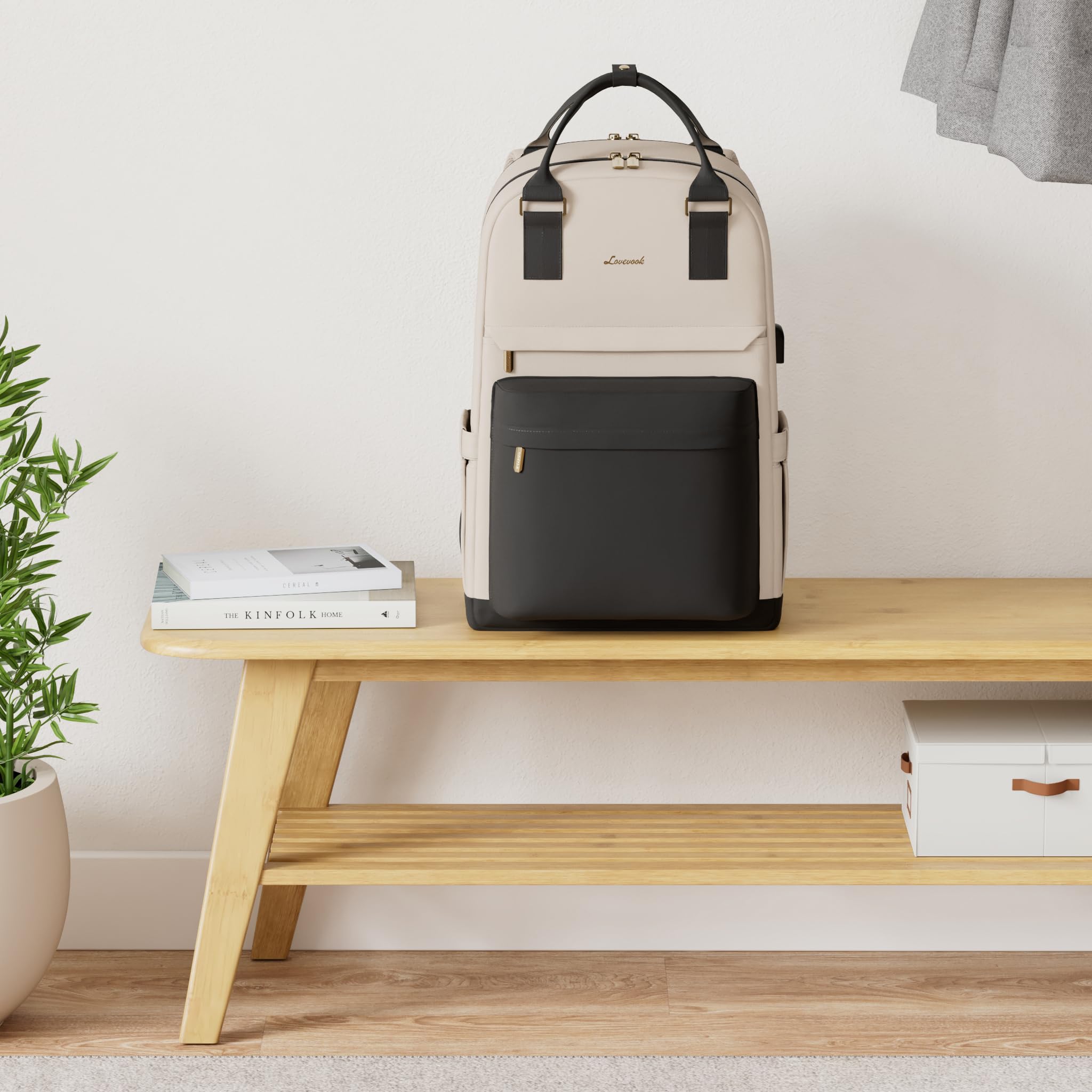 LOVEVOOK 17 Zoll Laptop Rucksack Schulrucksack Mädchen Teenager Rucksack Damen mit USB Ladeanschluss & Laptopfach, Wasserdichter Schultasche Daypack für Schule Uni Reisen Arbeit, Schwarz Beige