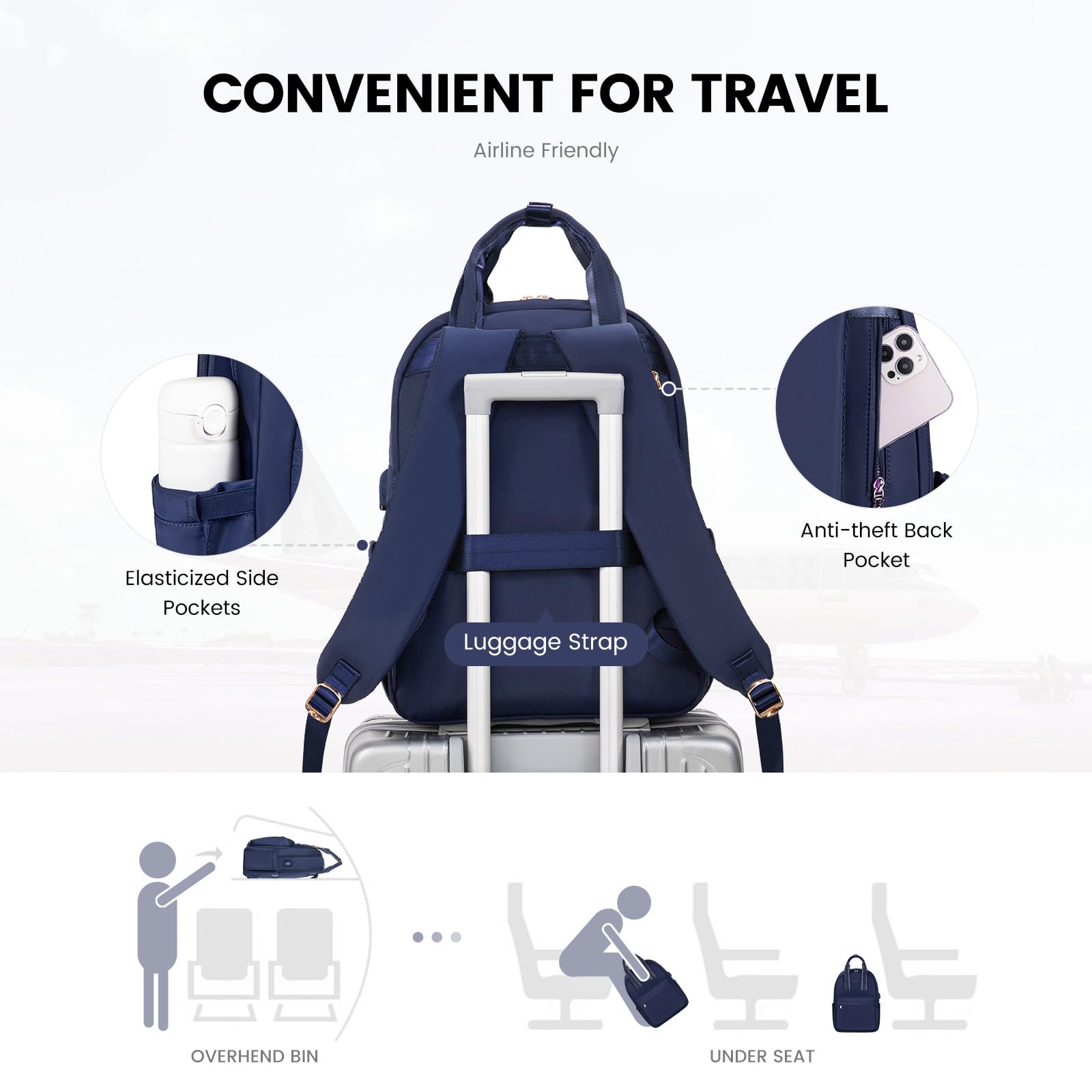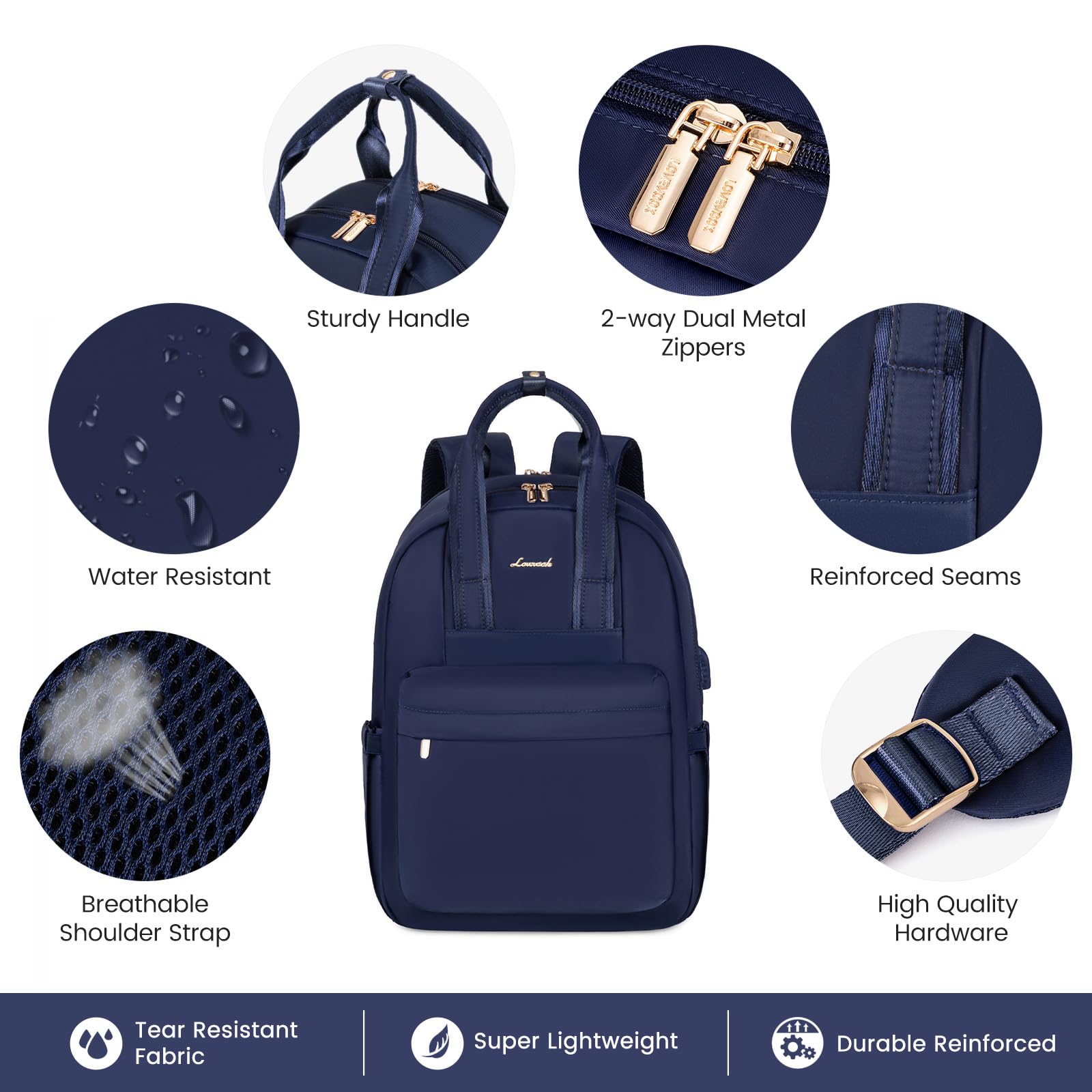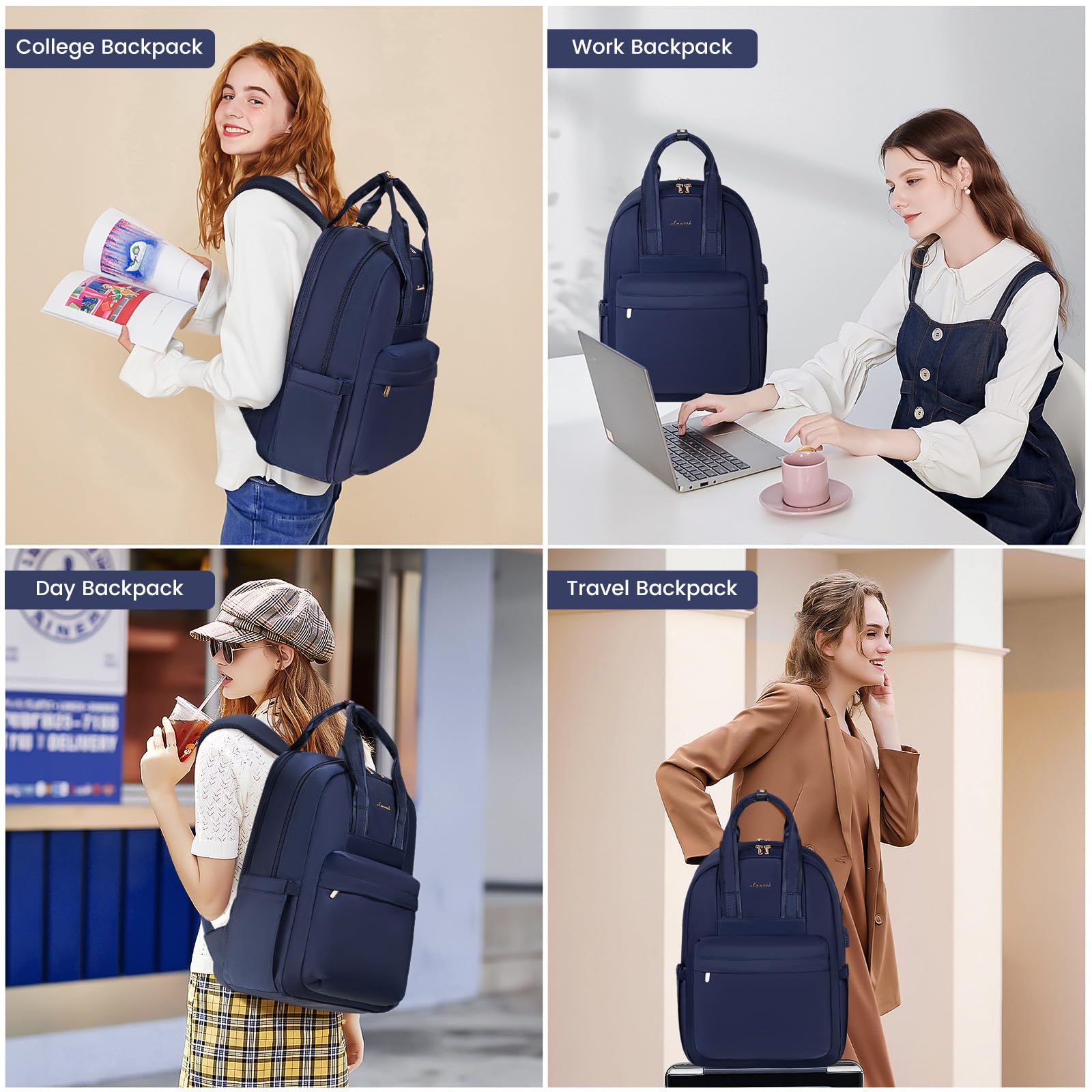 LOVEVOOK Laptop Rucksack Damen, 15,6 Zoll Schulrucksack Teenager mit USB Ladeanschluss, Wasserdicht Tagesrucksäcke Reiserucksack, Elegant Travel Backpack Daypack für Schule Büro Reise, Marineblau