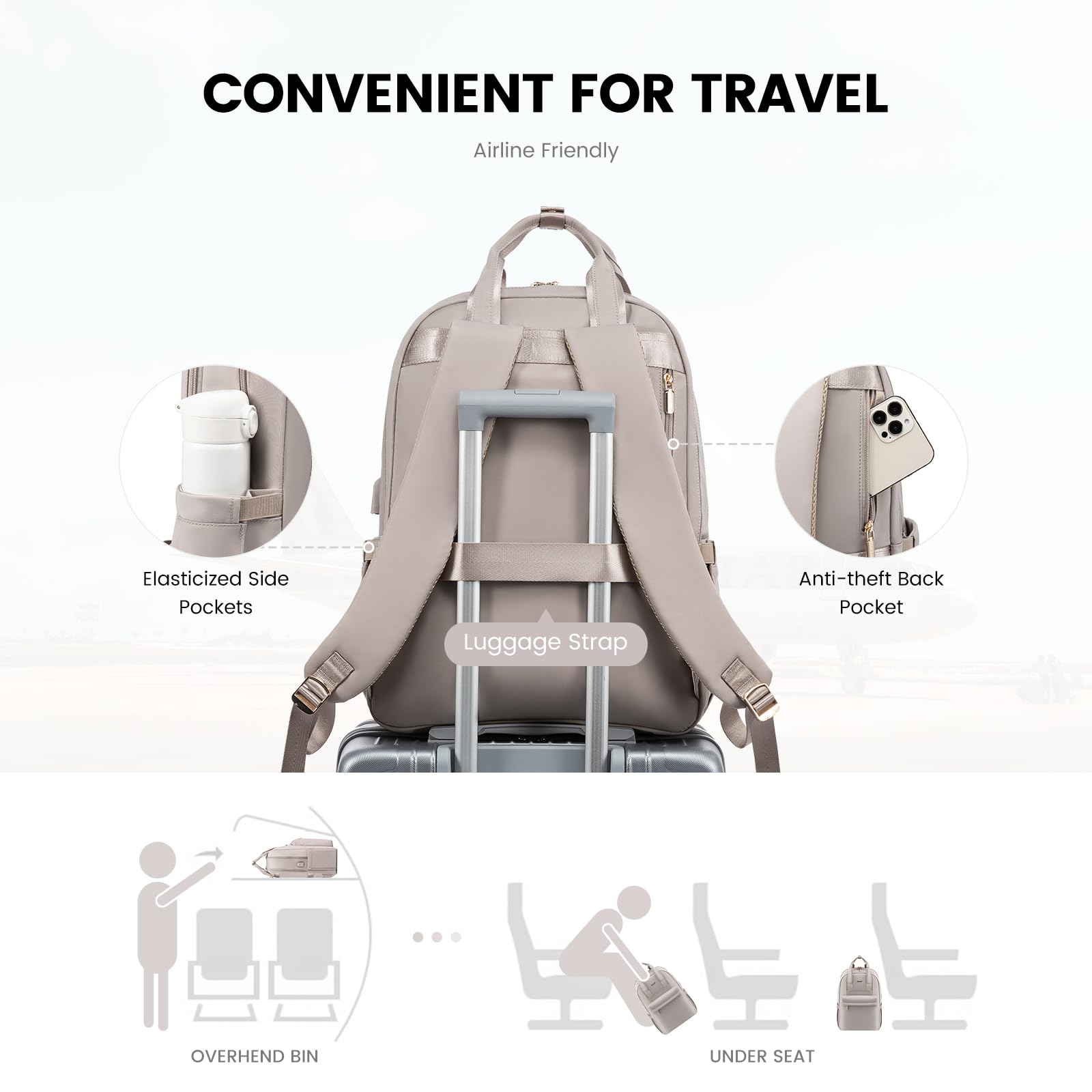 LOVEVOOK Rucksack Damen 17,3 Zoll, Gross Laptop Schulrucksack Teenager Mädchen mit Laptopfach, Wasserdicht Reiserucksack Arbeitstasche Handgepäck Rucksack für Schule Uni Reise Arbeit, Taro-grau