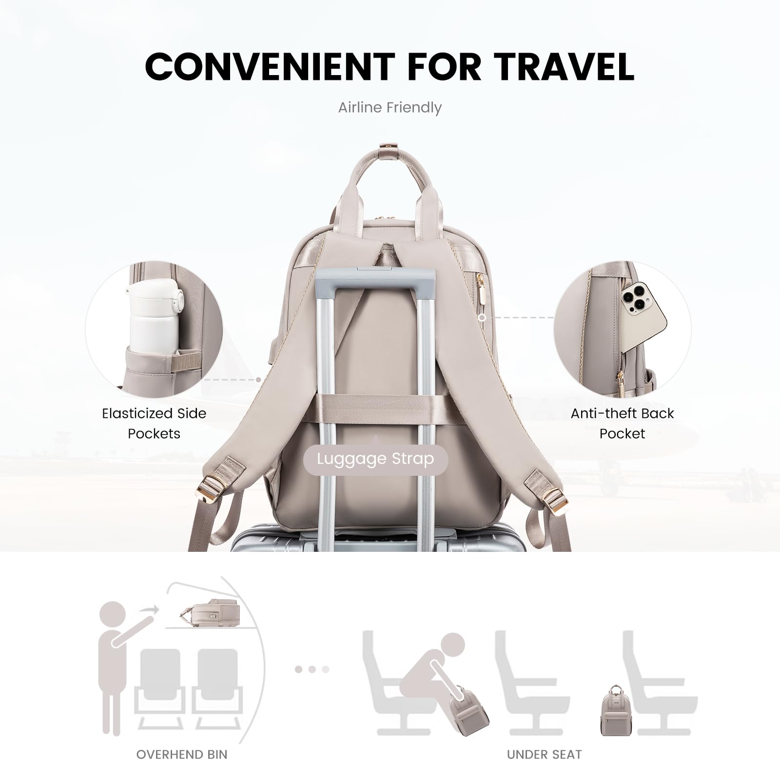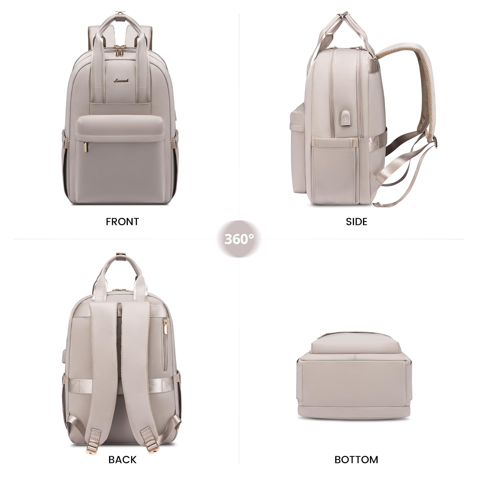 LOVEVOOK Rucksack Damen, 15,6 Zoll Laptop Rucksack Wasserdicht, Elegant Schulrucksack Teenager Mädchen mit Laptopfach, Reiserucksack Arbeitstasche Backpack Women für Schule Reise Arbeit, Taro-grau
