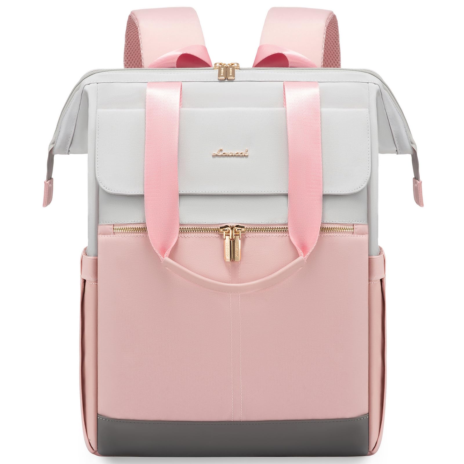 LOVEVOOK Laptop Schulrucksack Teenager, Damen Rucksack Modern, Schultasche Backpack Women Elegant Tagesrucksäcke Handtasche 2 in 1, 15,6 Zoll für Uni Büro Arbeit, Hellgrau & Rosa
