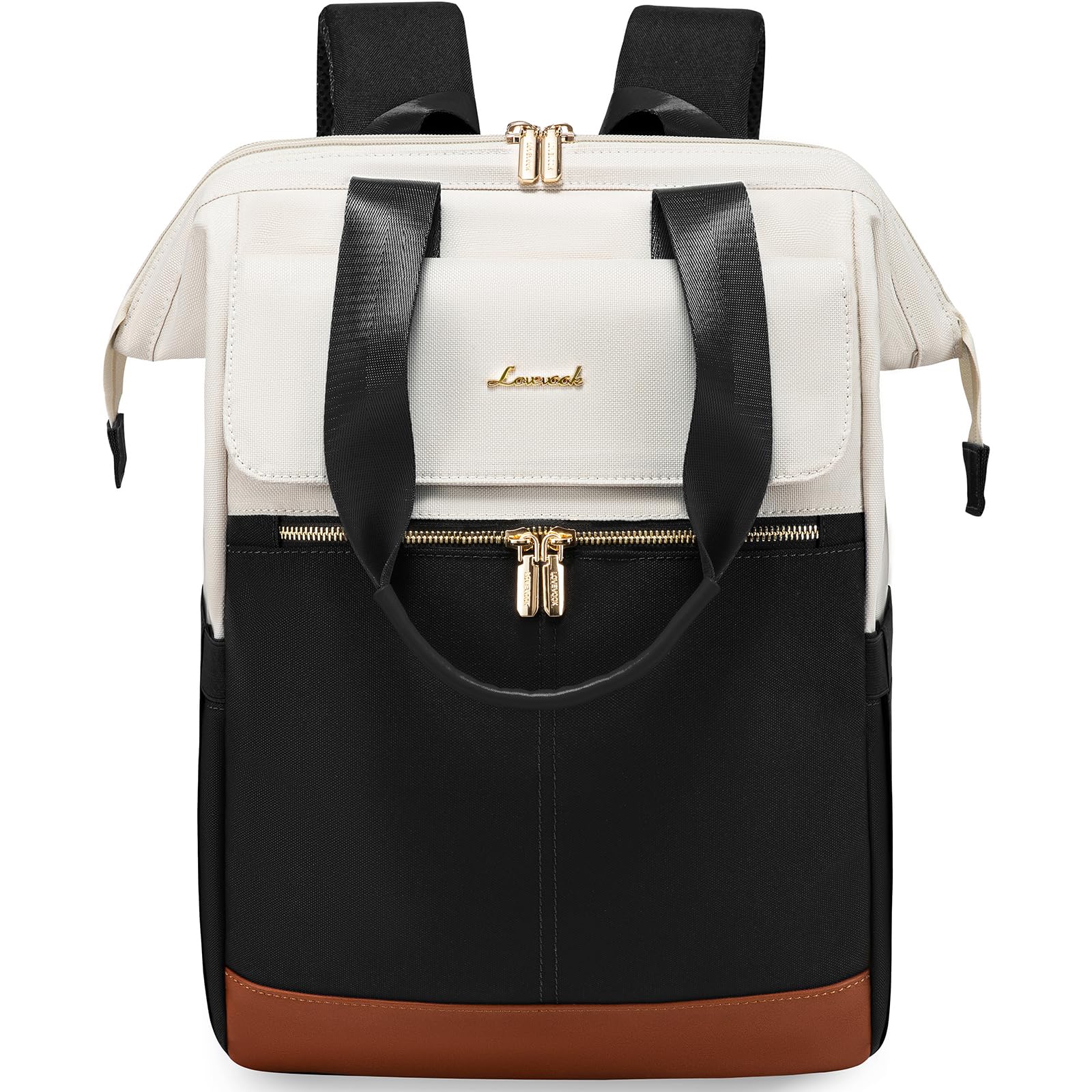 LOVEVOOK Rucksack Damen gross, 18 Zoll Laptop Schulrucksack Teenager, Arbeitstasche SChultasche mit USB, Backpack Women elegant, Tagesrucksack Handtasche 2 in 1 für Büro Uni Reise, Beige & Schwarz