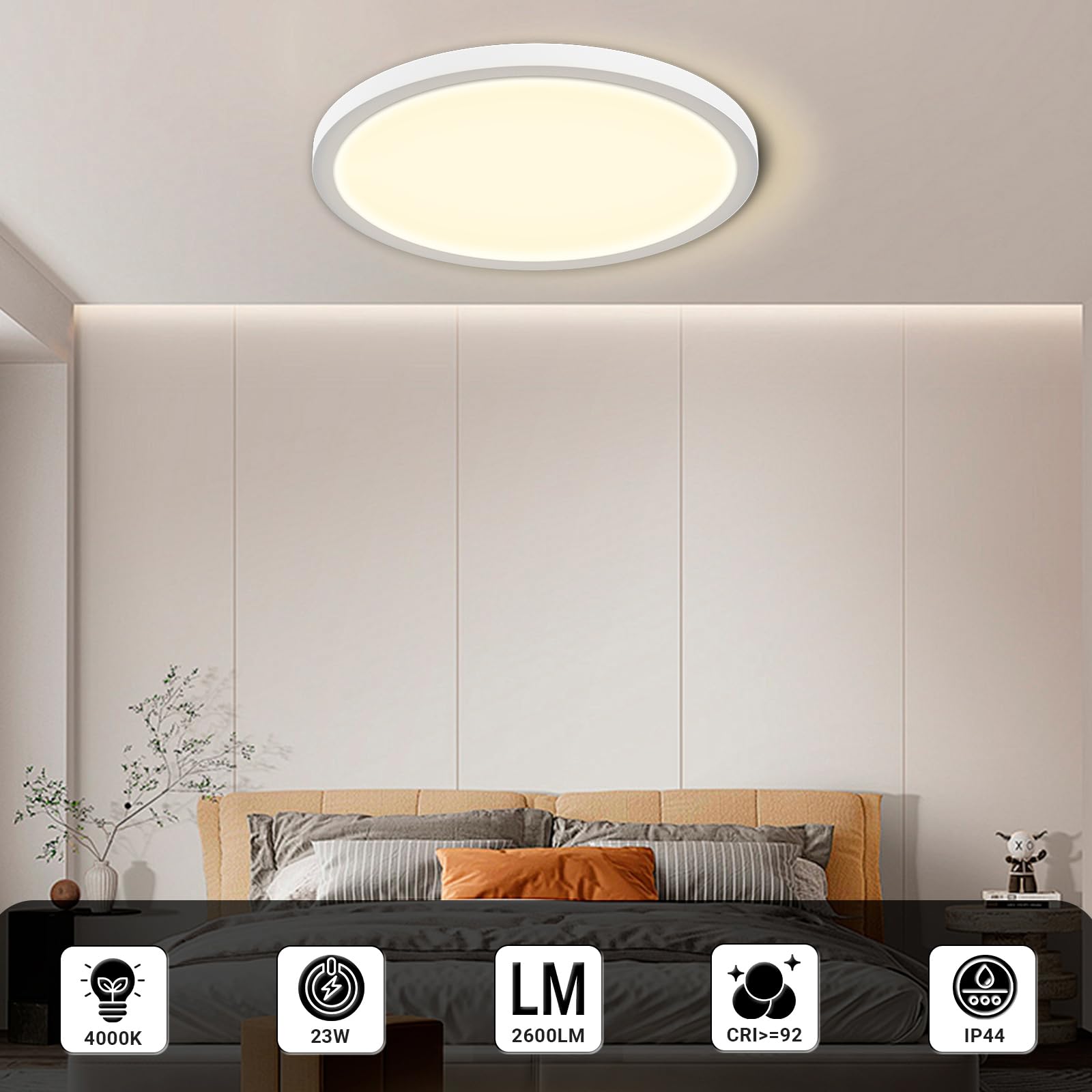 LQWELL® Deckenleuchte LED Deckenlampe, IP44 Wasserfest Badlampe Rund Flach 22W 4000K 2420LM Modern Schlicht Lampe Dünn für Wohnzimmer Badezimmer Schlafzimmer Küche Balkon Keller Büro, 300 * 25mm