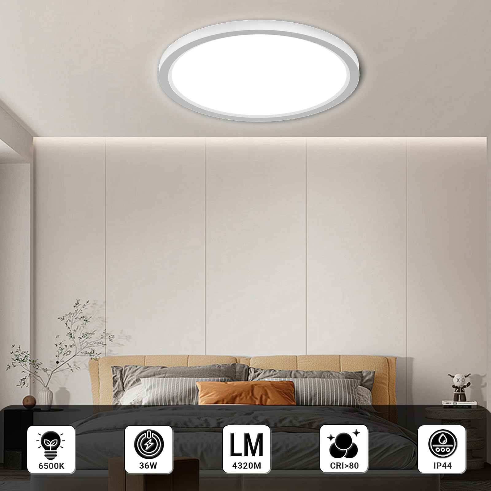 LQWELL® Deckenleuchte LED Deckenlampe, IP44 Wasserfest Badlampe Rund Flach 36W 6000K 4320LM Modern Schlicht Lampe Dünn für Wohnzimmer Badezimmer Schlafzimmer Küche Balkon Keller Büro, 400 * 24mm