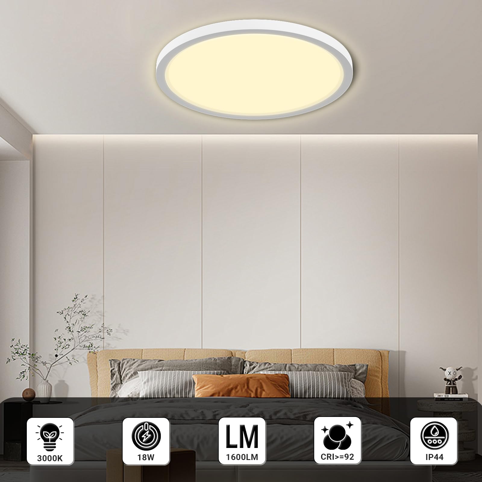 LQWELL® Deckenleuchte LED Deckenlampe, IP44 Wasserfest Badlampe Rund Flach 18W 3000K 1980LM Modern Schlicht Lampe Dünn für Wohnzimmer Badezimmer Schlafzimmer Küche Balkon Keller Büro, 220 * 24mm
