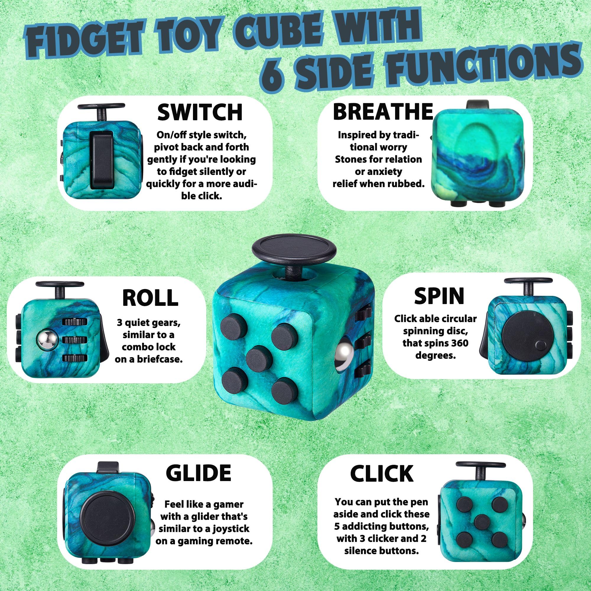 Lubibi 2Pcs Fidget Toy ,Grün Anti-Stress Würfel Spielzeug, Grün Fidget Pad Controller, Anti-Estrees Würfel mit 6Seiten Funktion, Kleine Geschenke für Kinder und Erwachsene Stressaubbau bei Nervösität