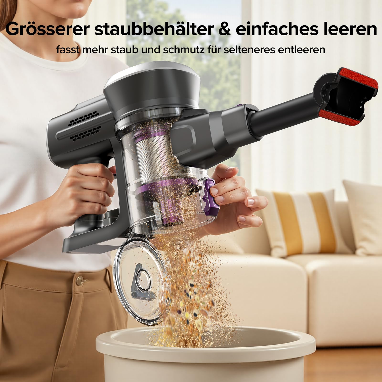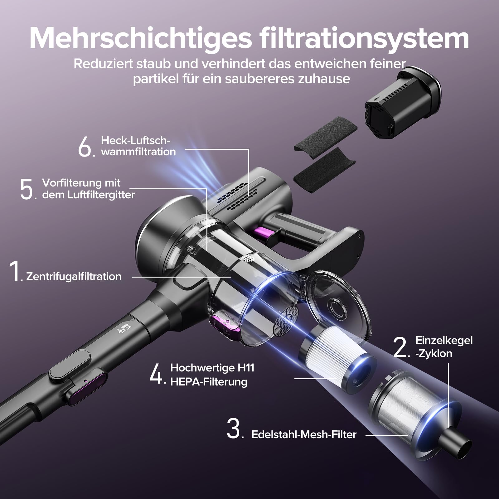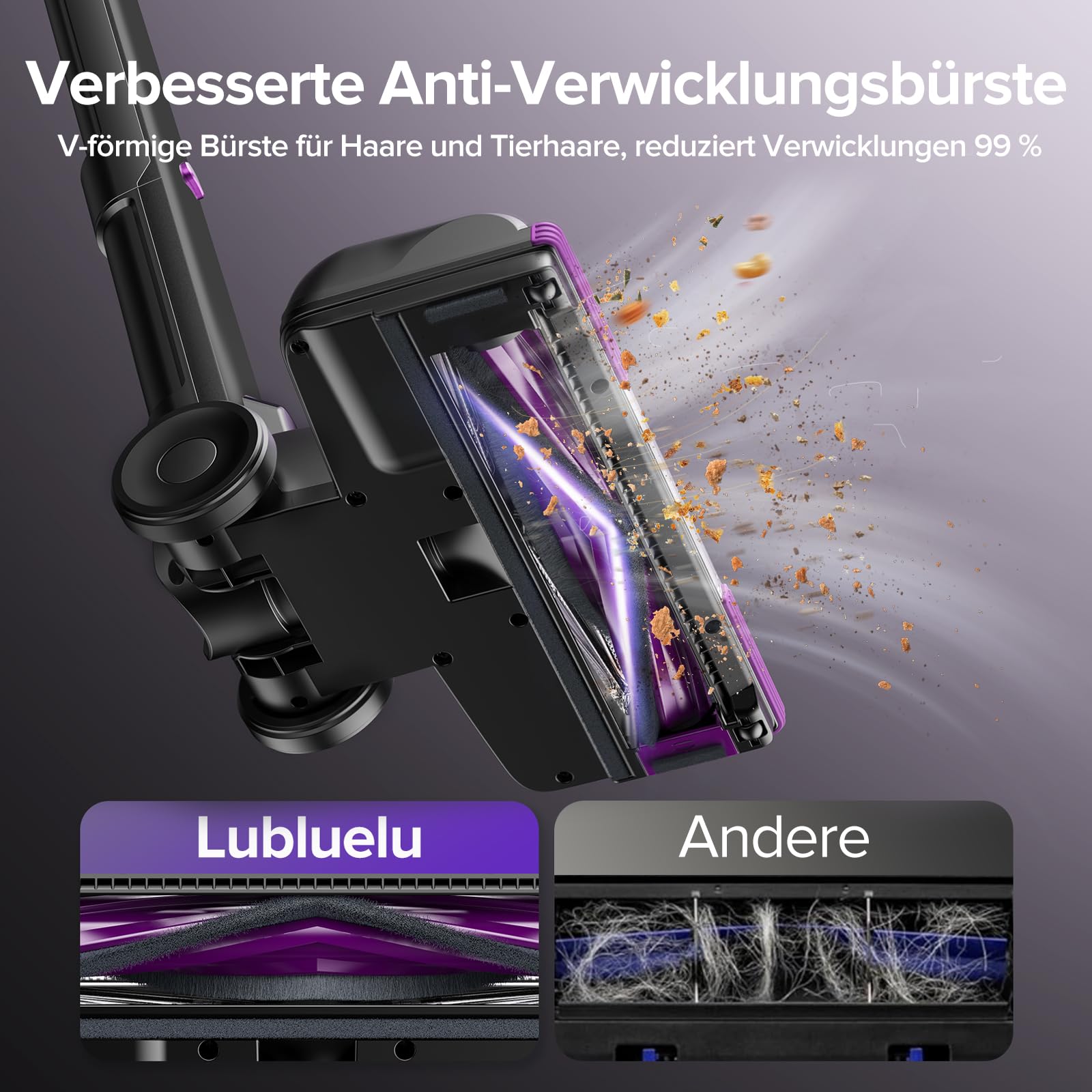 Lubluelu Kabelloser Akku Staubsauger 400W/45000Pa, bis zu 50 Min Laufzeit, Anti-Tangle-Bodenbürste, 2 Filter, für Tierhaare, Teppiche & Hartböden