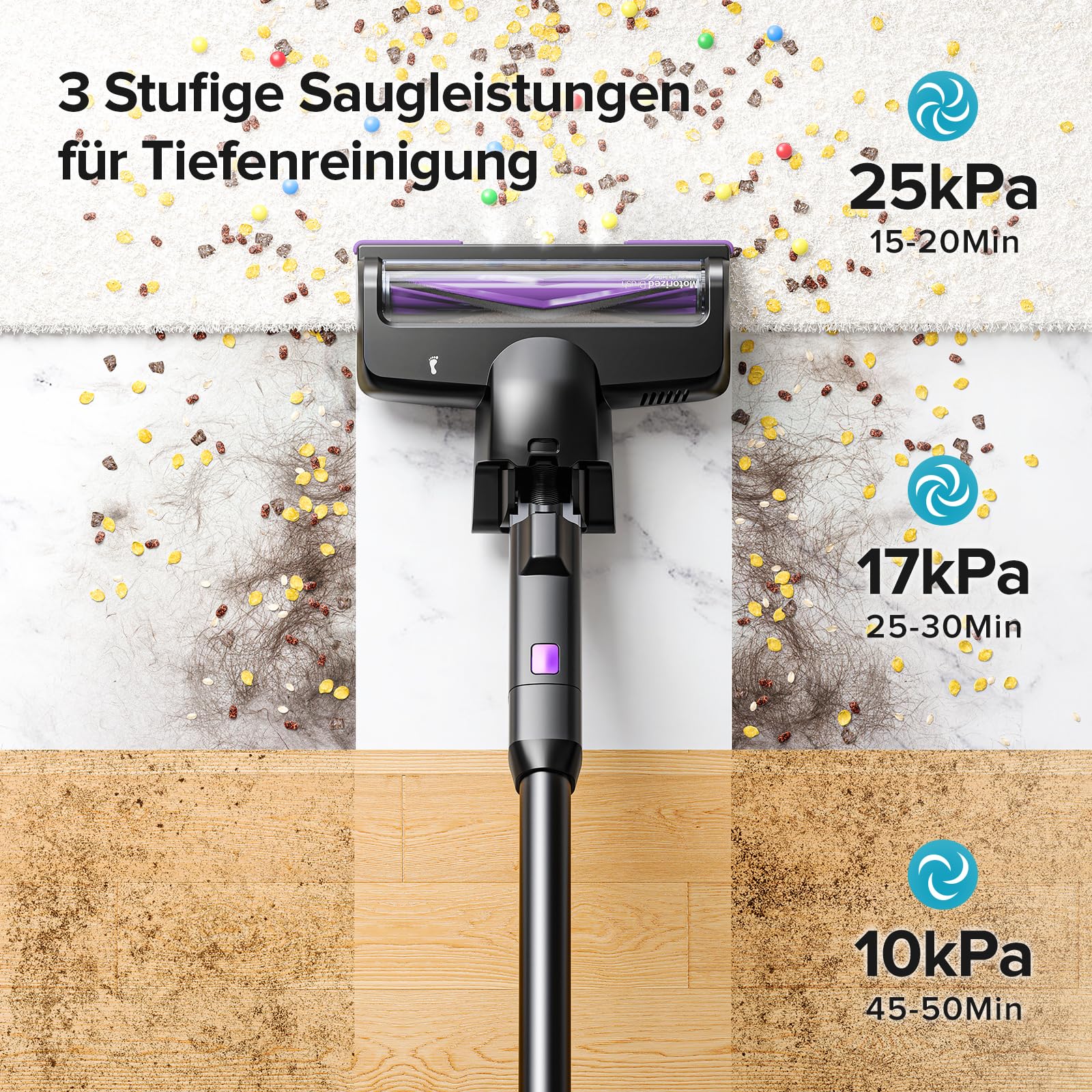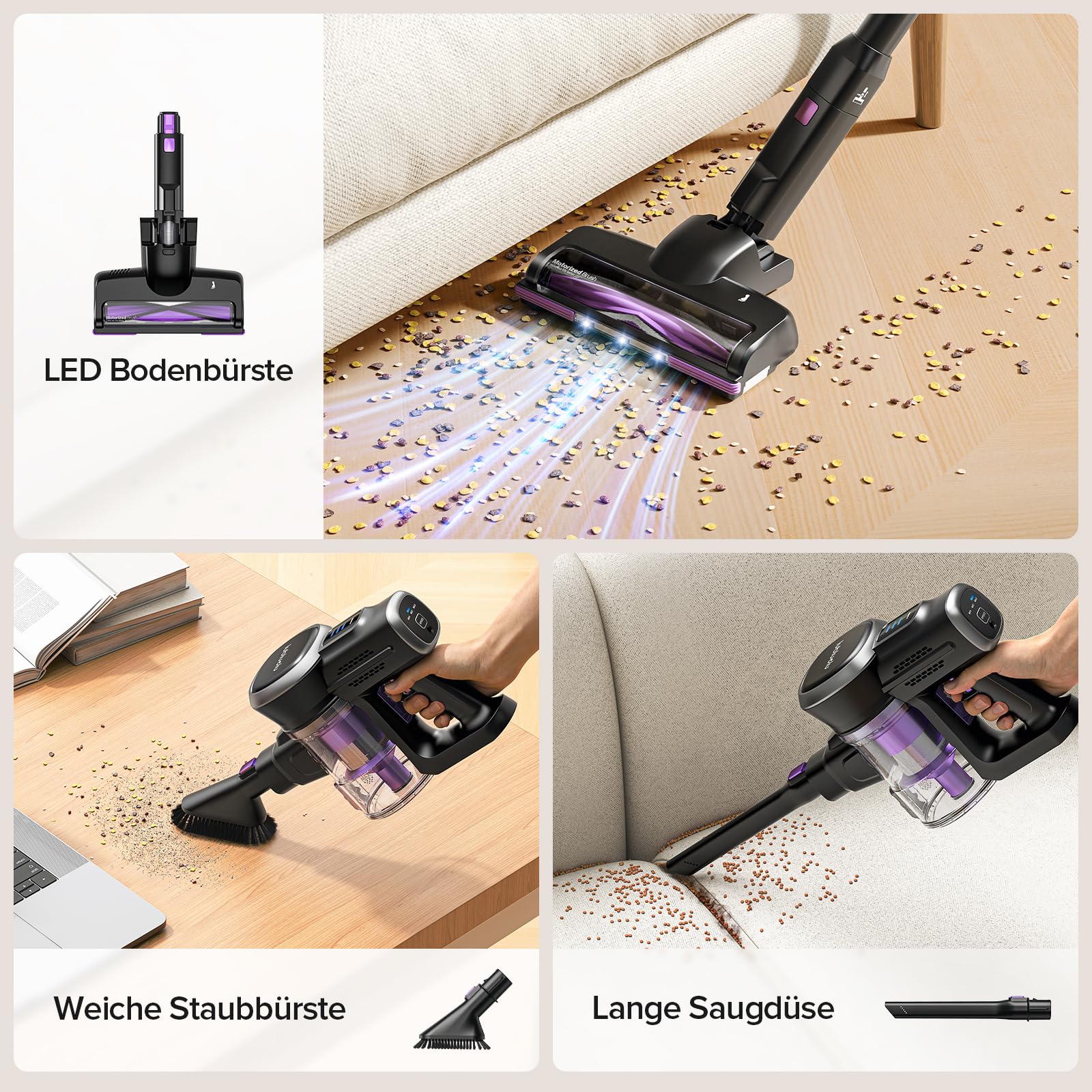 Lubluelu Akku-Staubsauger Kabelloser Staubsauger mit starker Saugleistung, Bis zu 50 Min Laufzeit, Freistehender Akkusauger für Tierhaare, Teppiche & Harte Böden