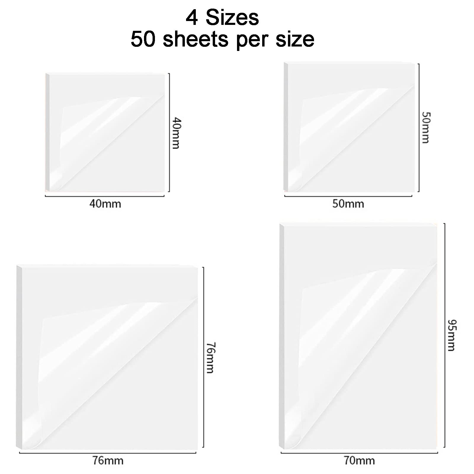 luoshaPUCY 200 Blätter Transparente Haftnotizen, Transparent Sticky Notes Set Wasserfest und Wiederbeschreibbar durchsichtige Notizzettel für Schule Büro Zuhause (40*40mm+50*50mm+76*76mm+70*95mm)