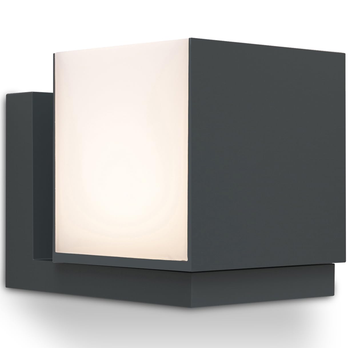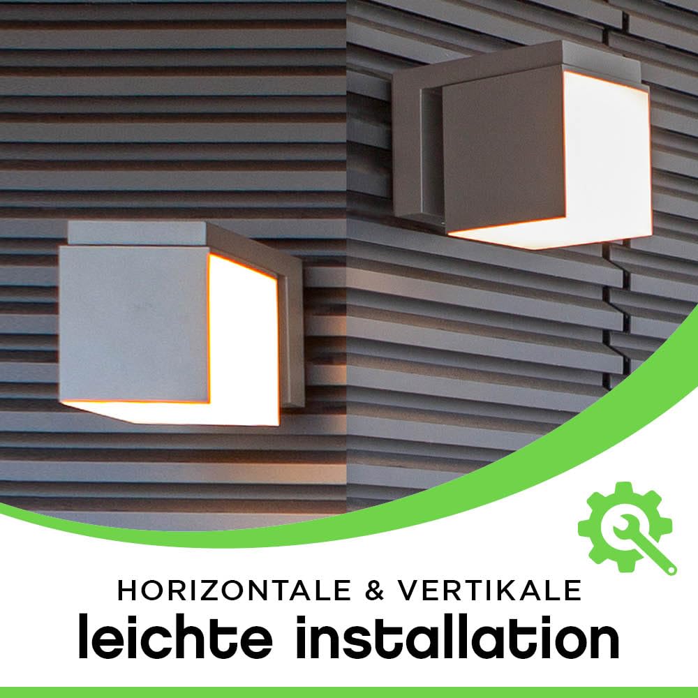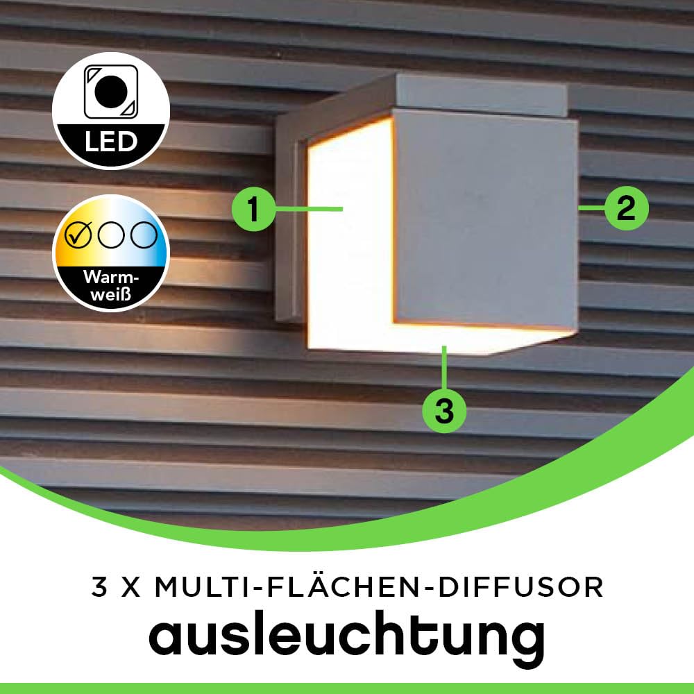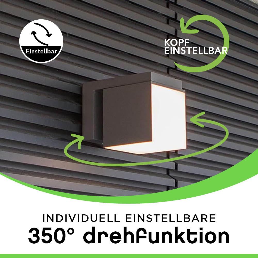 LUTEC LED Aussenwandleuchte CUBA, moderne Aussenlampe aus Aluminium in Anthrazit und weissem Polycarbonat, Wandleuchte 350° drehbar, mit Lichteffekten an der Wand, moderne Aussenlampe