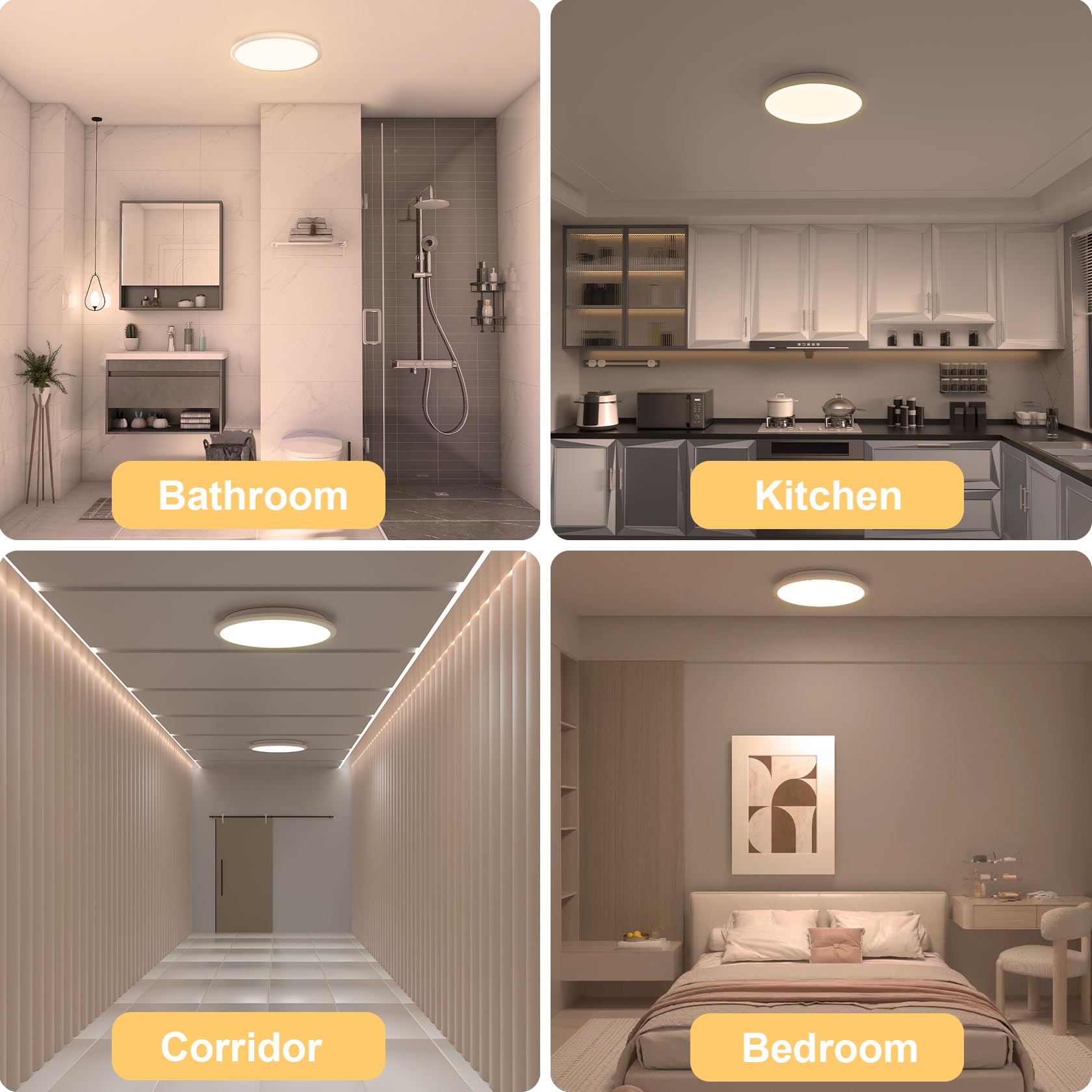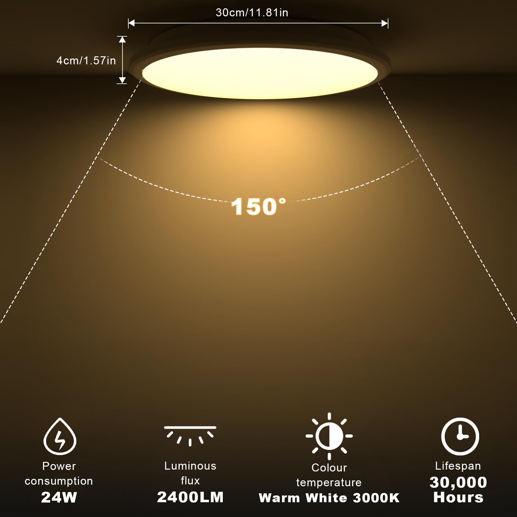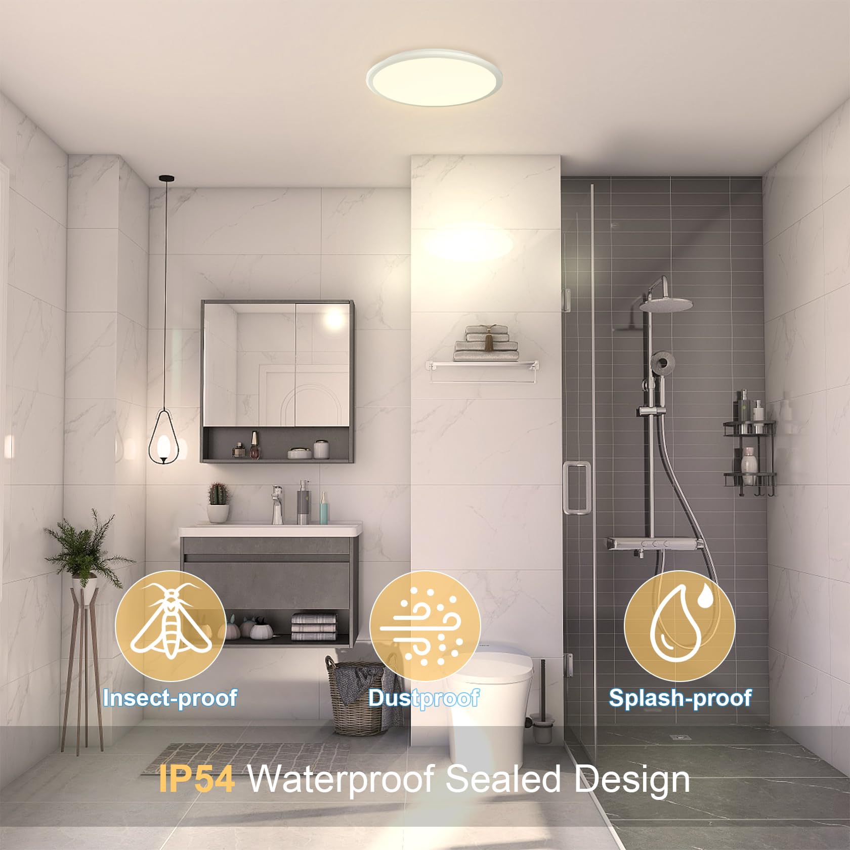 LUTW Deckenlampe LED 24W, LED Deckenleuchte Flach Rund Warmweiss 3000K 2400lm, Badezimmer Lampe IP54 Wasserfest, Badlampe Decke Modern für Wohnzimmer Schlafzimmer Küche, Ø30CM