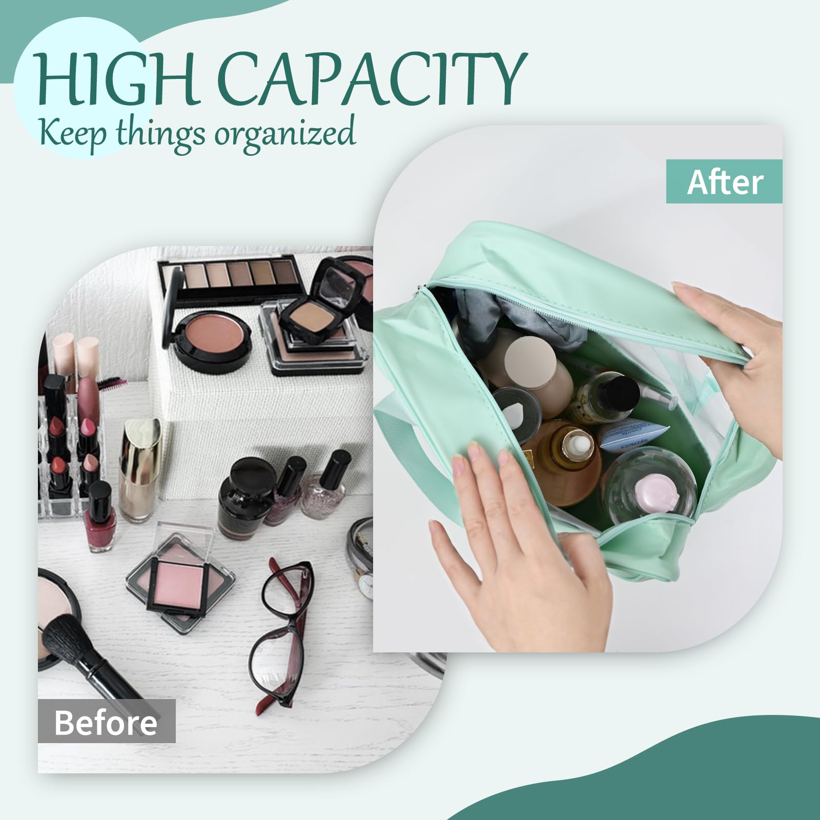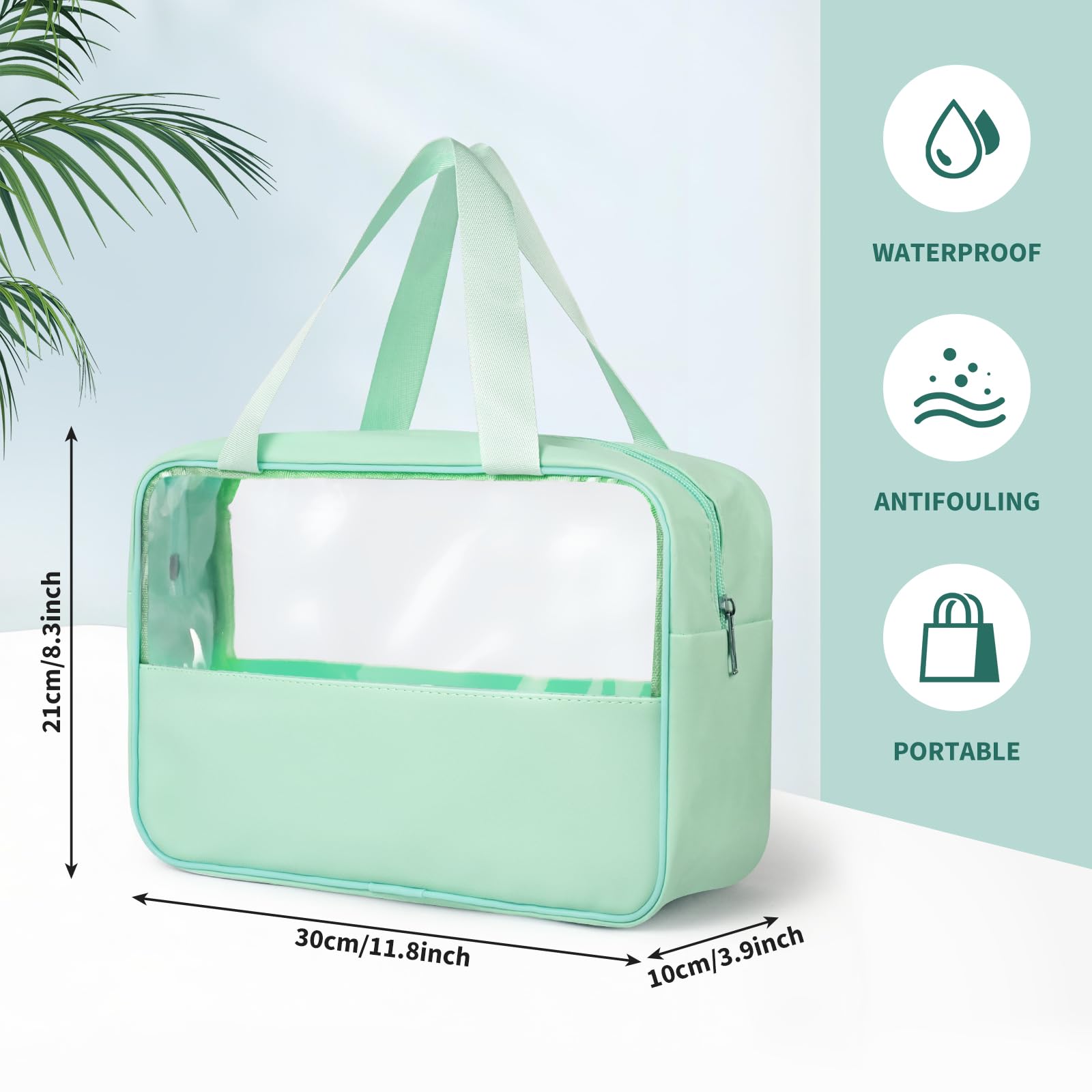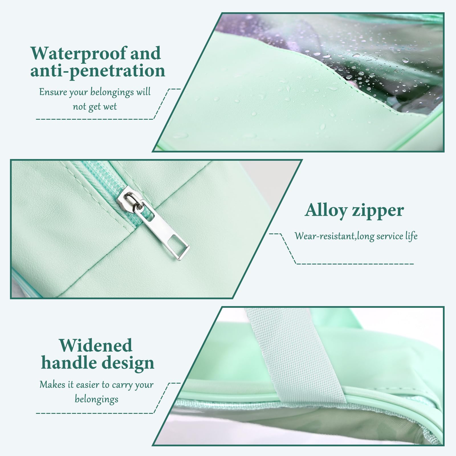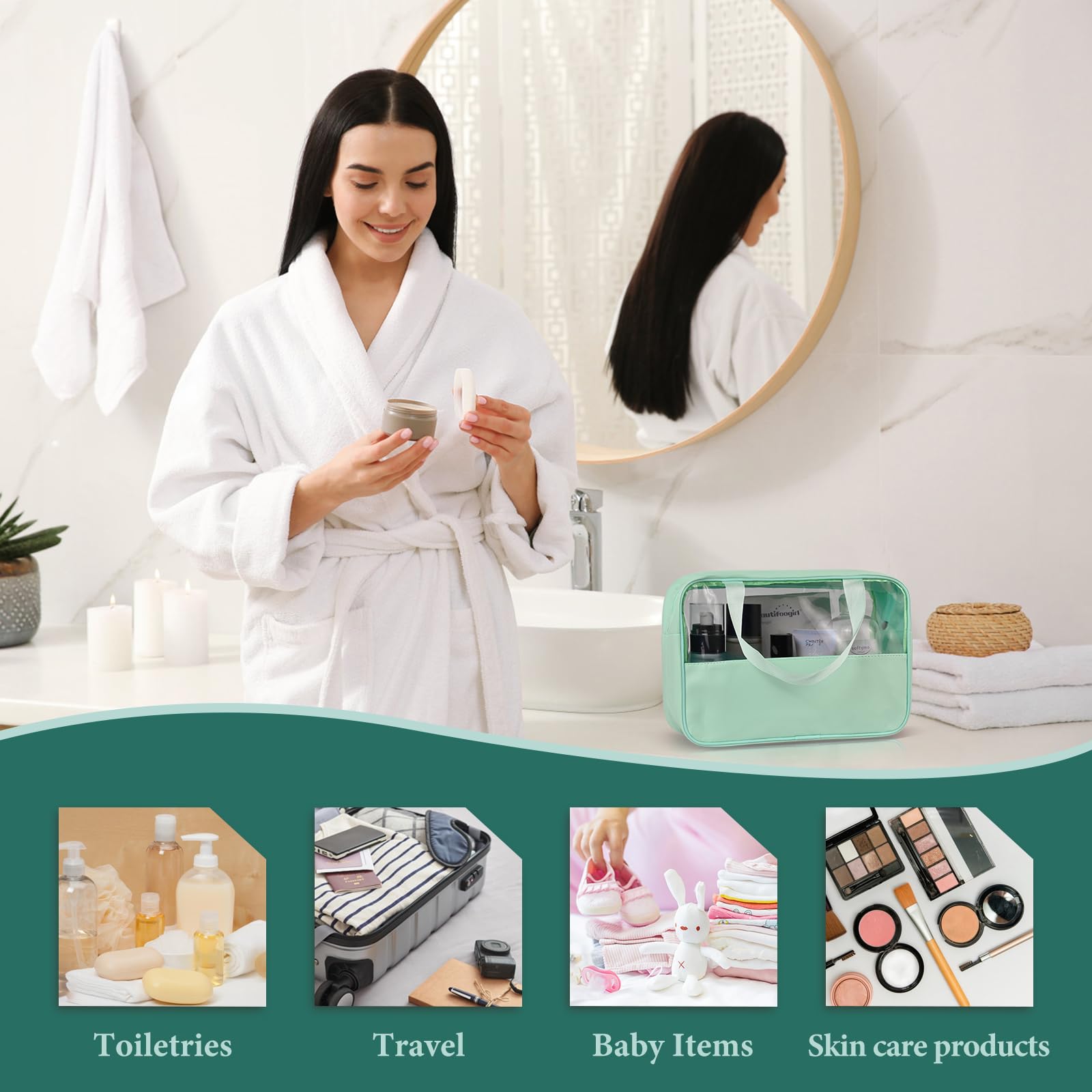 Luxoraiova Kosmetiktasche Durchscheinend, Kulturtasche Damen, Tragbare Kulturbeutel Herren, Flugzeug PVC Waschtasche Damen Wasserdicht, Kulturtaschen für Männer, Frauen, Familie (Grün)