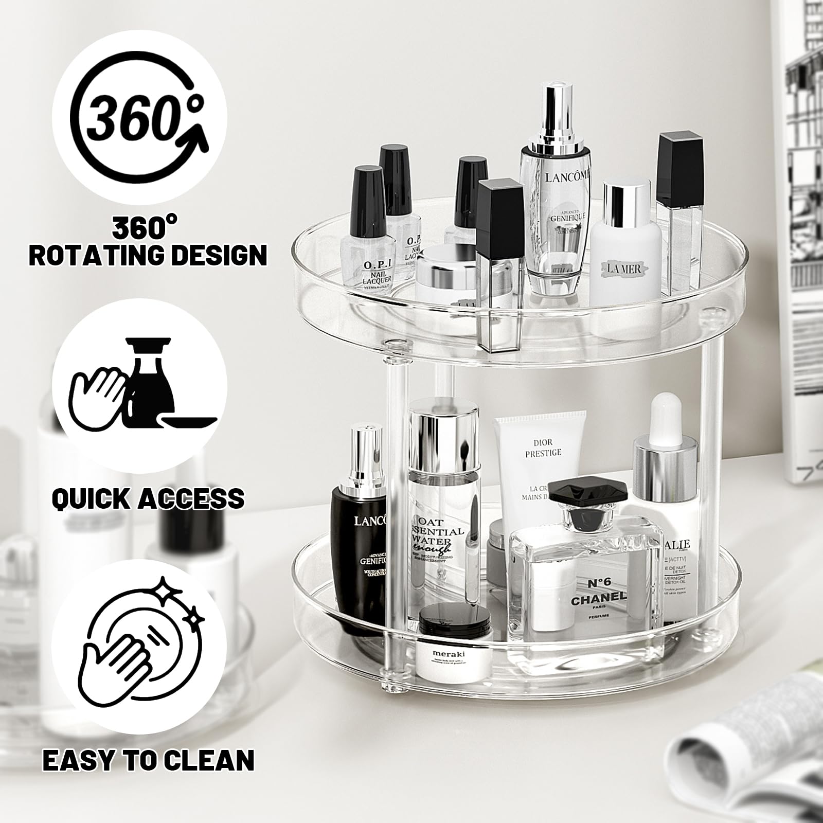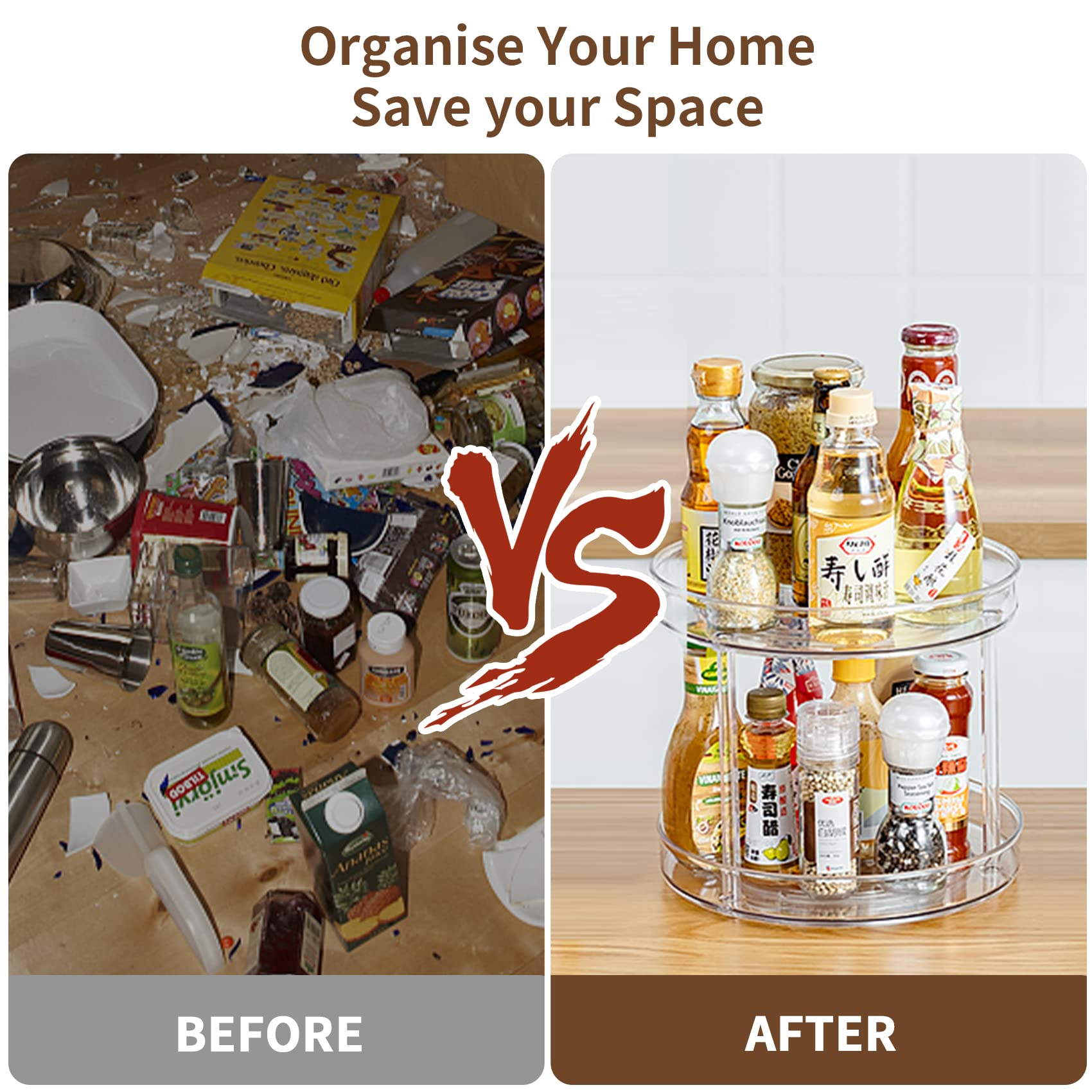 LUZOON Lazy Susan Dreh-Tablett, drehbar, Organizer für Küche, Schrank, Aufbewahrung von Artikeln für Gewürze, Kühlschrank, Schlafzimmer (27 cm, 2 Etagen)