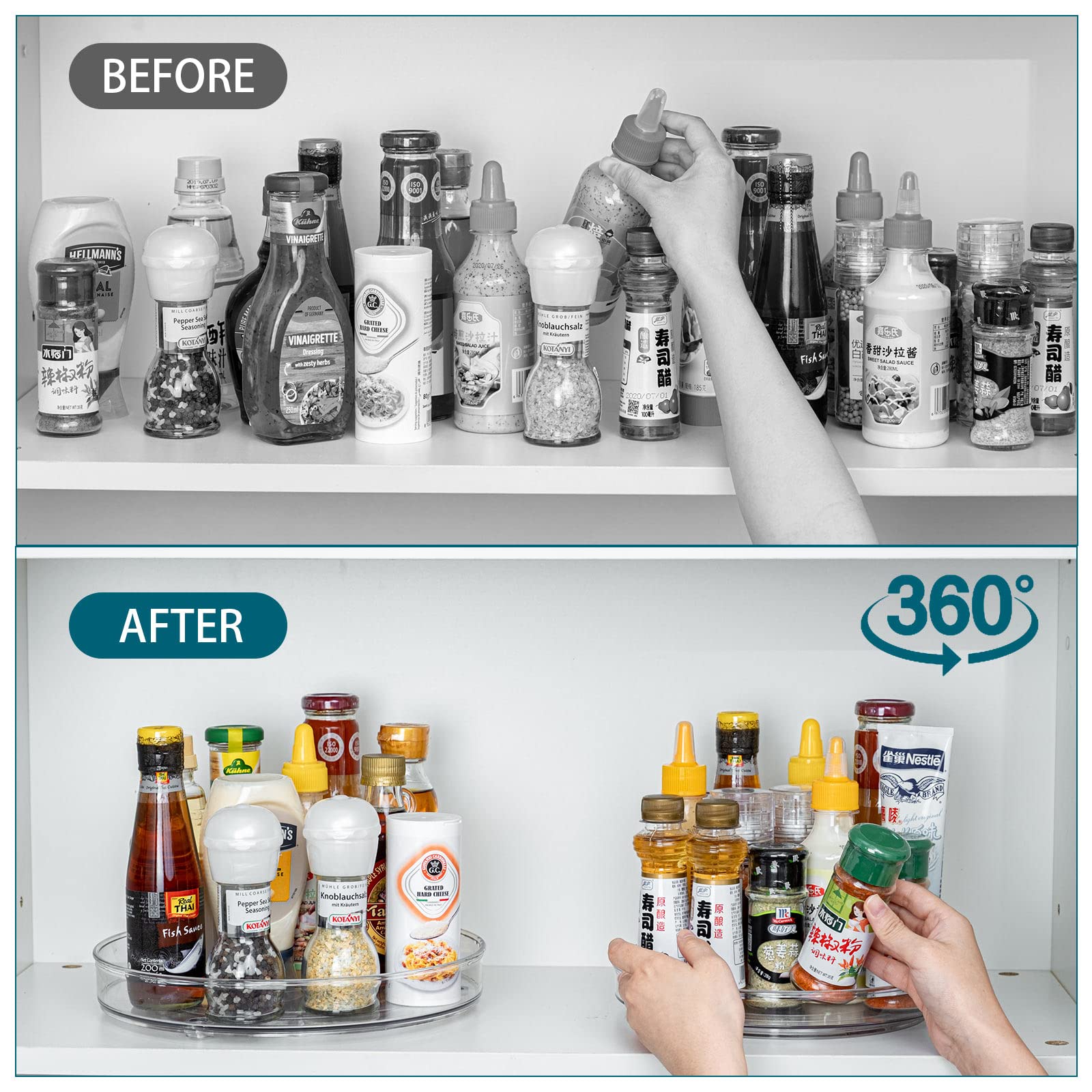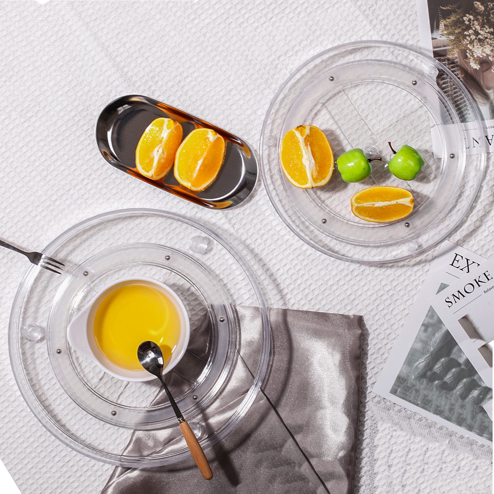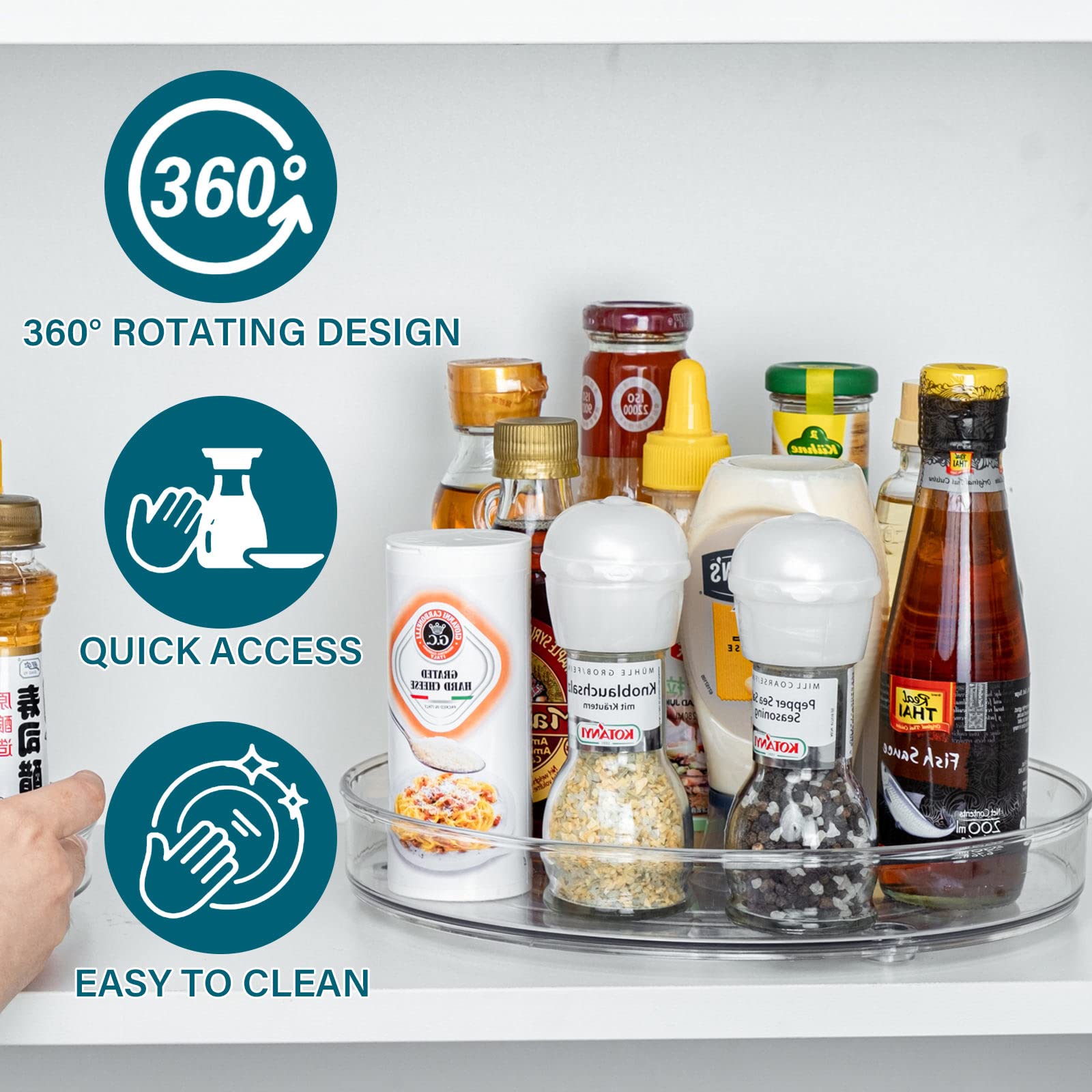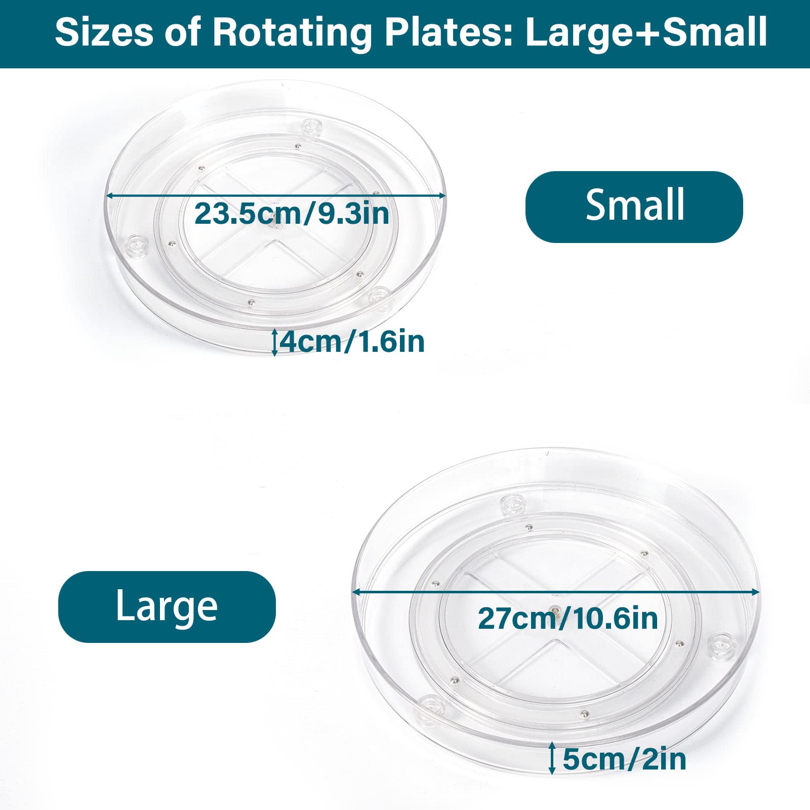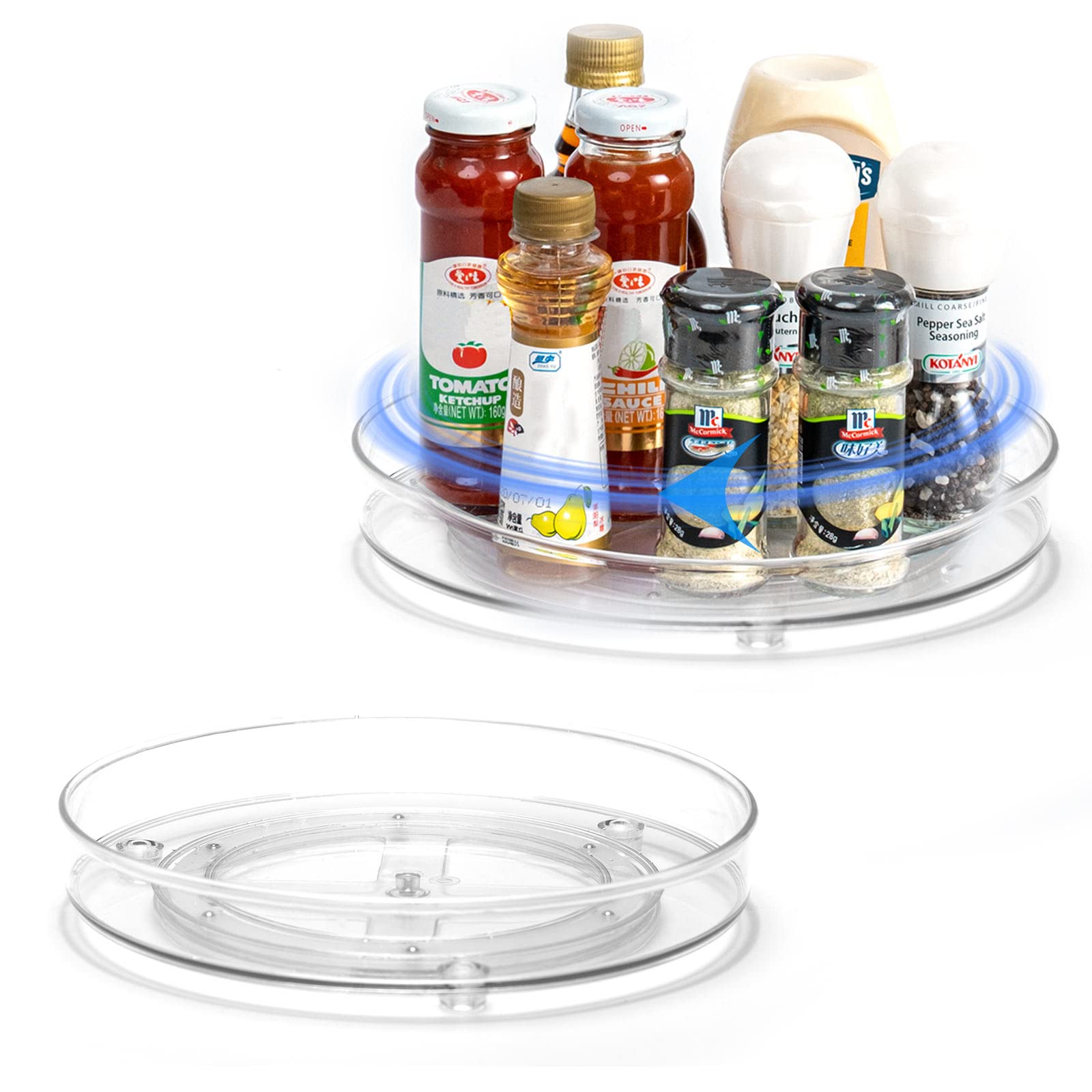 LUZOON 2 Stück Kühlschrank Organizer, Schrank Organizer Küchen Lazy Susan 360° Drehbarer Gewürzhalter – Transparent(27cm+23cm)