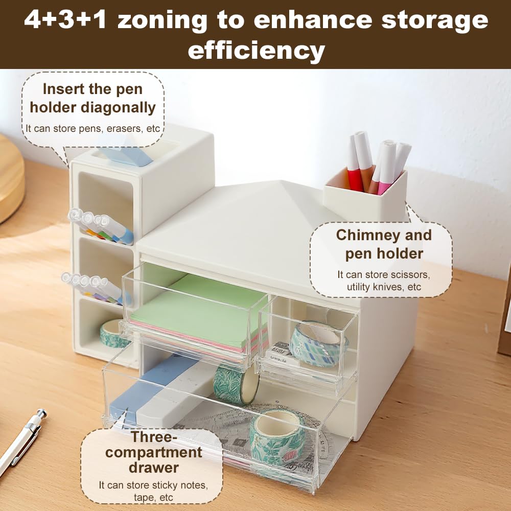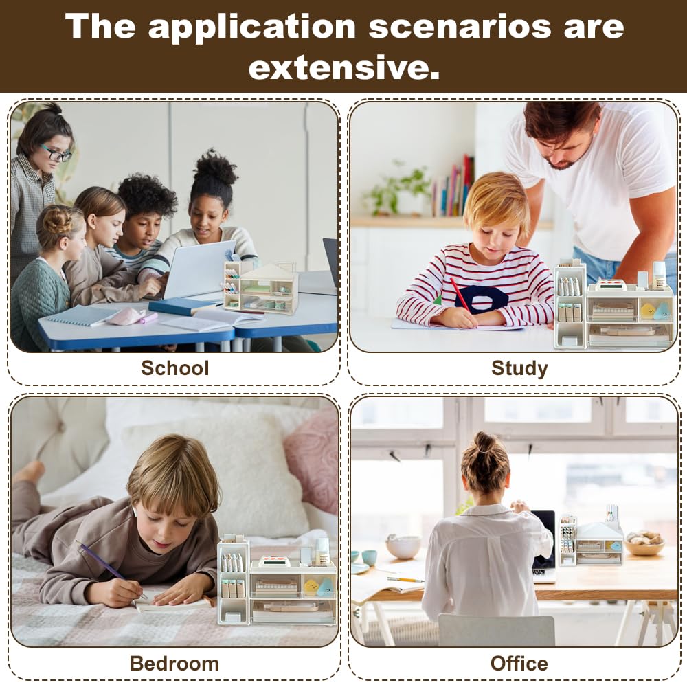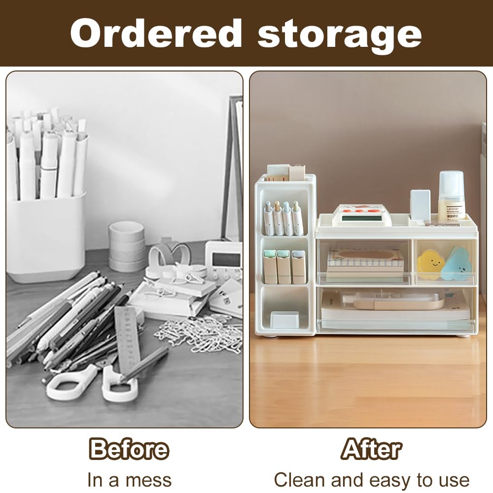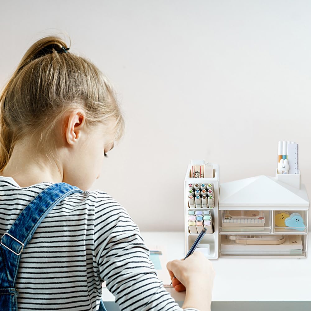 Lvjkes Schreibtisch organizer, Stiftehalter Aufbewahrungskiste 8 Fächer Grosse Kapazität, Doppelschicht transparente Schublade, Kann Bleistifte, Buntstifte, Verschiedene Schreibwaren aufnehmen (Weiss)