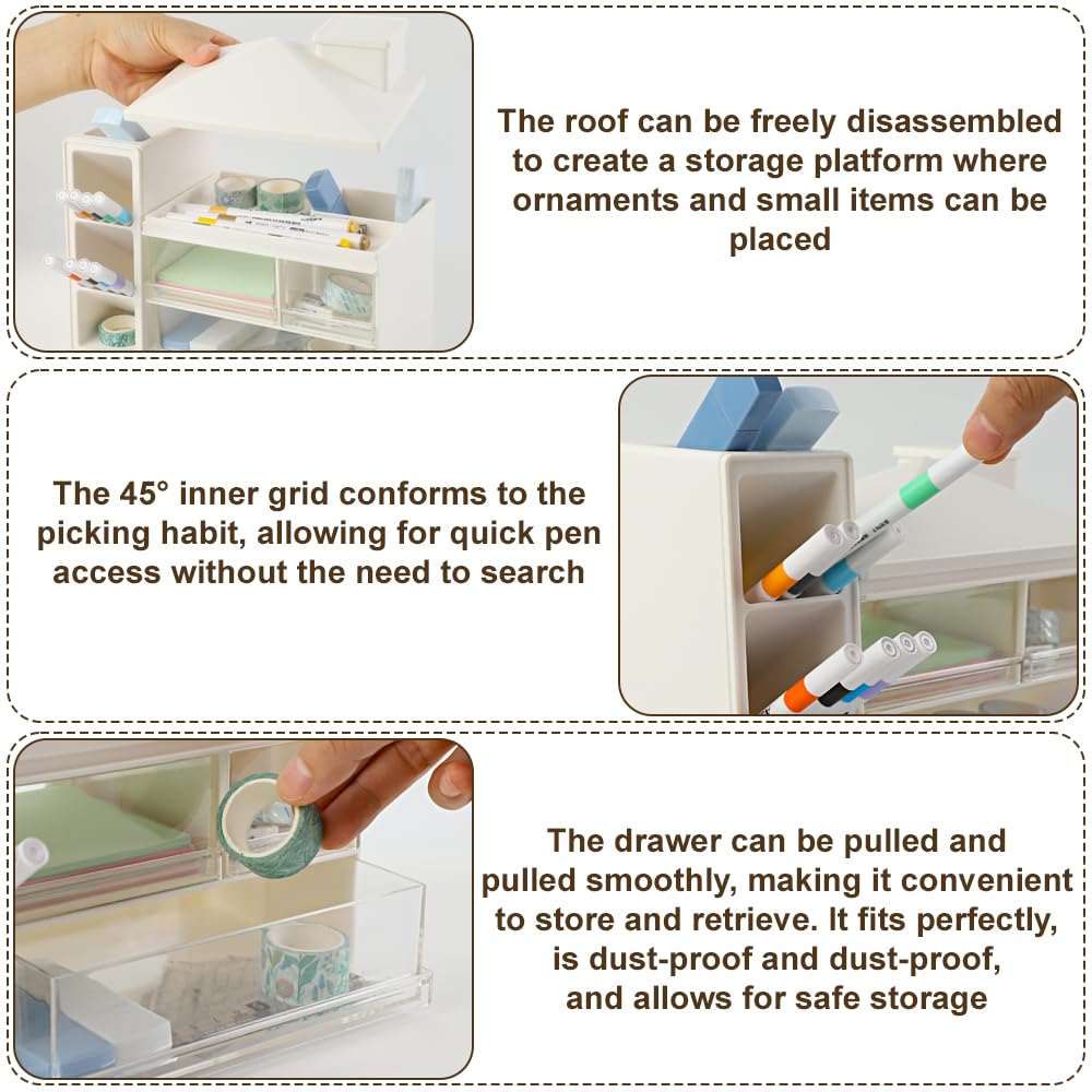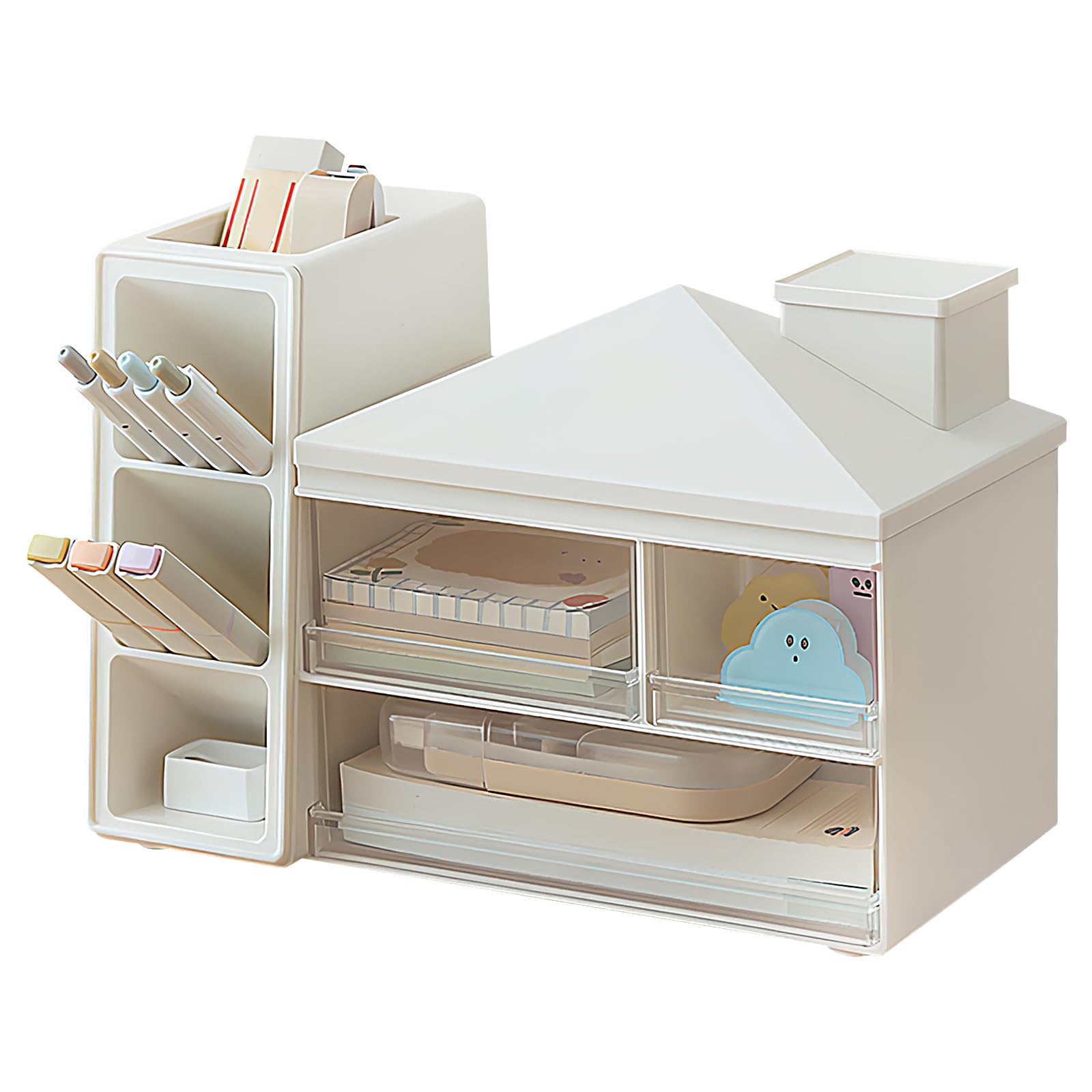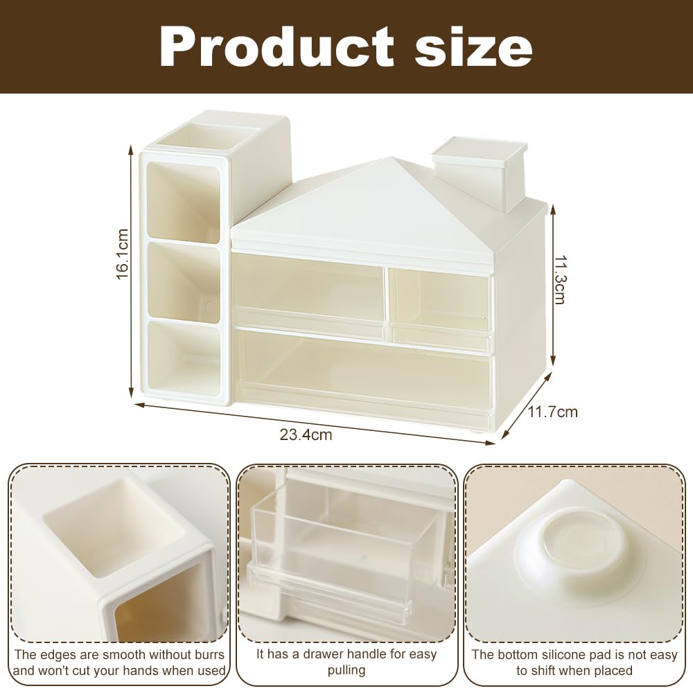 Lvjkes Schreibtisch organizer, Stiftehalter Aufbewahrungskiste 8 Fächer Grosse Kapazität, Doppelschicht transparente Schublade, Kann Bleistifte, Buntstifte, Verschiedene Schreibwaren aufnehmen (Weiss)