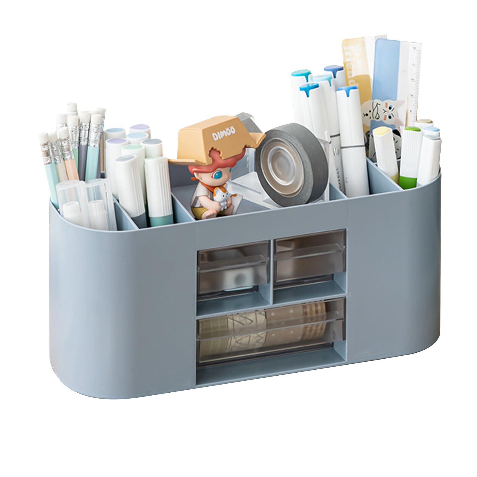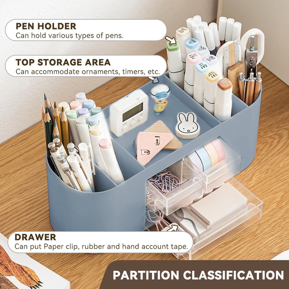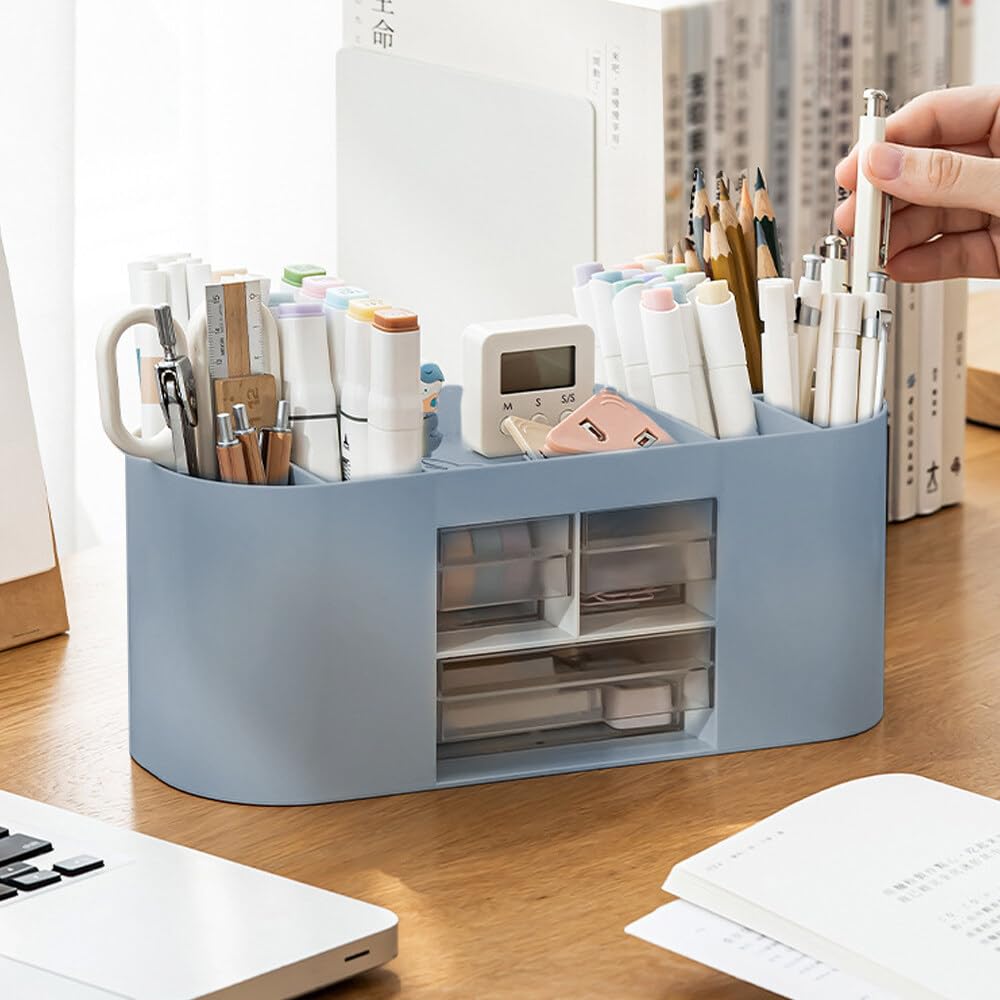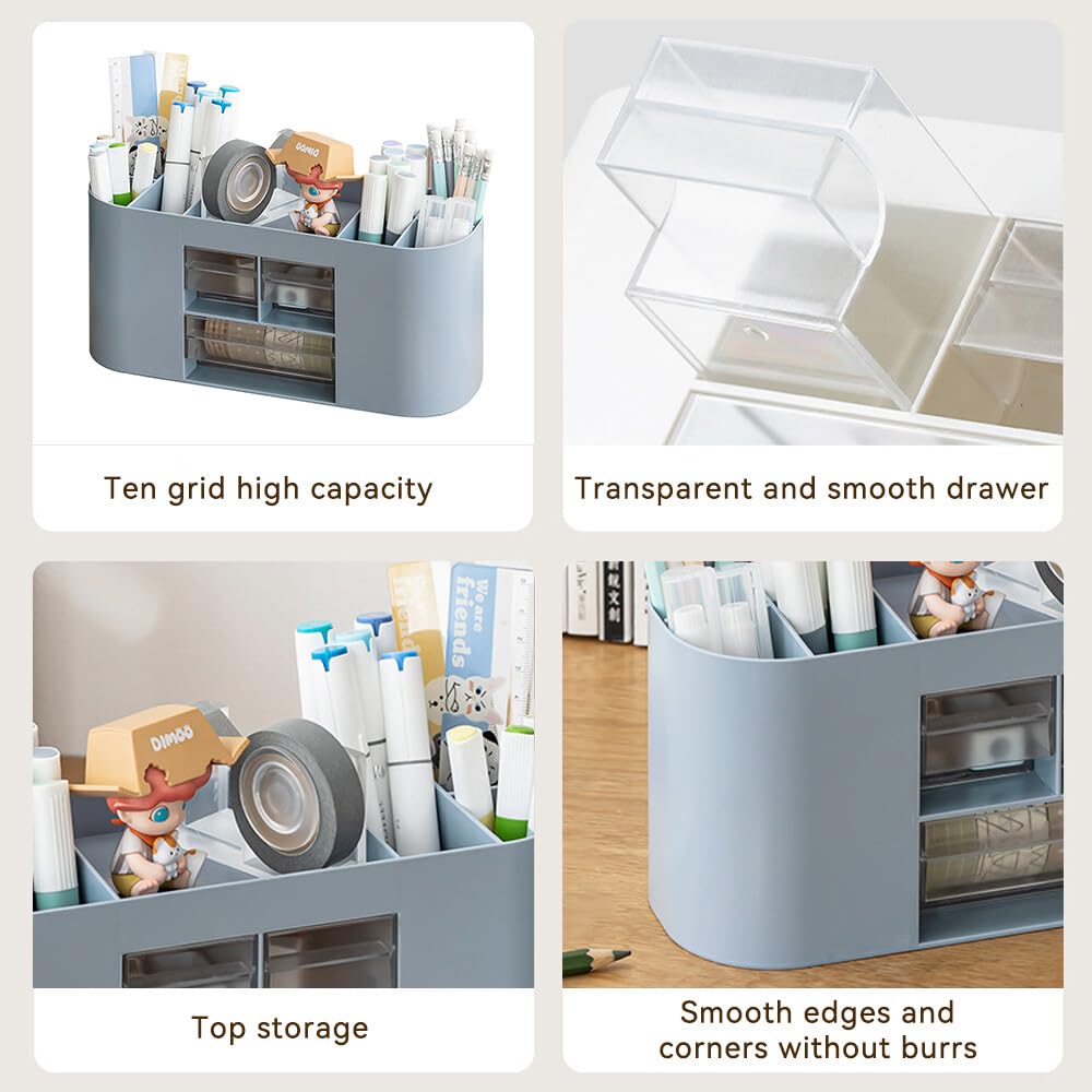 Lvjkes Stiftehalter Aufbewahrungskiste, Schreibtisch organizer 10 Fächer Grosse Kapazität, Doppelschicht transparente Schublade, Kann Bleistifte, Buntstifte, Verschiedene Schreibwaren aufnehmen (Blau)