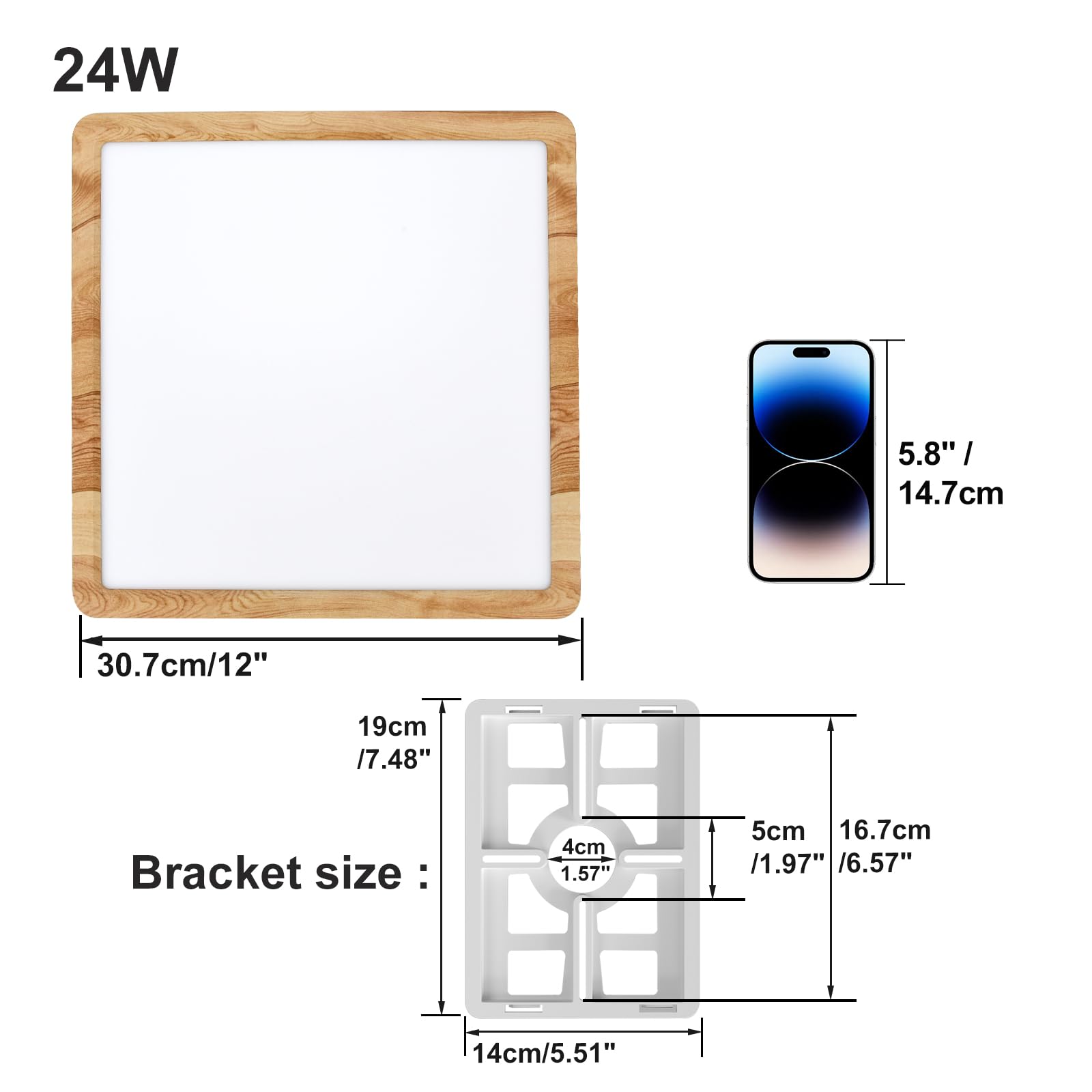 Spezifikationen: Leistung: 24W Lumen: 2600 lm Spannungen: 220-240 V CRI>90 Temperaturfarbe: Tageslicht (5000 K) + Neutrales Licht (4000 K) + Warmes Licht (2800 K) Abstrahlwinkel: 120° Dimmbar: Nicht dimmbar Lebensdauer: 30.000 Stunden Im Lieferumfang enthalten: 1x LED-Panel-Leuchte 1x Montagehalterung 1x Kurzanleitung 3x Schrauben 3x Expansionsrohr Hinweis: LED-Panel-Deckenleuchte unterstützt keinen Triac-Dimmer.