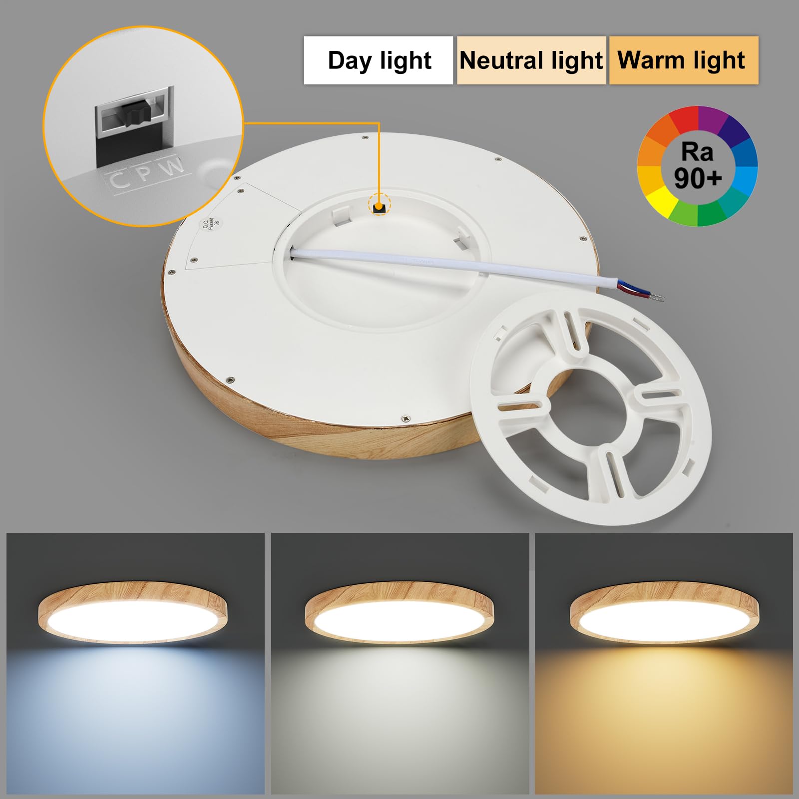 Spezifikationen: Leistung: 18W Lumen: 1650 lm Spannungen: 220-240 V CRI > 90 Temperaturfarbe: Tageslicht (5000 K) + Neutrales Licht (4000 K) + Warmes Licht (2800 K) Abstrahlwinkel: 120° Dimmbar: Nicht dimmbar Lebensdauer: 30.000 Stunden Im Lieferumfang enthalten: 1x LED-Deckenleuchte 1x Montagehalterung 1x Kurzanleitung 3x Schrauben 3x Expansionsrohr Hinweis: Die LED-Deckenleuchte unterstützt keinen Triac-Dimmer.