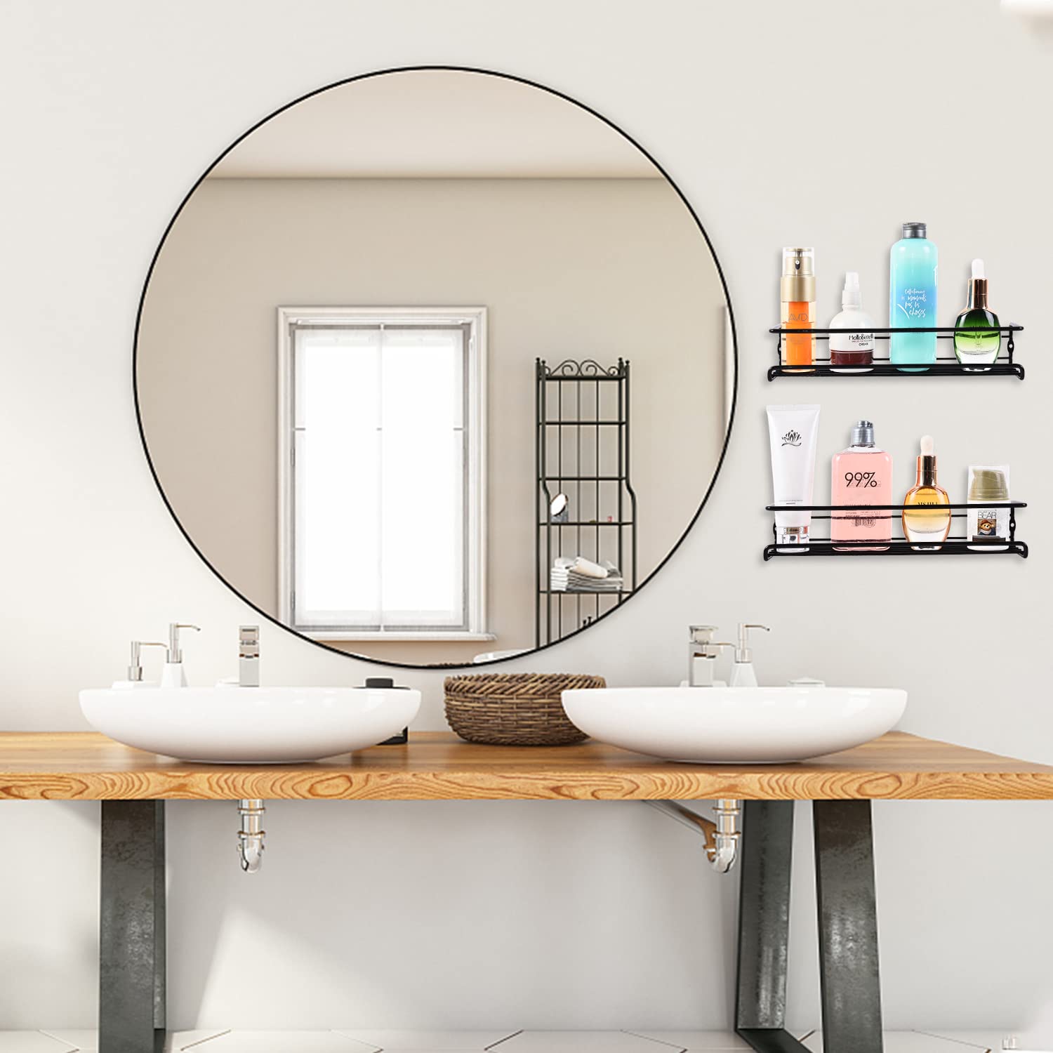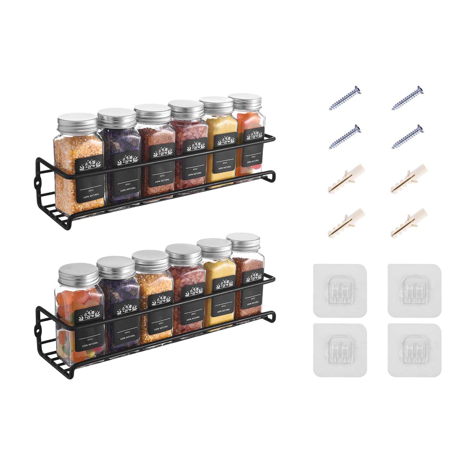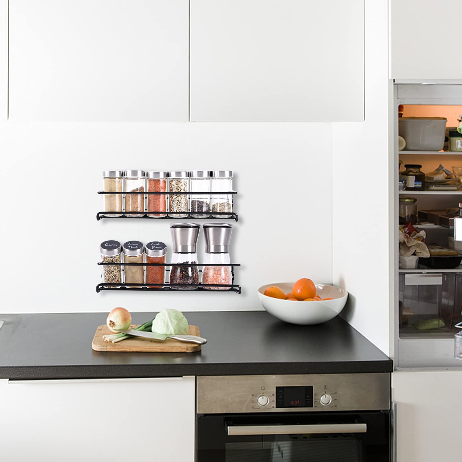 LXUDN Rocneuna 2-Teiliges Set Gewürzregal Wand Ohne Bohren, 29×8×6CM Schwarz Hängend, Schranktür, Metall Gewürzstände als Küchenschrank Organizer Küchenregal