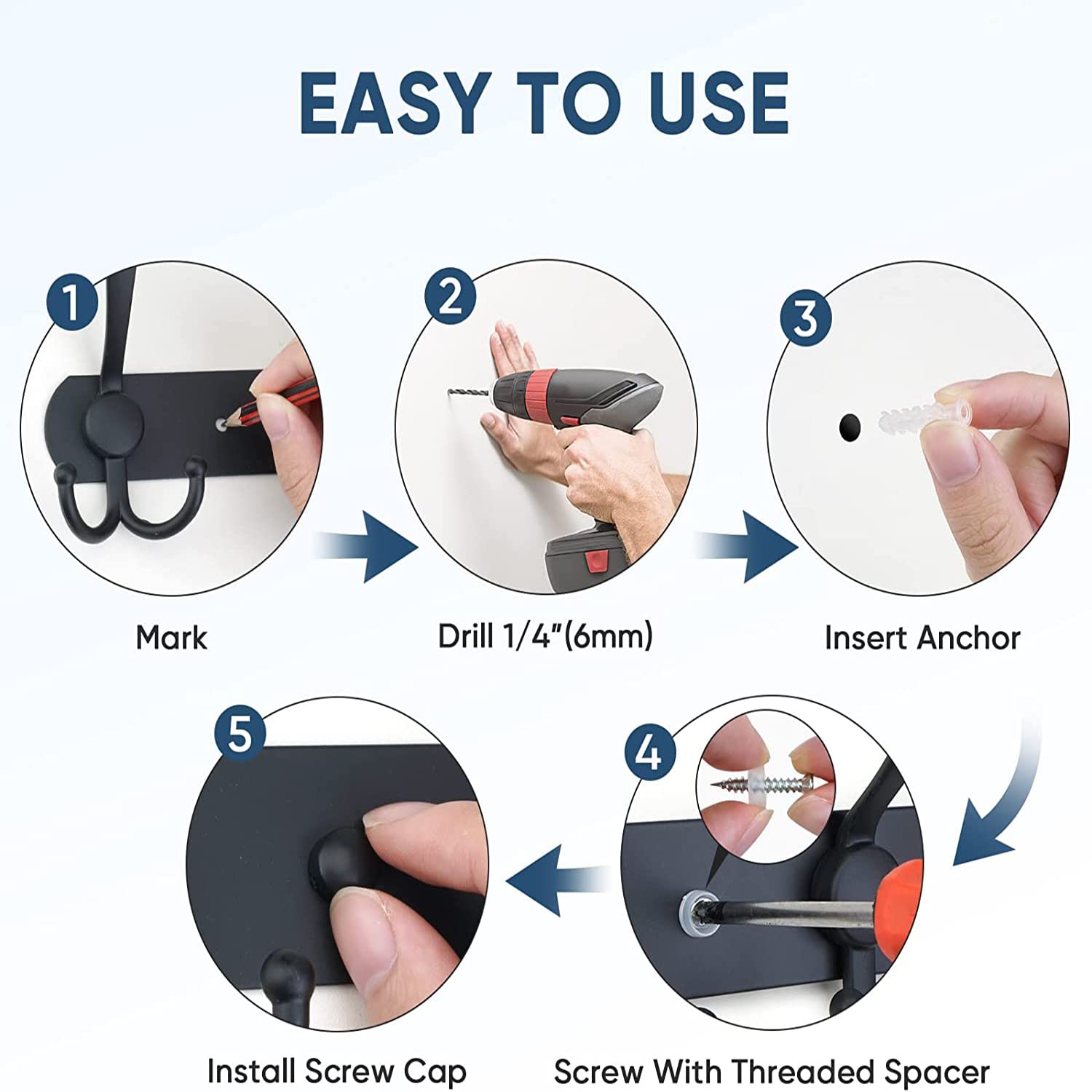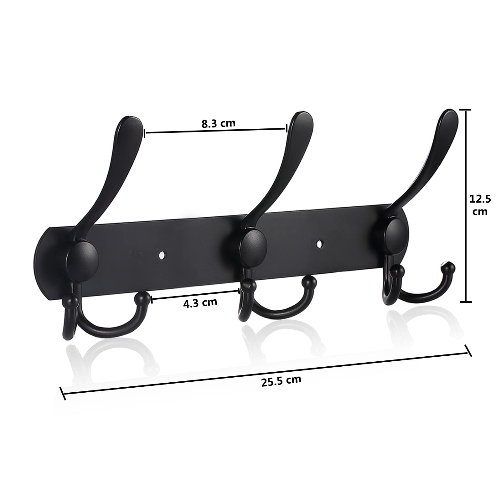 LYLIN kleiderhaken Hakenleiste, Garderobenhaken Edelstahl Rostfrei Handtuchhaken Wandhaken Garderobenleiste Vintage Jackenhalter Wand (Matt Schwarz, 9 Haken, 1Pcs)