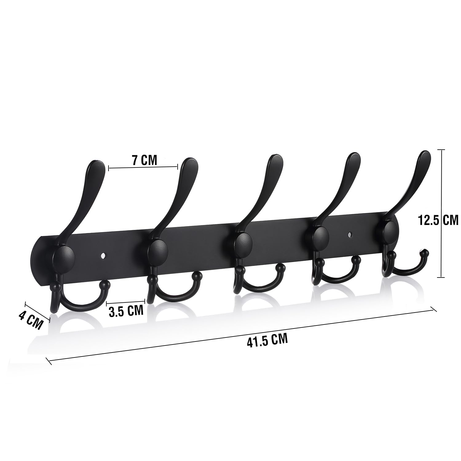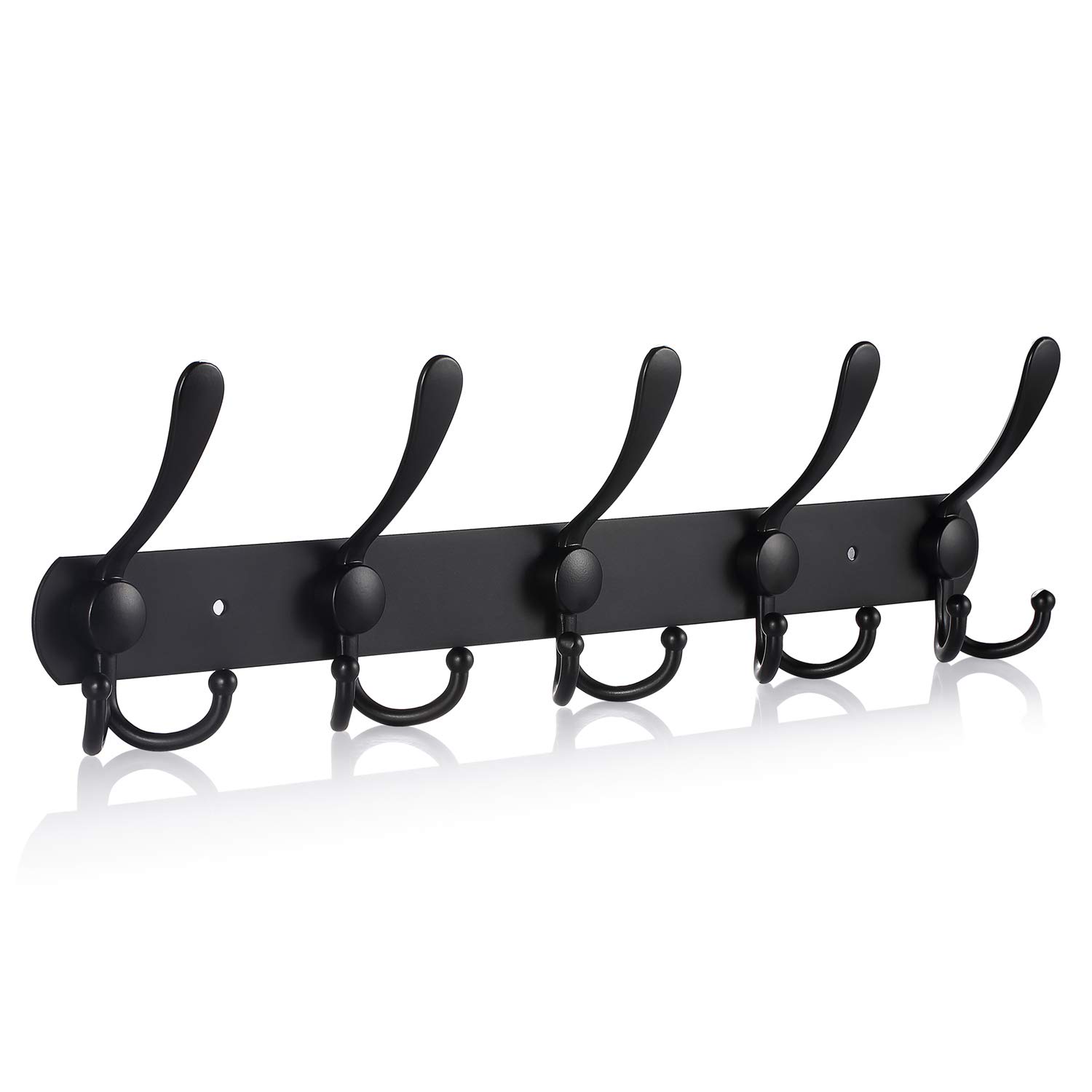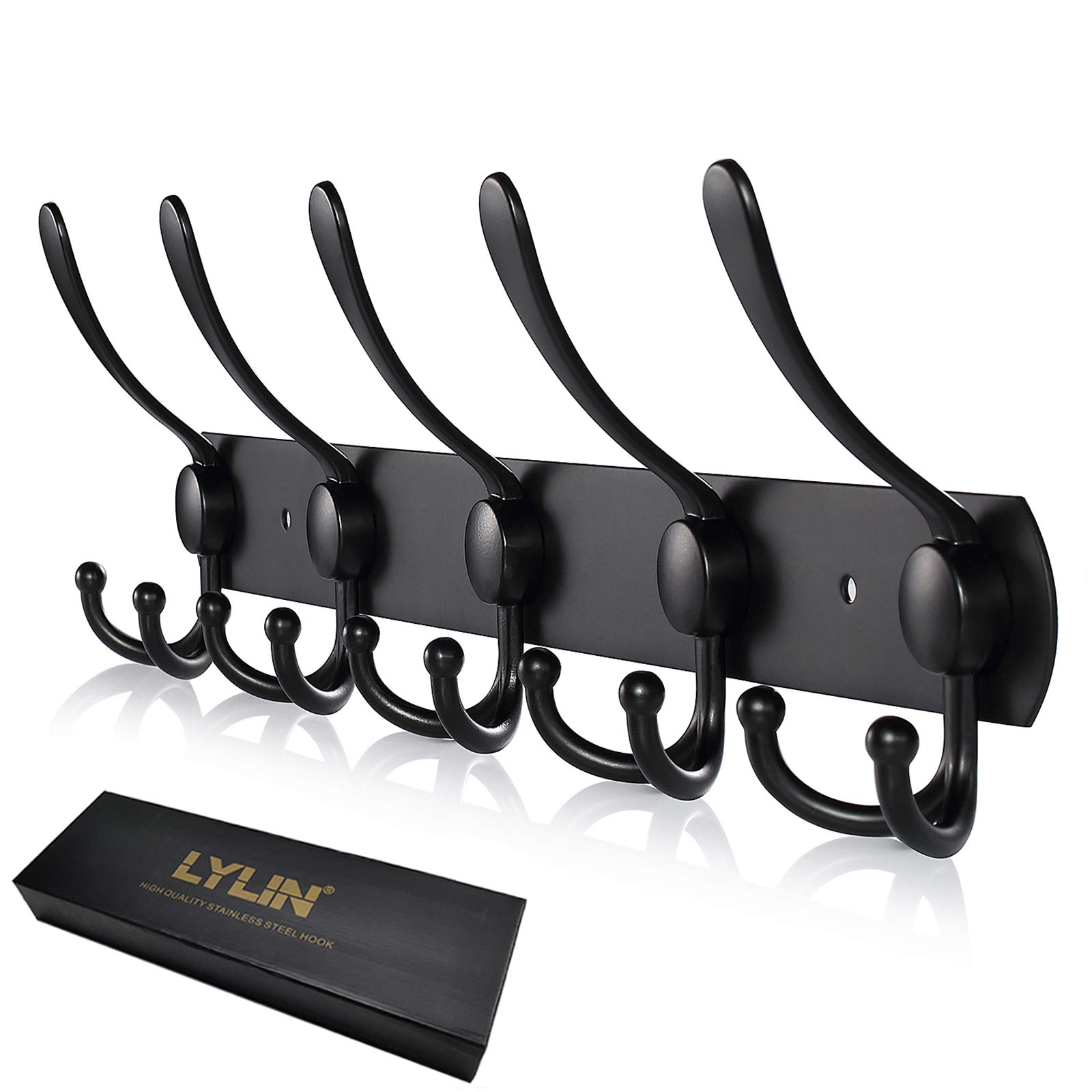 LYLIN kleiderhaken Hakenleiste, Garderobenhaken Edelstahl Rostfrei Handtuchhaken Wandhaken Garderobenleiste Vintage Jackenhalter Wand (Matt Schwarz, 15 Haken, 1Pcs)