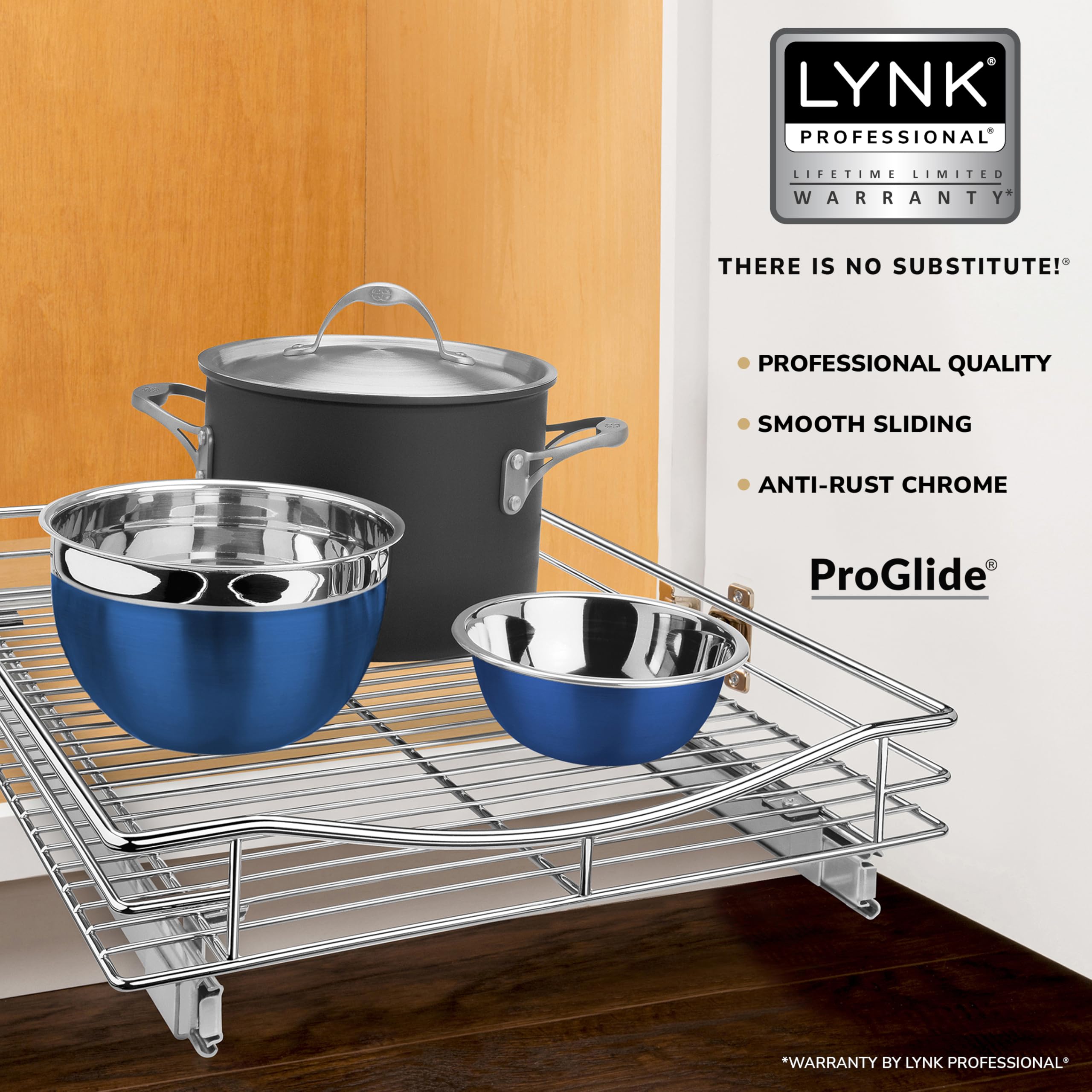 LYNK PROFESSIONAL Slide Out Chrome Cabinet Organizer – ausziehbares Regal unter dem Schrank, Metall, 17" W x 18" D