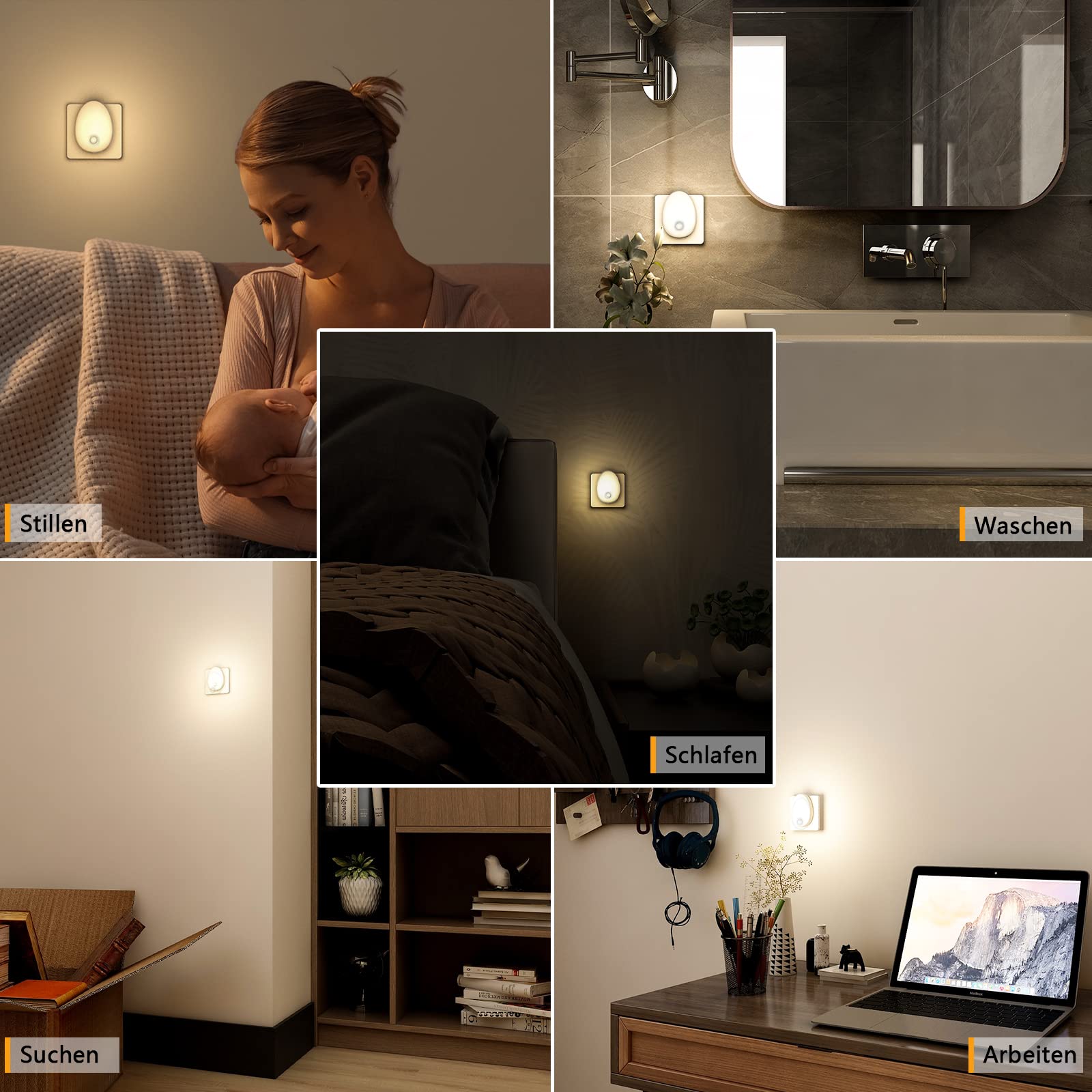 LED Nachtlicht Steckdose mit Bewegungsmelder nachtlampe LED licht Hell LED Nachtlicht – perfekt für dunkle Räume! Passen Sie die Helligkeit an, indem Sie das Bedienfeld gedrückt halten oder darauf tippen. Verabschieden Sie sich vom Stolpern im Dunkeln und begrüssen Sie einen gut beleuchteten Raum. Sparen Sie Energie mit unserem Nachtlicht mit Bewegungsmelder - Der Auto-Modus erkennt Bewegungen im Dunkeln und schaltet sich nach 90 Sekunden ohne Bewegung aus. Der ON-Modus sorgt für konstante Beleuchtung. Augenpflegendes Nachtlicht - Erleben Sie beruhigenden Komfort mit unserem warmweissen Schlaflicht, das Sie im Dunkeln niemals blenden wird. Verabschieden Sie sich von unruhigen Nächten und begrüssen Sie ein entspanntes und komfortables Schlaferlebnis. Empfindlicher Bewegungssensor - Unser Mini-Nachtlicht mit kompaktem Sensor erkennt sogar leichte Bewegungen. Stecken Sie es in eine Standardsteckdose und geniessen Sie eine zusätzliche Steckdose für Ihren Komfort. 120-Grad-Erfassungswinkel, 10-13 Fuss Reichweite für perfekte Ausleuchtung. Vielseitig und praktisch - Unser LED Nachtlicht Steckdose ist geeignet für jeden Raum in Ihrem Haus. Vom Badezimmer bis zum Keller, von der Küche bis zum Kinderzimmer, von der Garage bis zum Flur bietet sie überall dort, wo sie benötigt wird, die perfekte Beleuchtungsstärke.