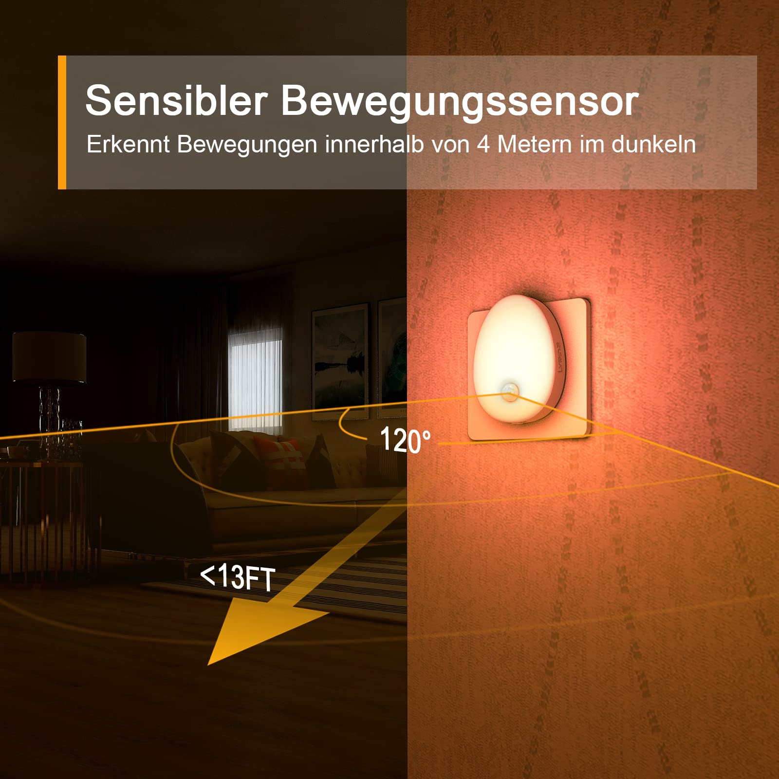 Rot Nachtlicht Steckdose mit Bewegungsmelder dimmbar hell Plug-in Nachtlicht Smart LED-Licht für Kinder Schlafzimmer Küche