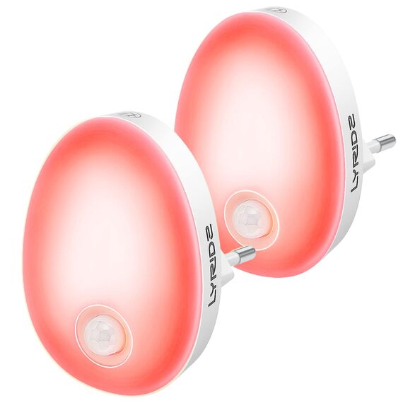 Lyridz Nachtlicht Steckdose mit Bewegungsmelder, strahlend hell Plug-in Nachtlicht dimmbar, Smart LED-Licht mit einstellbarer Helligkeit für Kinder Schlafzimmer Küche Flur Rot 2 Stück