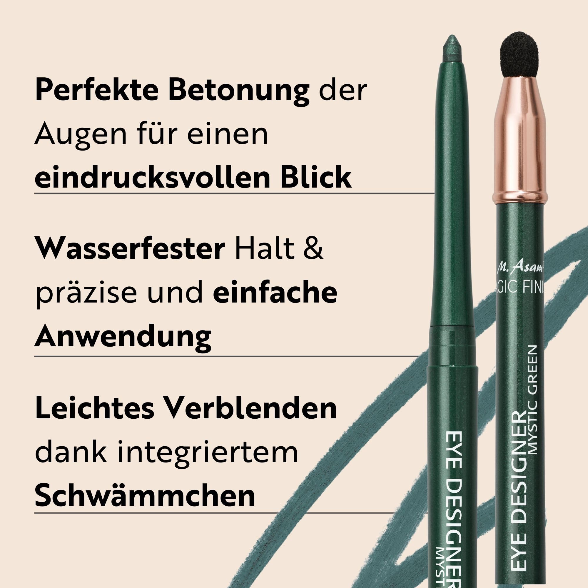 M. Asam MAGIC FINISH EYE DESIGNER Mystic-Green (0,28 g) – wasserfester Eyeliner für ein langanhaltendes & farbintensives Ergebnis mit integriertem Schwämmchen für einfaches Verblenden, Augen Make-up