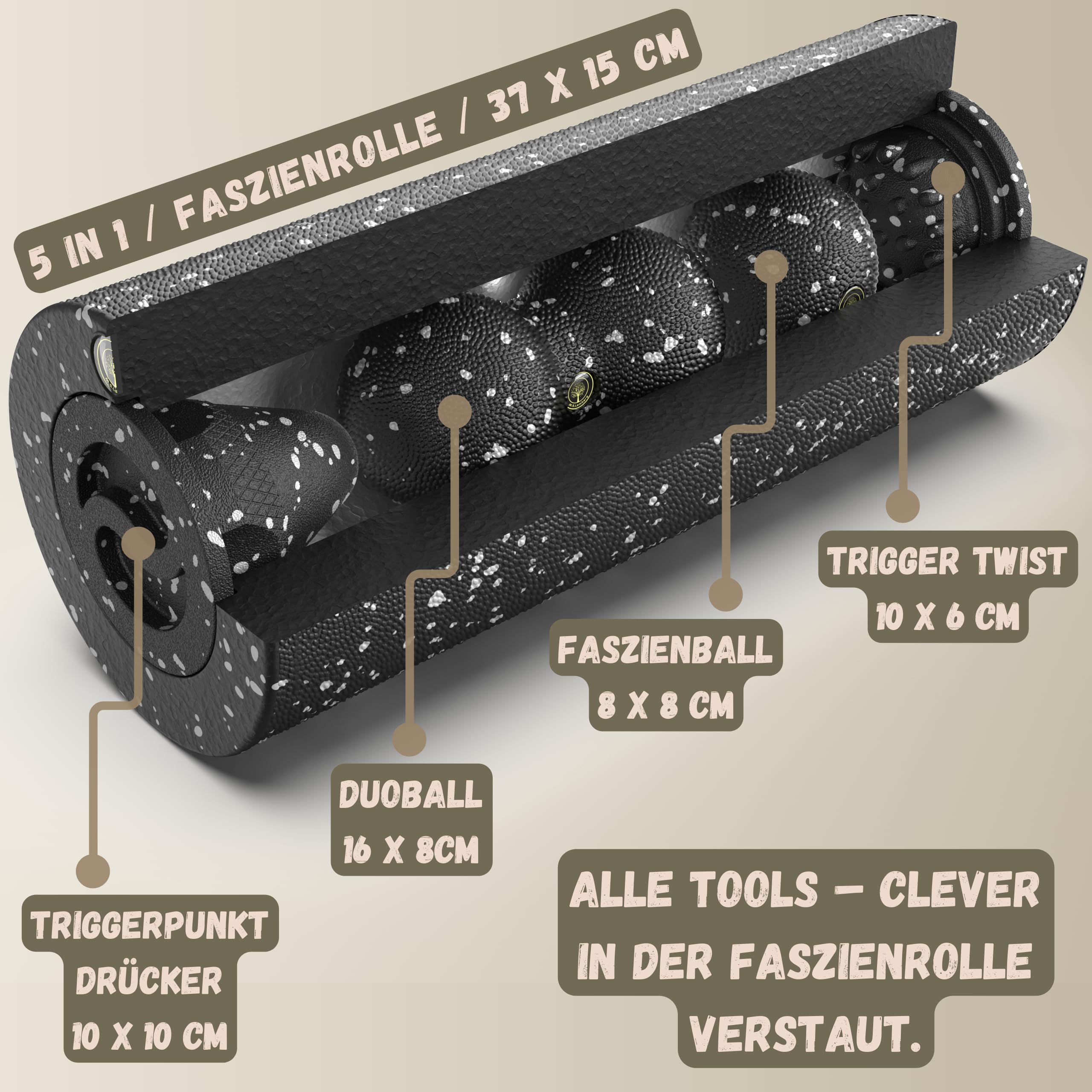 • ✅ ????????????-????????-???????????? ????????????????????????????-???????????? – Fünf Tools, ein Ziel: Maximale Entspannung & Erholung! Massagerolle, Massageball, Duoball, Triggerpunkt Drücker & Trigger Twist – perfekt abgestimmt für die ganzheitliche Selbstmassage von Kopf bis Fuss. Ein Must-have für mehr Wohlbefinden!
