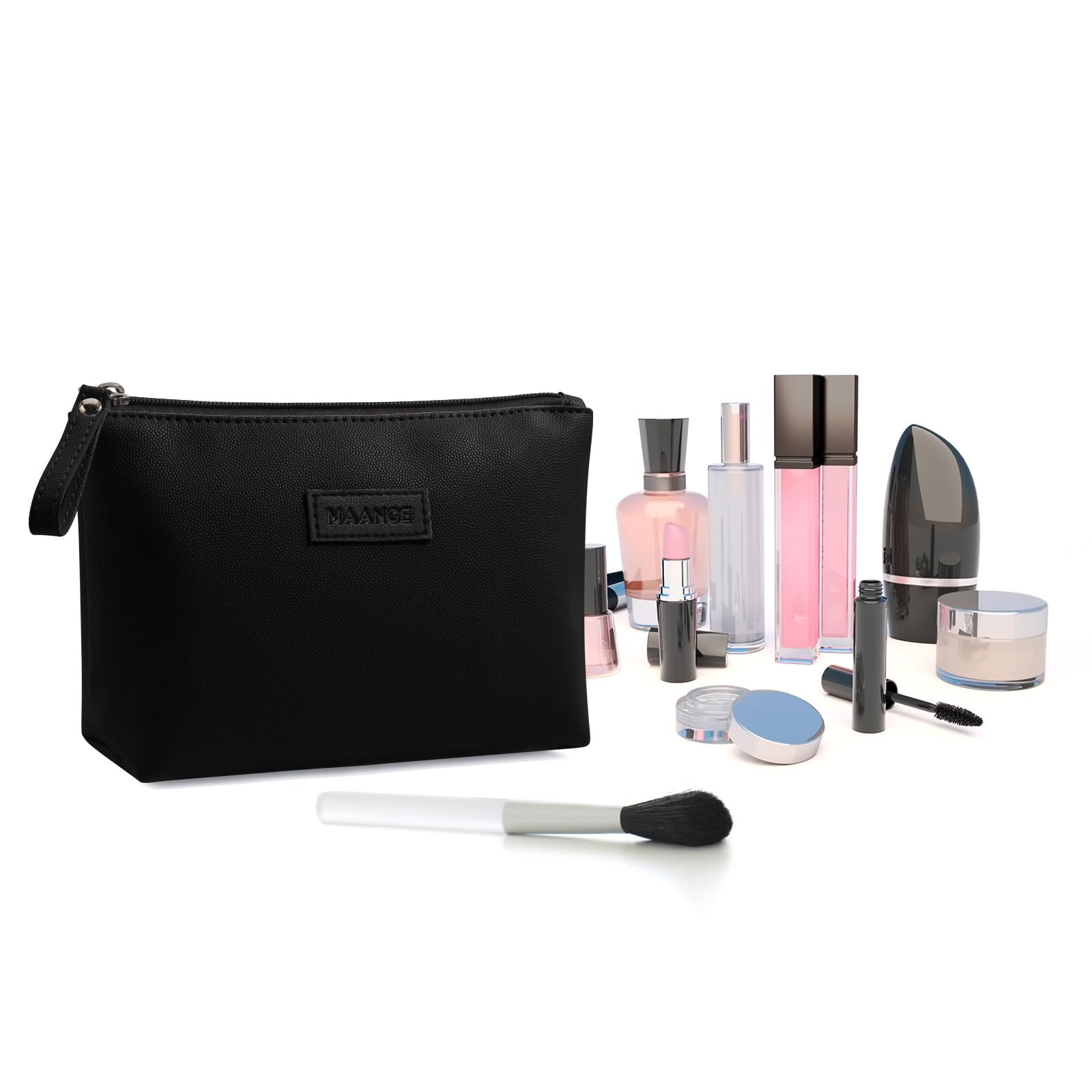 Kleine Kosmetiktasche MAANGE Kleine Make up Tasche Tragbare Reise Schminktasche wasserdichte PU Leder mit Griff Niedliche Vielseitige Reißverschlusstasche für Frauen (schwarz)