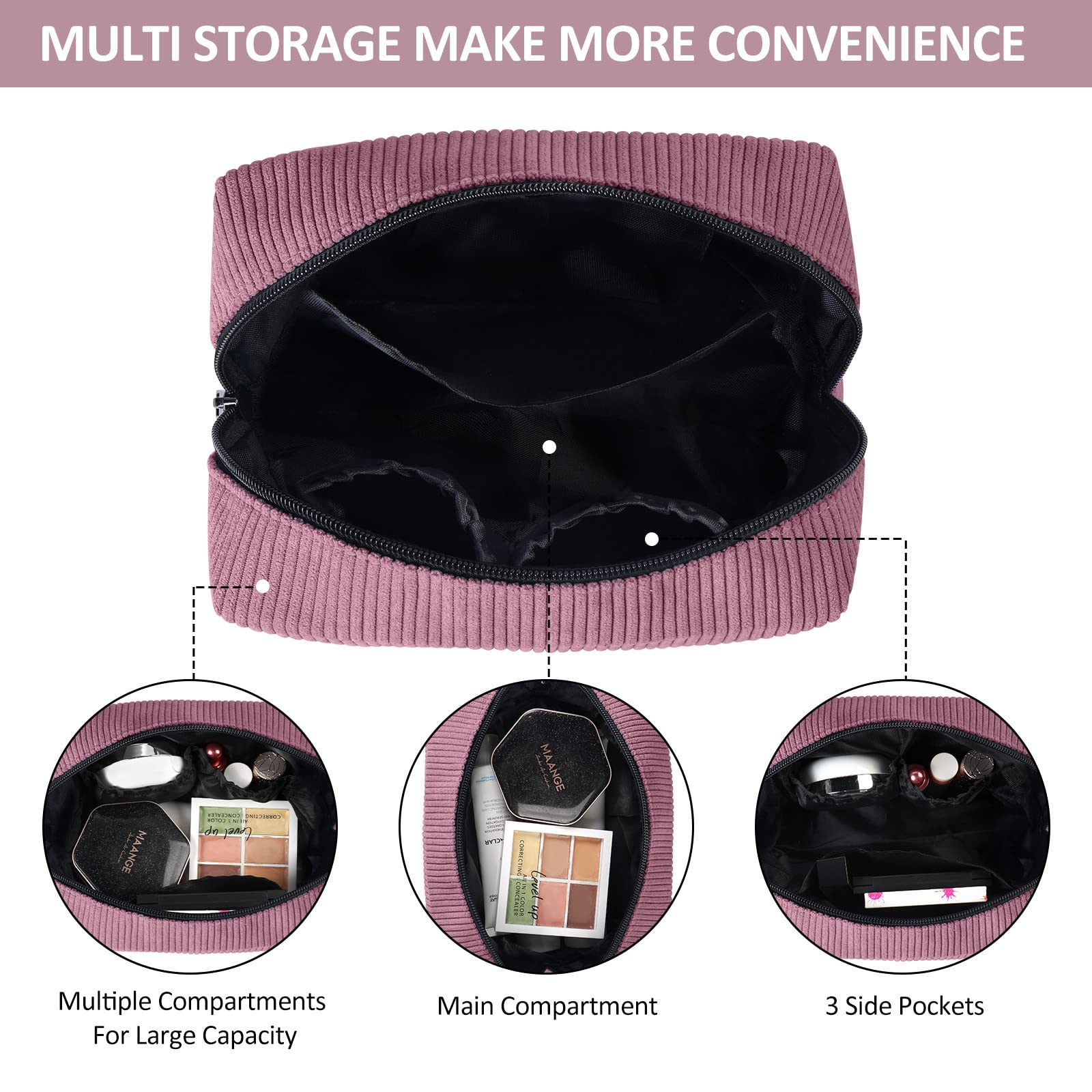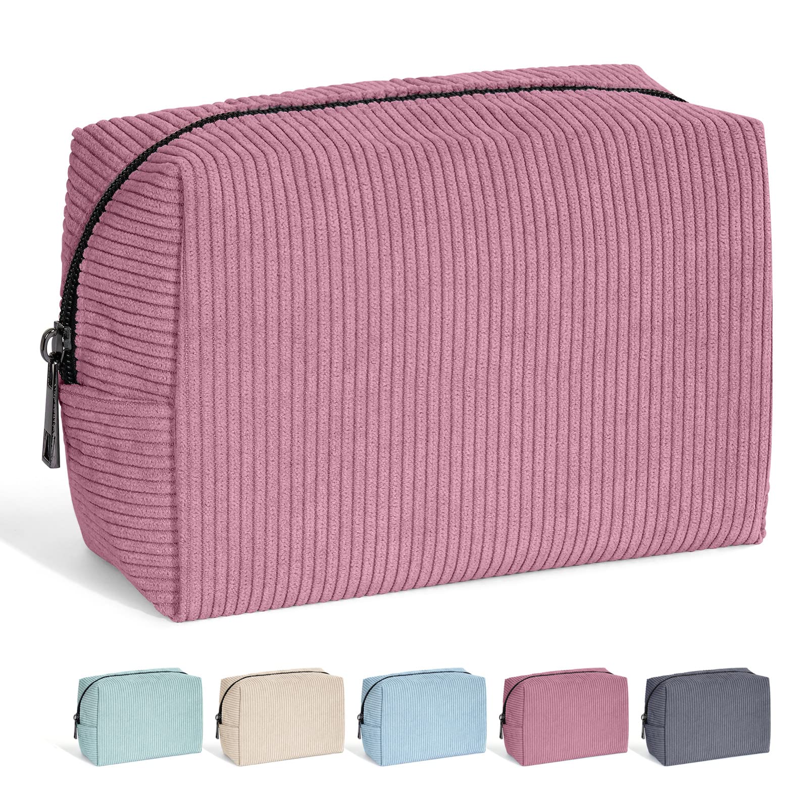 MAANGE Kleine Kosmetiktasche aus Cord – Kompakte Reise-Make-up-Tasche mit Reissverschluss, Rot