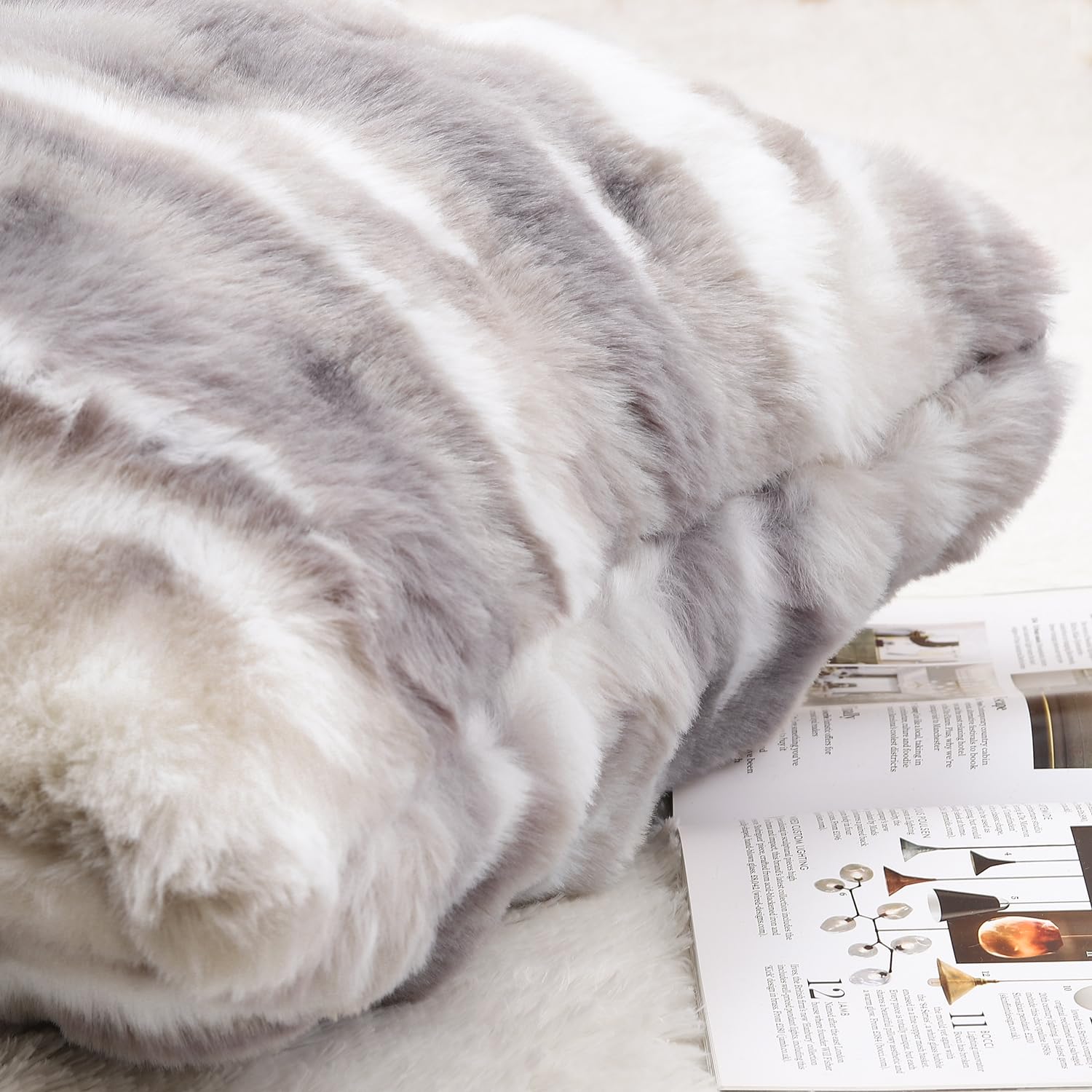 Madizz 2er Set Sanft Plüsch Kurze Wolle Samt Dekorativ Zierkissenbezüge Luxus Stil Kissenbezug für Sofa für Schlafzimmer Weiss Grau 50x50 cm