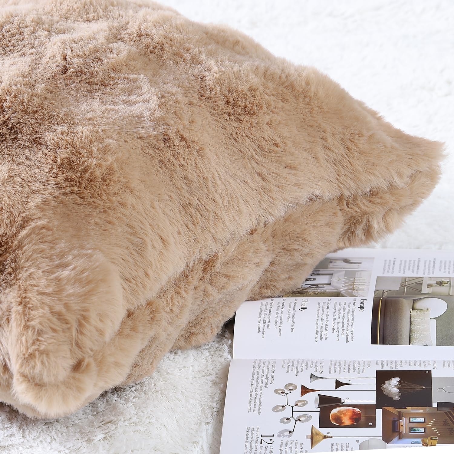 Madizz 2er Set Sanft Plüsch Kurze Wolle Samt Dekorativ Zierkissenbezüge Luxus Stil Kissenbezug für Sofa für Schlafzimmer Kamel 50x50 cm