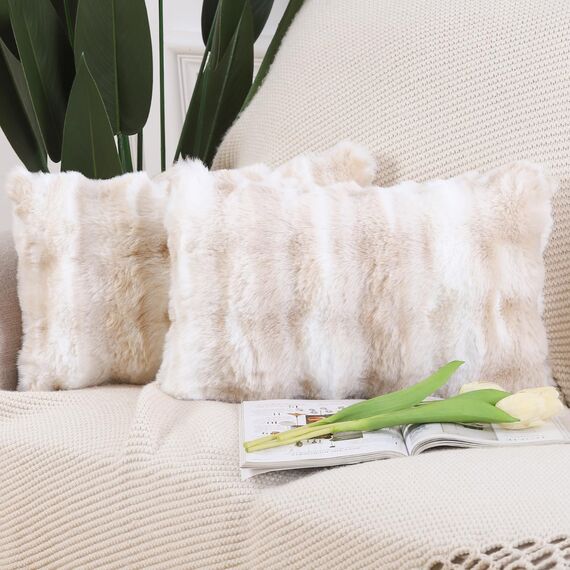 Madizz 2er Set Sanft Plüsch Kurze Wolle Samt Dekorativ Zierkissenbezüge Luxus Stil Kissenbezug für Sofa für Schlafzimmer Weiss Beige 30x50 cm