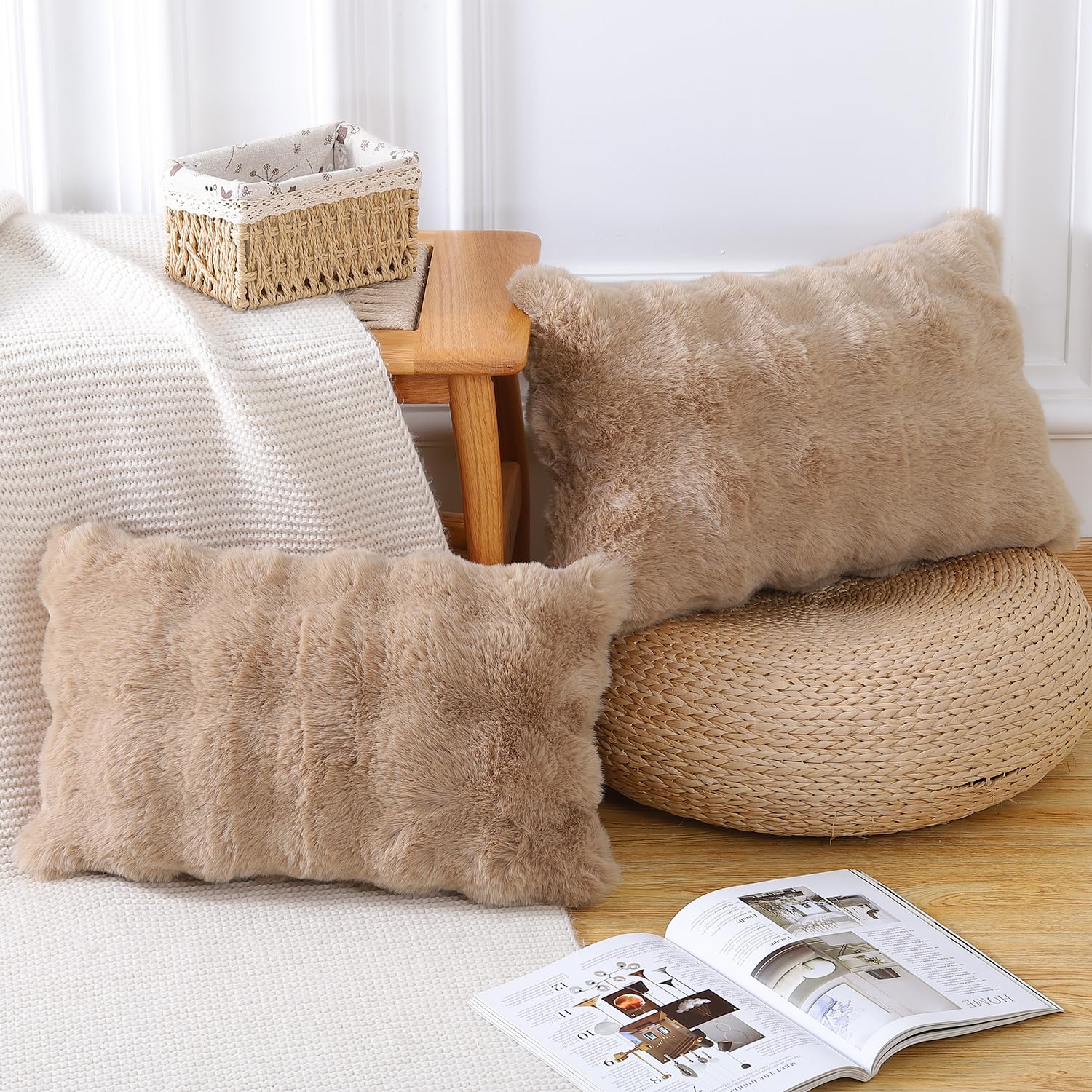 MADIZZ 2er set Sanft Plüsch Kurze Wolle Samt Dekorativ Zierkissenbezüge Luxus Stil Kissenbezug für Sofa für Schlafzimmer Kamel 30x50 cm