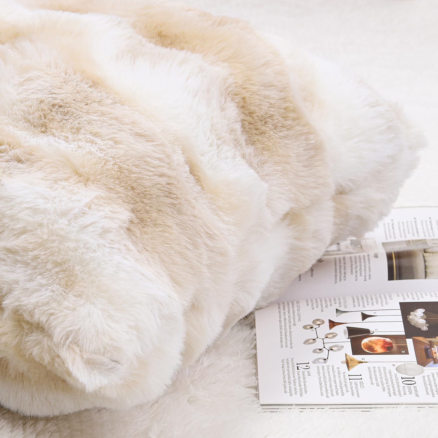 MADIZZ 2er set Sanft Plüsch Kurze Wolle Samt Dekorativ Zierkissenbezüge Luxus Stil Kissenbezug für Sofa für Schlafzimmer Weiss Beige 55x55 cm