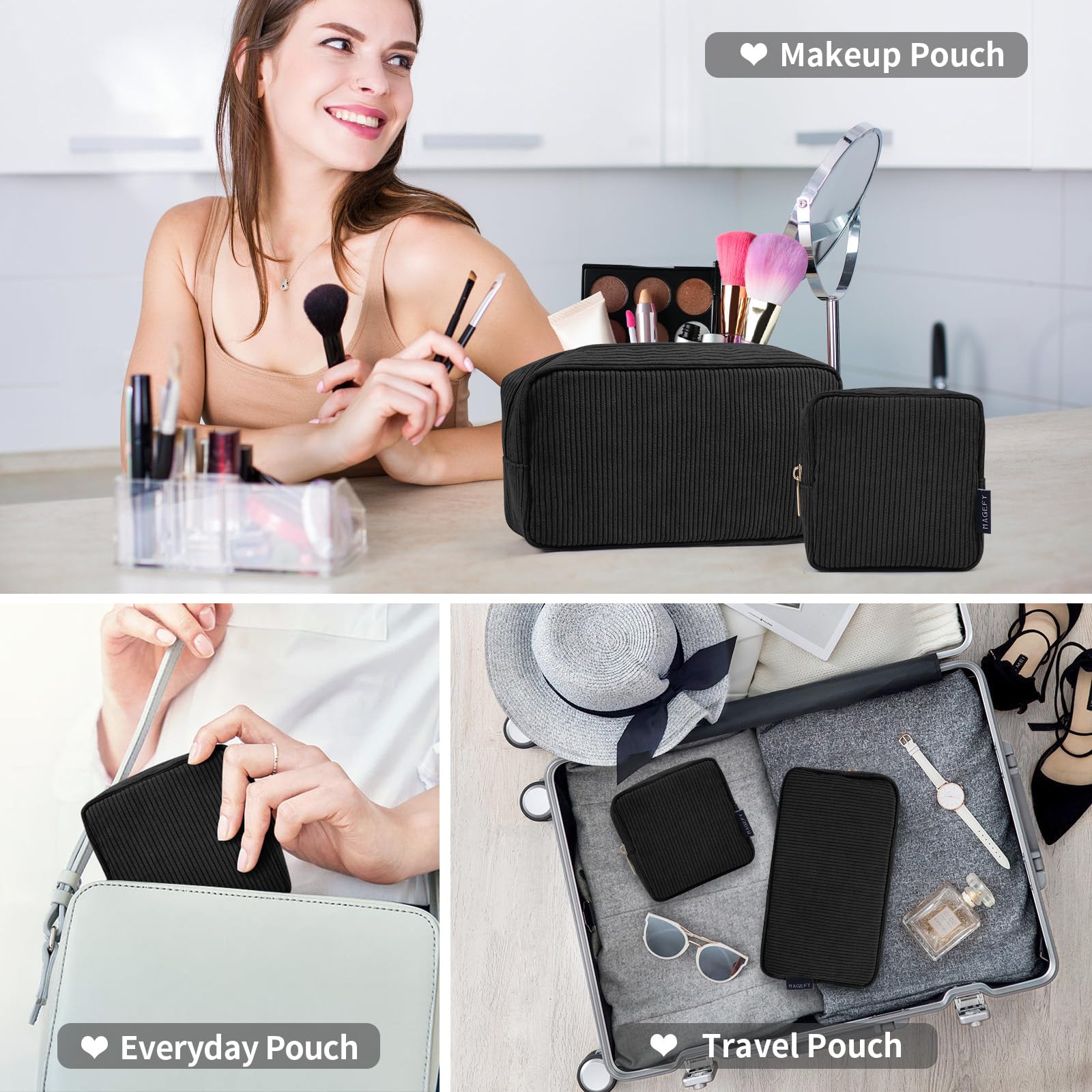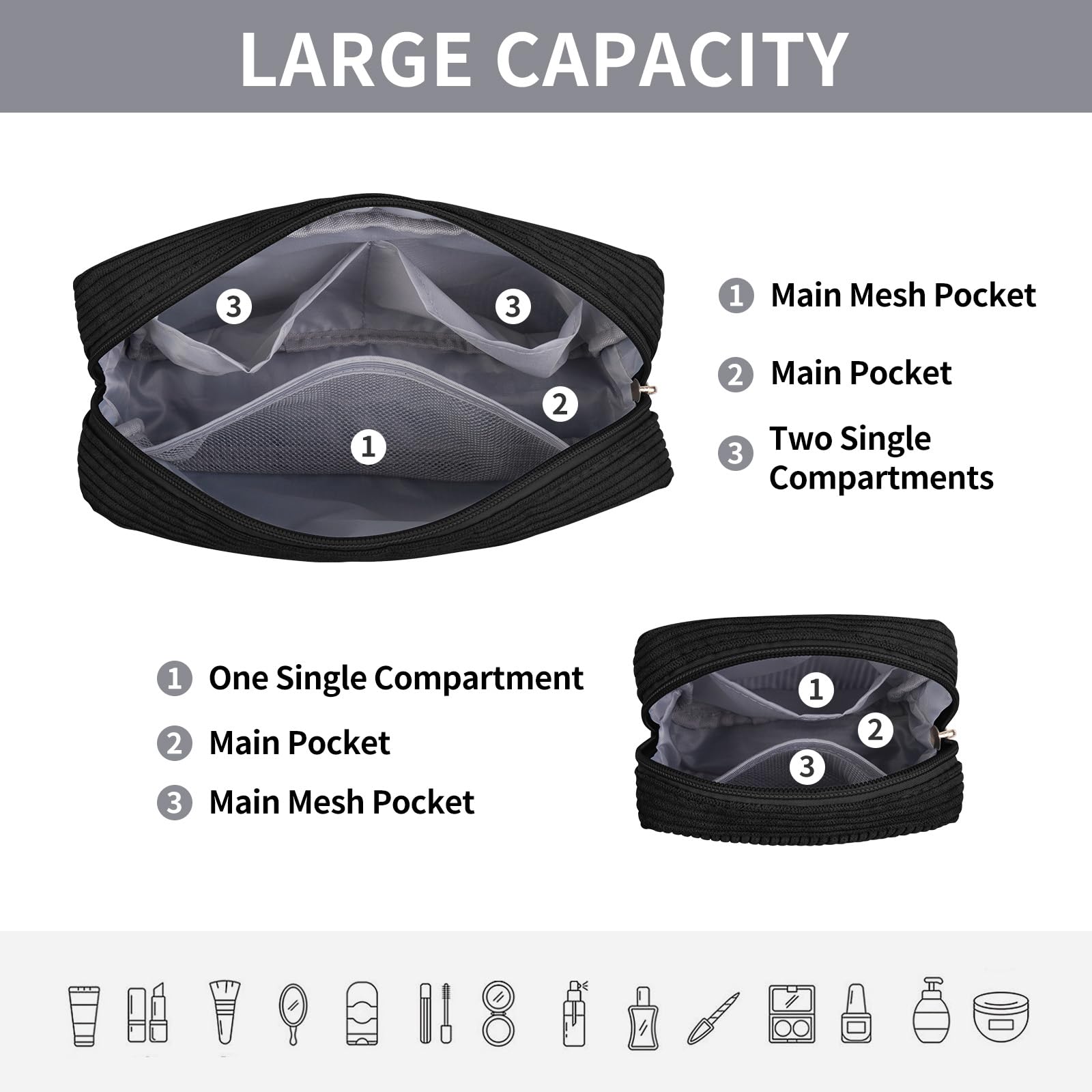 MAGEFY Kosmetiktasche Kleine Make up Tasche für Handtasche, Cord Schminktasche Damen mit Fächern Reise Makeup Tasche für Frauen