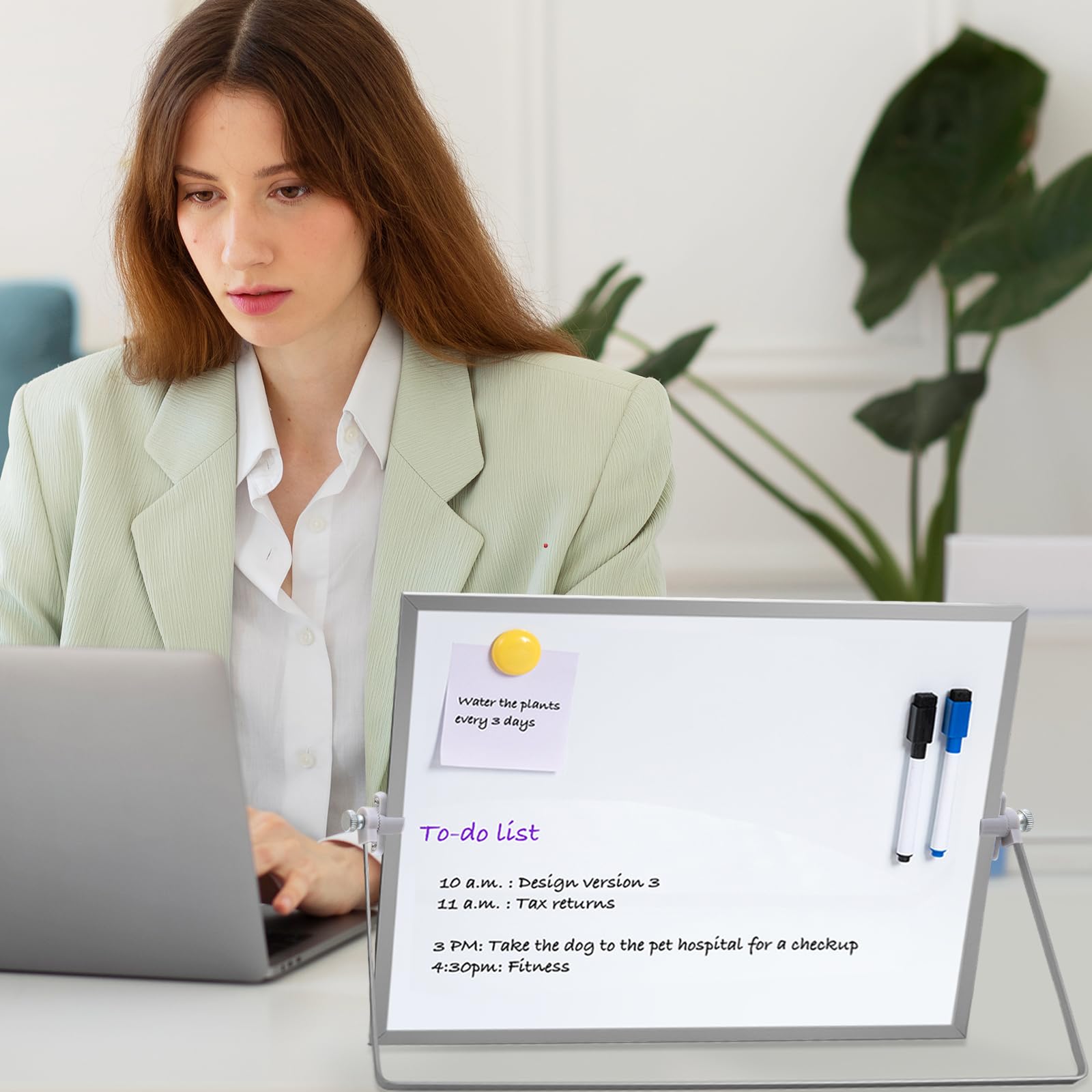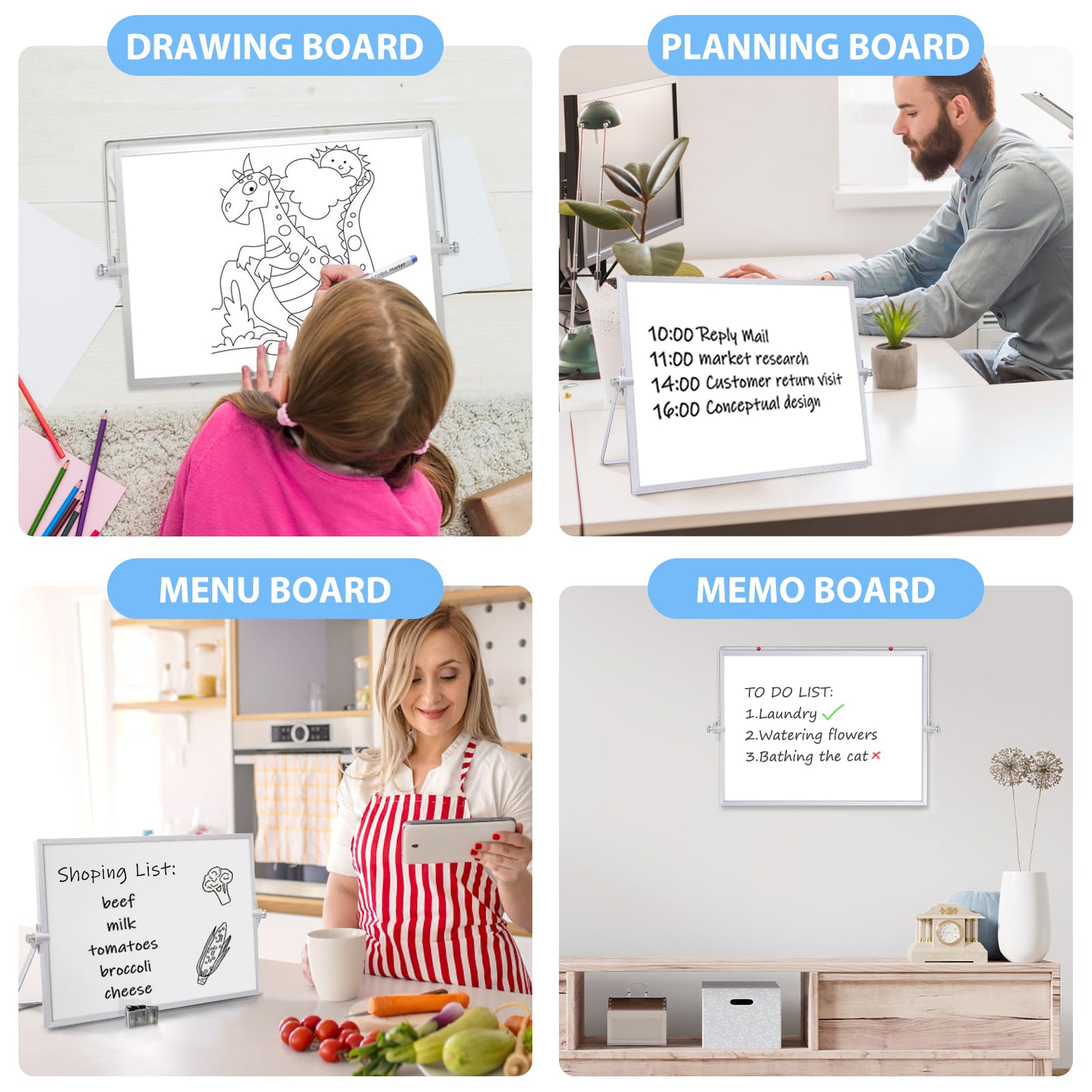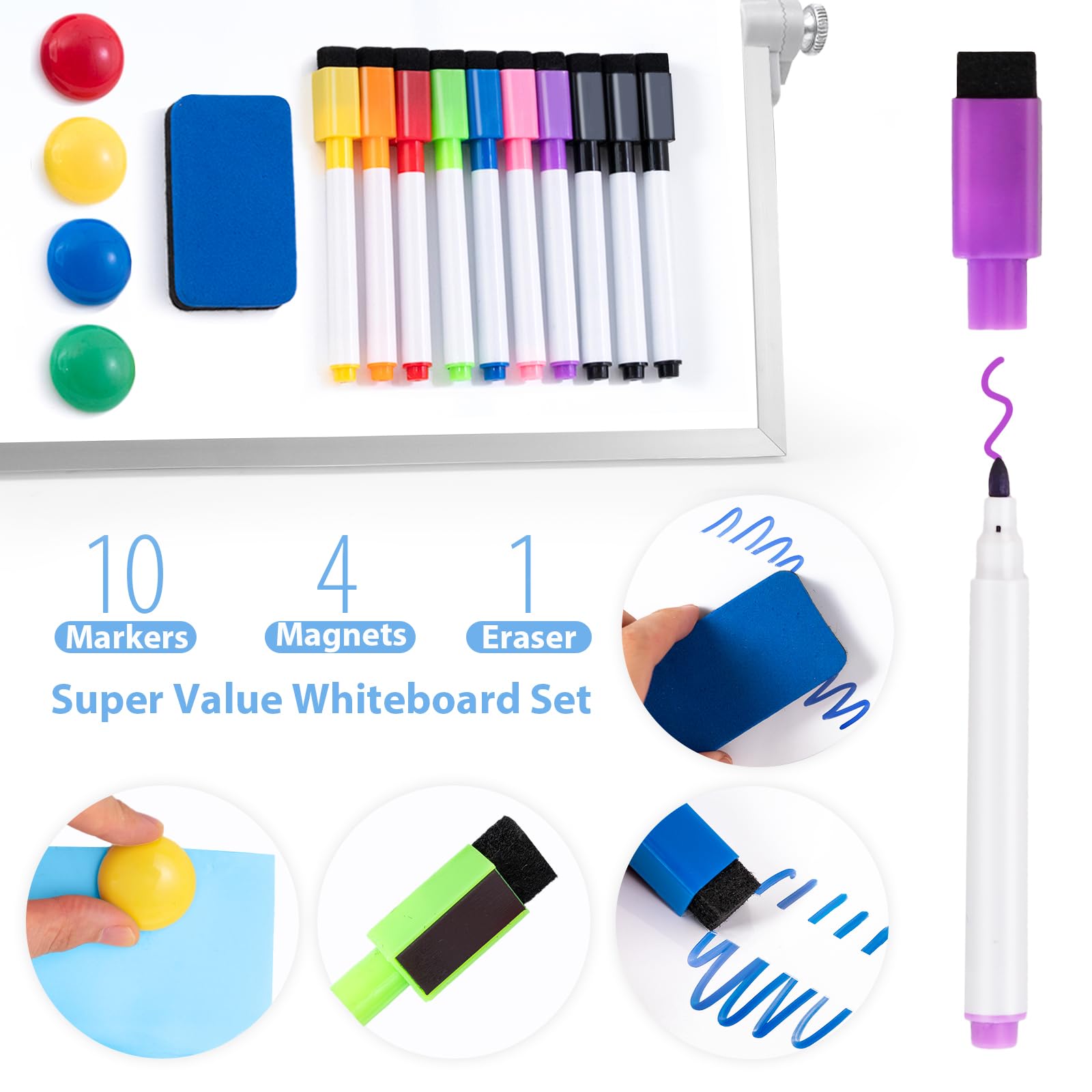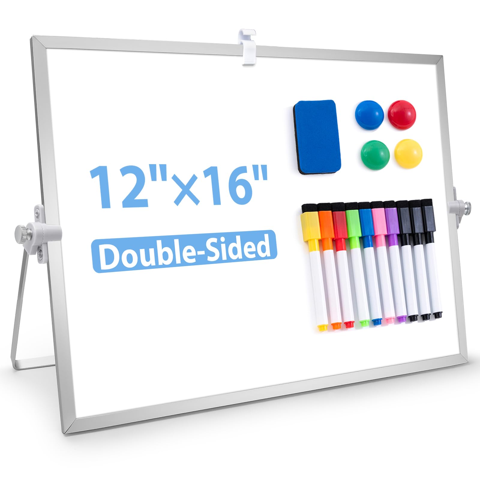 Magnetic Whiteboard Abwischbar für Schreibtisch,Magnetische tragbare doppelseitig beschreibbar Staffelei Whiteboard (30 x 40cm-Silber)