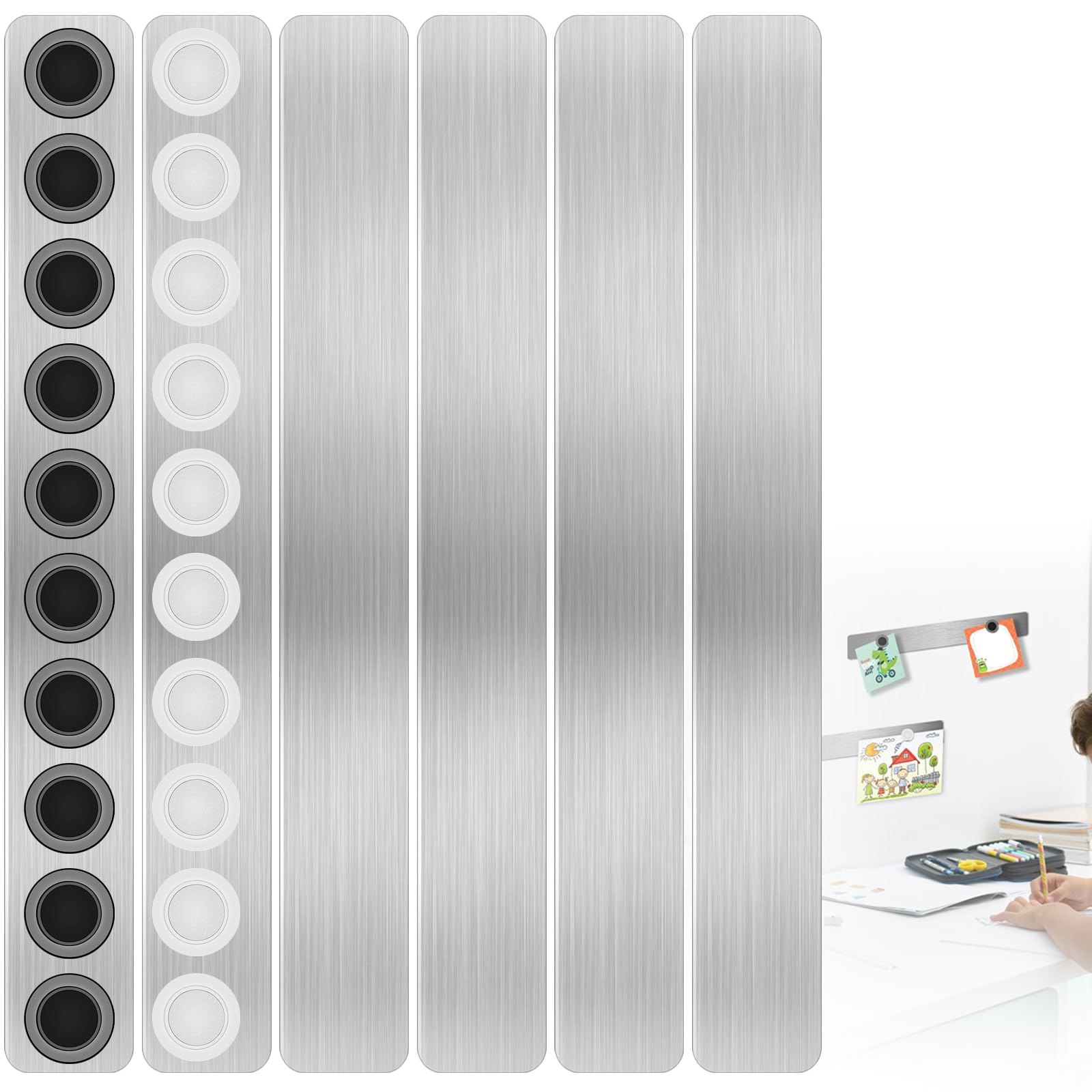 Magnettafel 6 Stück Magnettafeln Memotafel Selbstklebend Magnetleiste mit 20 Stück Starke Magnetstifte Pinnwand Board Memo Board für Büro Fotos Namensschilder Papiere