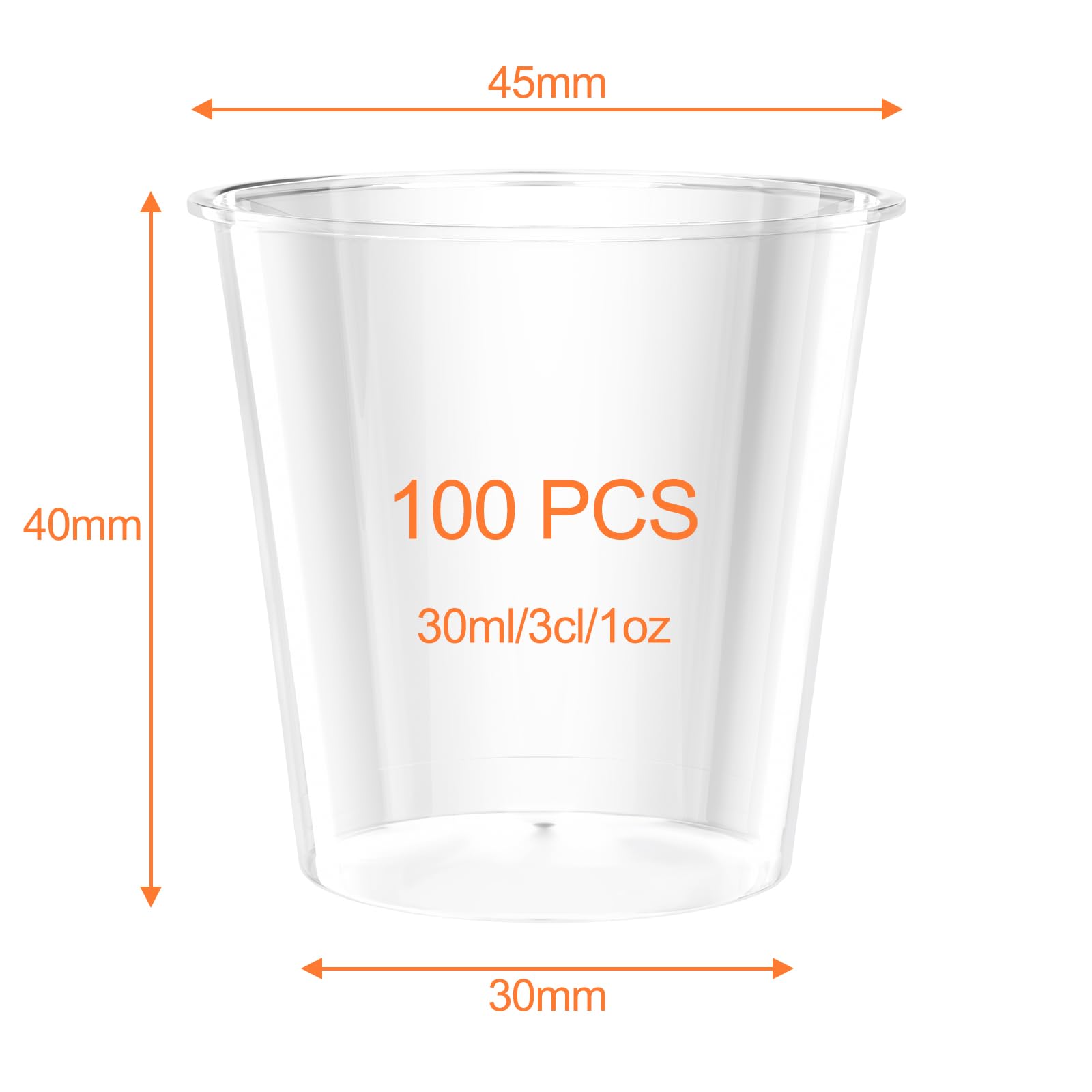 Magrimaxio 100 Stück schnapsgläser plastik, 3cl/30ml shotgläser, Shot Becher aus PS Material, schnapsbecher, pinnchen Gläser, wiederverwendbar plastikbecher, shotbecher, für Verkostung, Partys Hochwertig Diese schnapsgläser plastik bestehen aus hochwertigem PS-Material. Ungiftig und geruchlos, langlebig und bricht nicht. Mit dem Design mit gerollten Kanten ist es gut verarbeitet und hat keine Grate, die den Mund nicht verletzen. Eine sicherere Wahl für jeden Anlass Produktspezifikationen Enthält 100 shotgläser plastik mit den Massen (40 x 45 x 30 mm) (Höhe x Durchmesser oben x Durchmesser unten). Das Fassungsvermögen beträgt 30 ml. Ausreichende Menge kann Ihr tägliches Leben, Festivals und andere Bedürfnisse erfüllen. Einfach zu Verwenden Die plastik gläser sind leicht und stapelbar, was den Transport und die Lagerung besonders einfach macht. Geeignet für die Aufbewahrung aller Arten von Getränken. Nach Gebrauch kann der Becher direkt entsorgt oder bei Bedarf gewaschen und wiederverwendet werden. Klar und TransparentDie shot becher sind transparent, wodurch verschiedene Arten von Getränken besser unterschieden werden können, was den optischen Reiz der Getränke erhöht und Ihre Party einzigartig und farbenfroh macht. Anwendungsbereich Diese pinnchen plastik sind vielseitig einsetzbar und perfekt für Grillabende, Partys, Hochzeiten, Geburtstage und verschiedene Veranstaltungen und Feiern. Es kann auch Verkostungen auf Ausstellungen oder in Einkaufszentren ermöglichen. Kann auch als Dessertbecher für kleine Leckereien wie Gelee verwendet werden, ideal für Caterer, Veranstaltungsplaner und