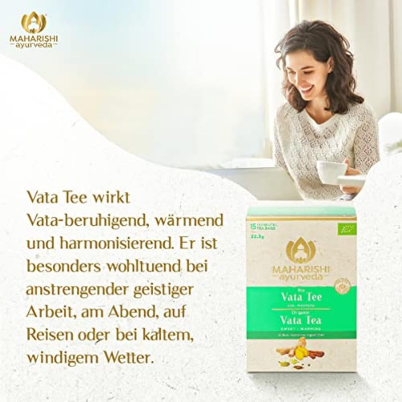 - Vata Tee ist besonders wohltuend bei anstrengender geistiger Arbeit, am Abend, auf Reisen oder bei kaltem, windigem Wetter.