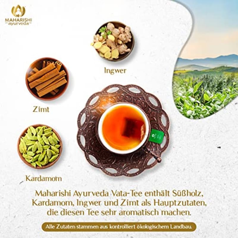 - Maharishi Ayurveda-Teemischungen tragen zu einem ganzheitlichen Gleichgewicht bei. Durch aromatische Zutaten wie Süssholz, Zimt, Kardamom und Ingwer hat dieser Tee ein volles und süsses Aroma, auch ohne Zuckerzusatz.