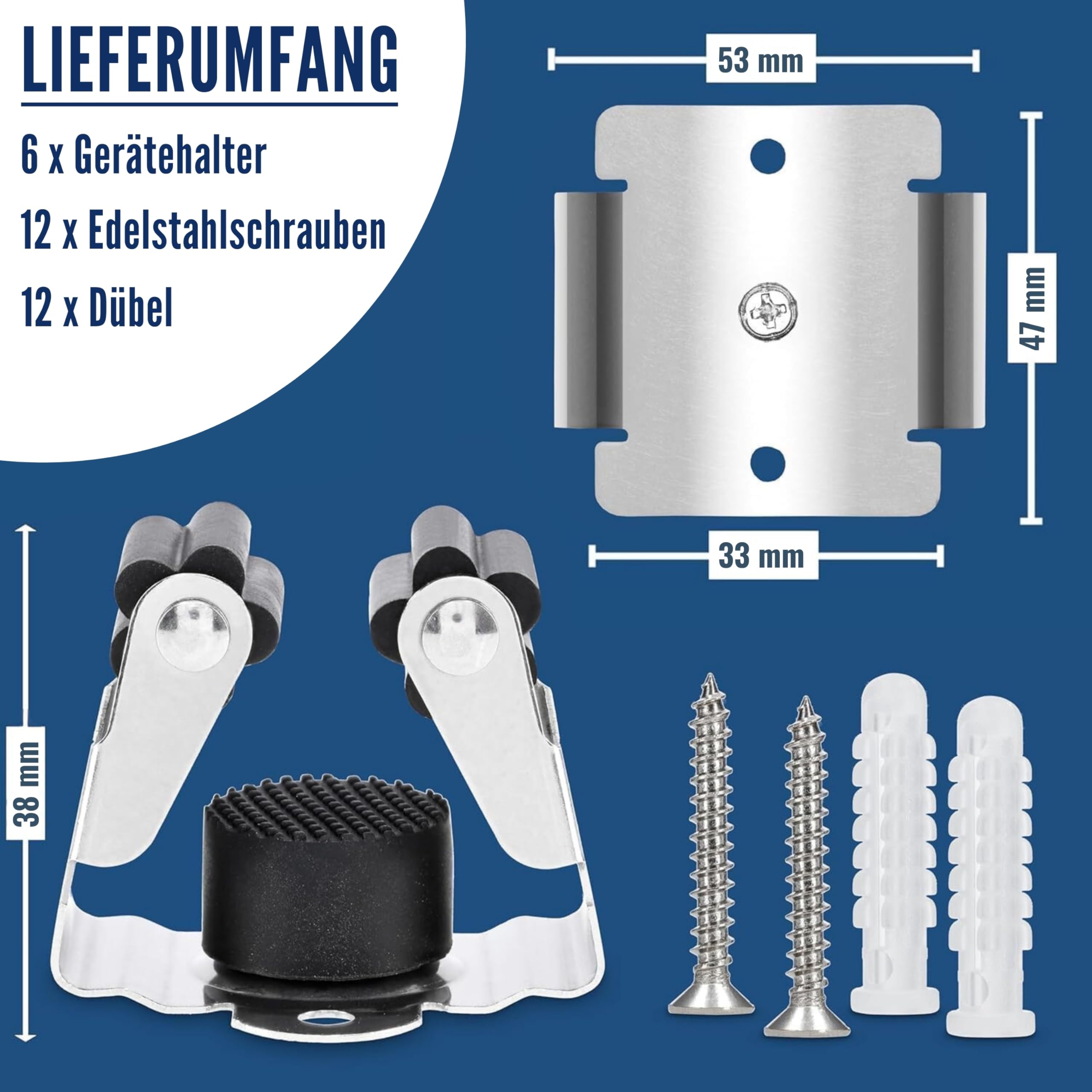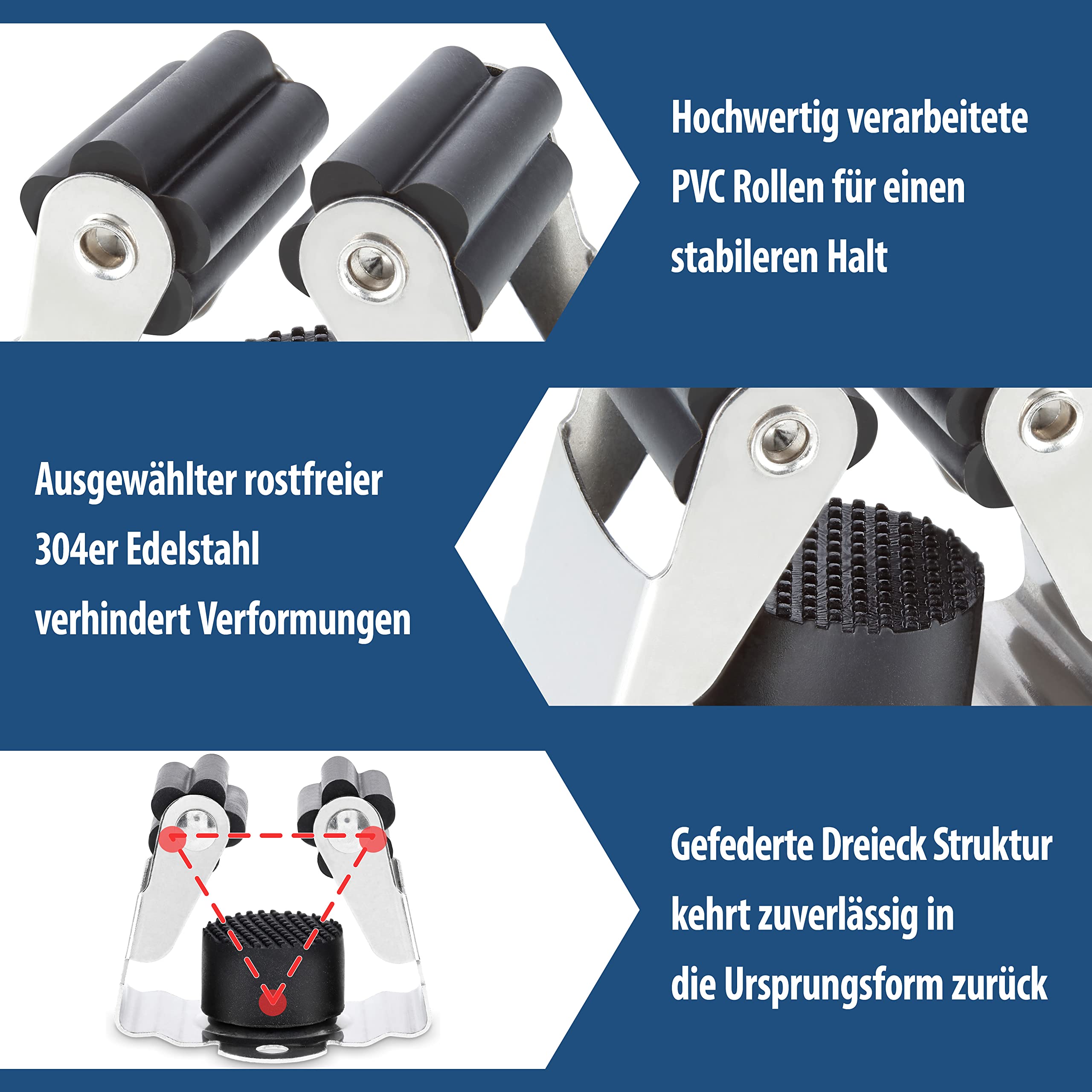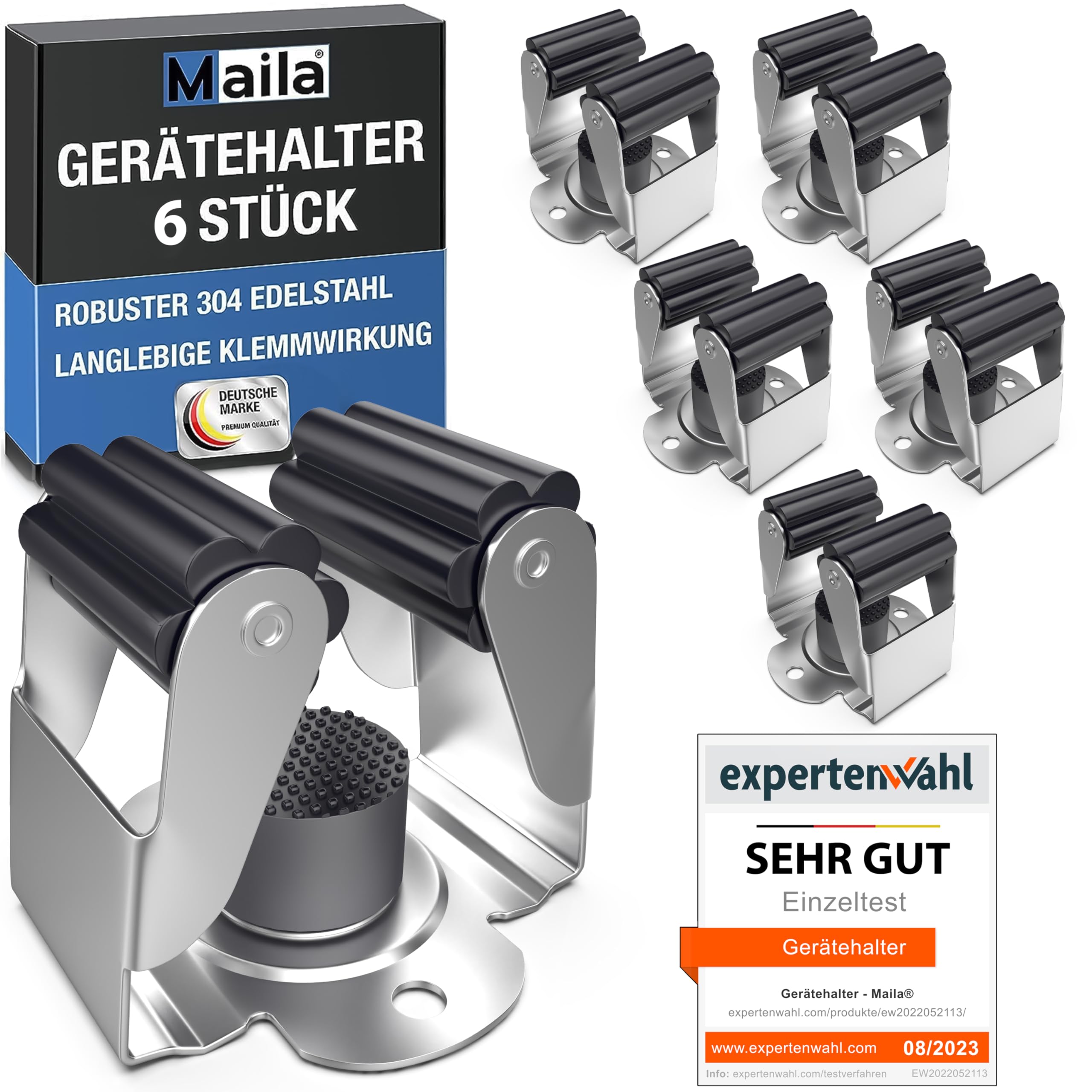 Maila® Gerätehalter (6er Set) - Robuster 304er Edelstahl rostfrei - Besenhalterung Wand mit starker Klemmwirkung, Wandhalterung für Besen, als Werkzeughalter