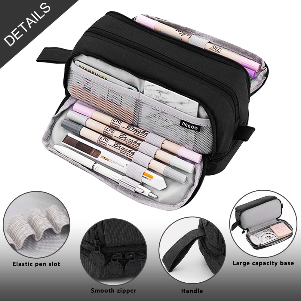 Mailain Federmäppchen Mäppchen für Jungen Mädchen Teenager, Gross Federtasche Federmappe Erwachsene Etui Schule 4 Fächer Pencil Cases (Schwarz)