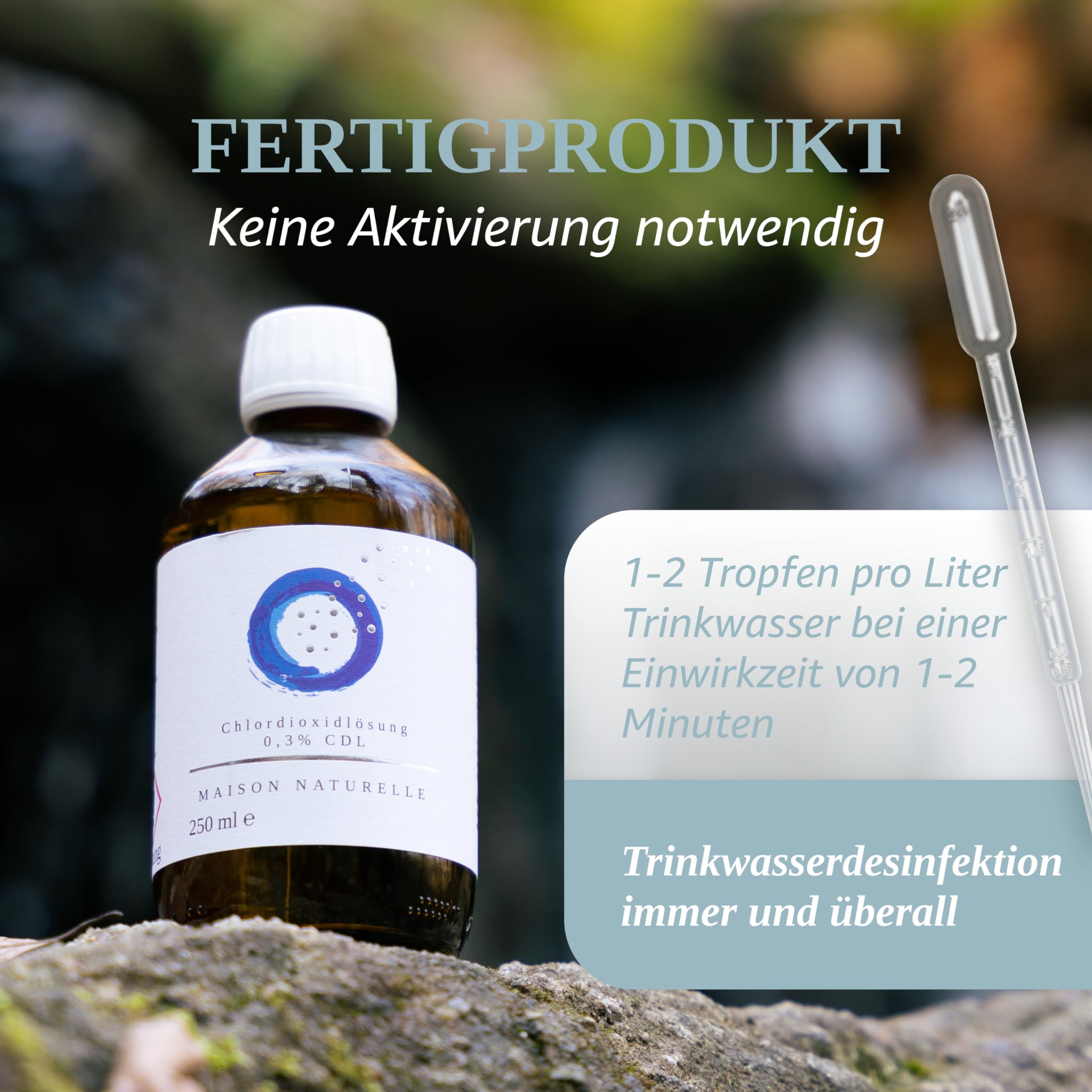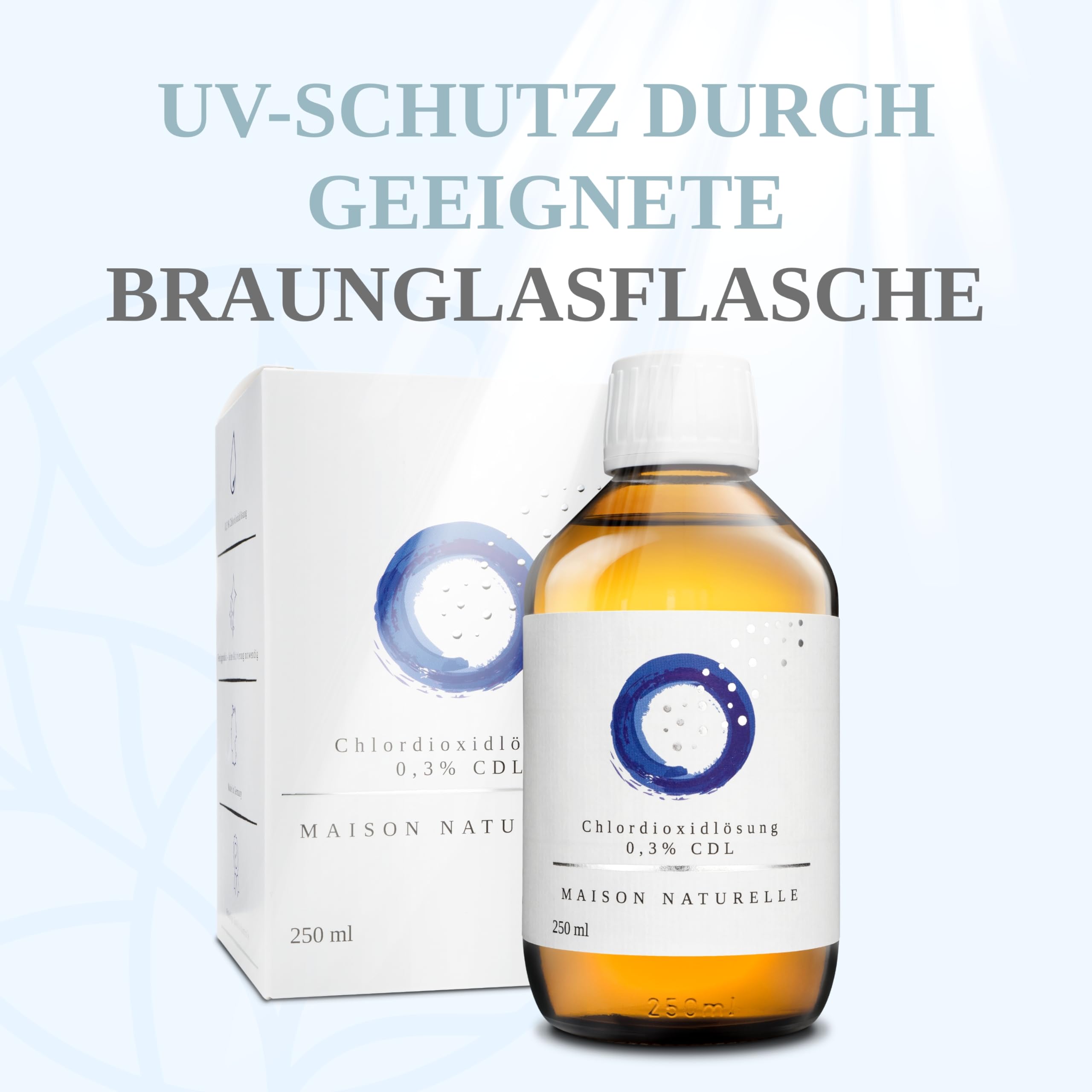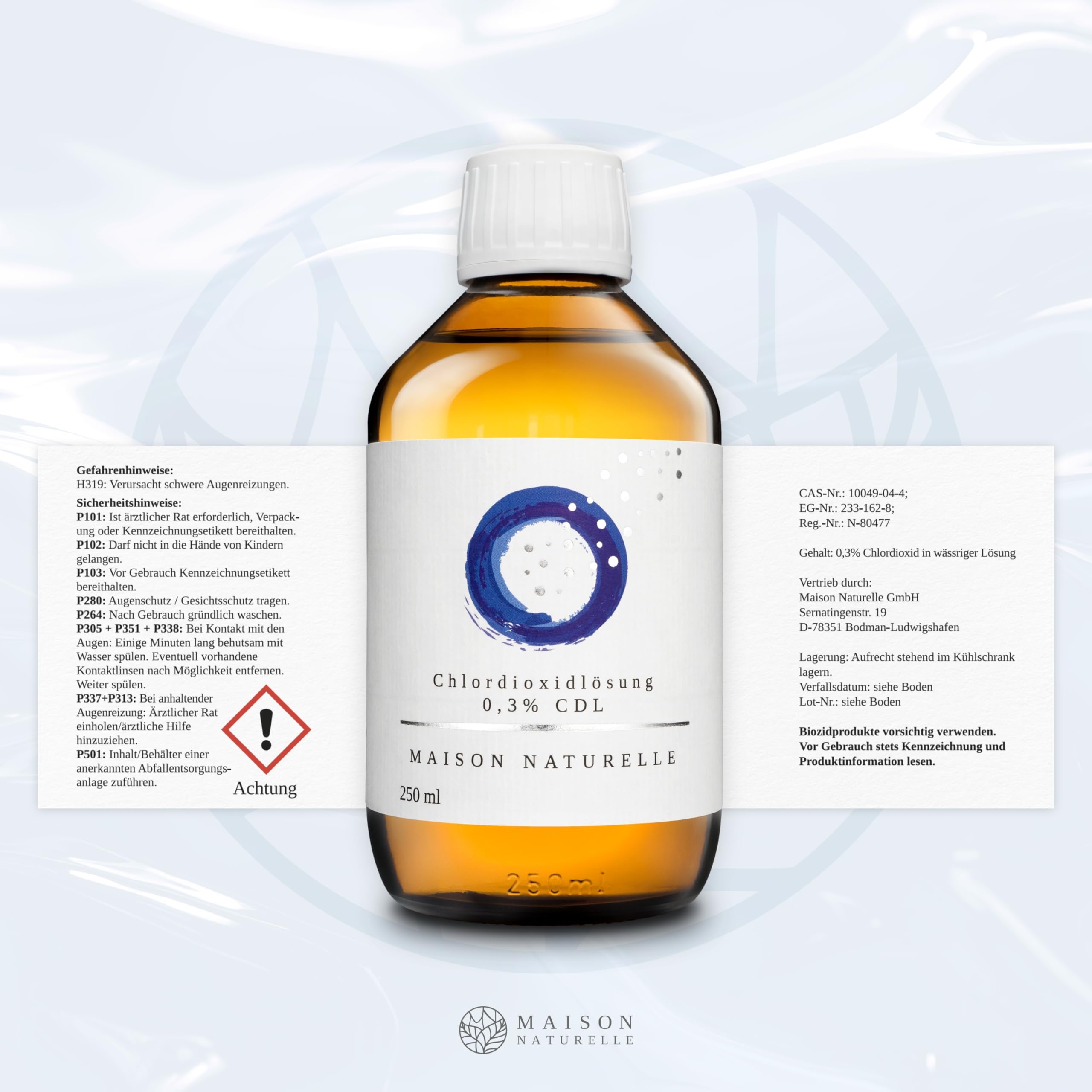 MAISON NATURELLE ® CDL 0,3% (250 ml) - Chlordioxidlösung 0,3 - Braunglasflasche + HDPE Pipette - Reg-Nr. N-116787 - Chlordioxid, CDs, Cdl Tropfen, CDs Lösung 0 3 MMS Tropfen